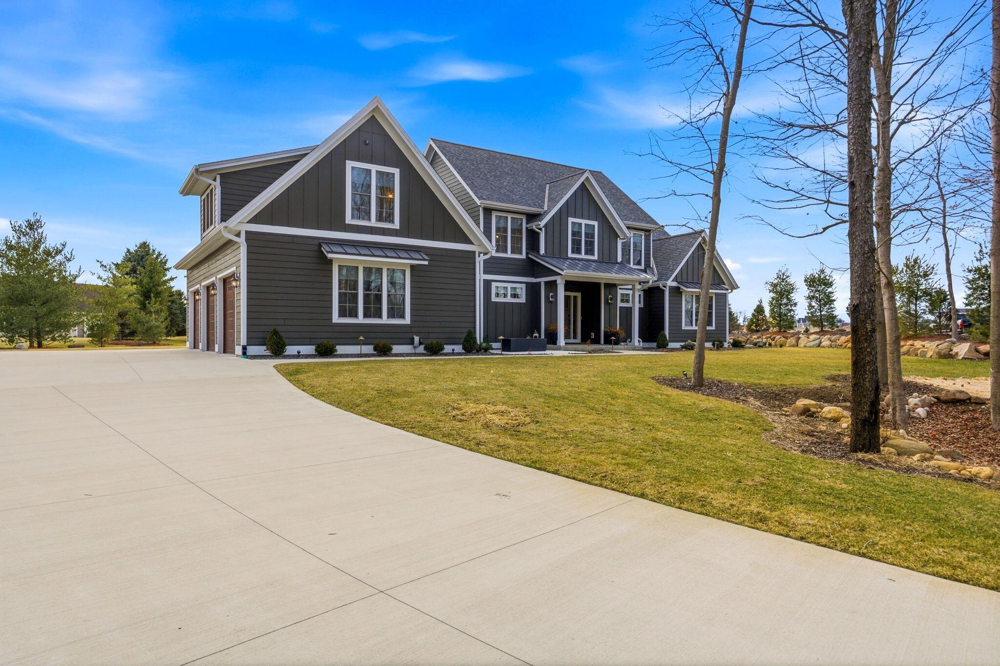 Rare opportunity in Cedar Creek Estates! This 2022 luxury home sits on nearly 2 acres of private, wooded bliss at the end of a quiet cul-de-sac. Boasting 5BR/4.5BA and 3,800 finished sq ft, this property shines with high-end finishes and an open-concept layout. Highlights: Heated 3.5-car garage with epoxy floors and custom storage. Stunning Great Room with 14' ceilings, massive stone fireplace, and panoramic views. Chef-caliber kitchen and main-floor primary suite for ultimate luxury. The expansive finished lower level adds incredible value with a large rec room and dedicated office or 5th BR. Enjoy the peace of nature with the benefit of Slinger Schools and low Town of Polk Taxes! (See docs for list of updates!)