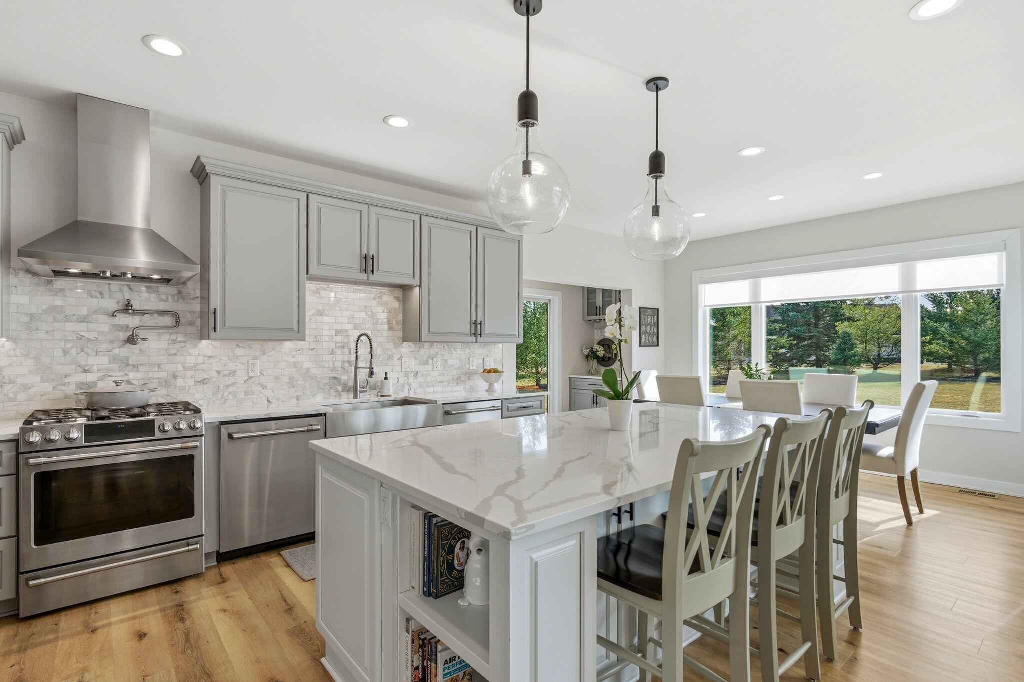 Welcome to this rare gem in the highly sought-after Wildebrook subdivision, offering an exceptional blend of modern upgrades, comfort, and scenic beauty. This spacious 3-bedroom, 3.5-bath ranch has been thoughtfully updated in 2025, making it truly move-in ready. Completely refreshed last year, the home showcases brand-new hardwood flooring throughout and a freshly repainted interior, creating a bright and inviting atmosphere. Vaulted ceilings and multiple skylights fill the home in natural light. At the heart of the home is a designer kitchen that is both stunning and highly functional-featuring custom cabinetry, new tilework, and premium GE Cafe appliances, including a dual-function oven. Thoughtful upgrades such as a new refrigerator, dishwasher, washer, and dryer. Every bathroom has been completely rebuilt with modern finishes, while the spa-inspired primary suite offers a luxurious retreat with custom tilework and a deep soaking tub, perfect for unwinding at the end of the day. Step outside to your private oasis-complete with an in-ground pool and breathtaking views of the Heritage Oak golf course. Whether hosting gatherings or enjoying quiet moments, this setting delivers a true resort-style experience. The fully finished basement offers endless possibilities-whether you envision a home theater, fitness area, or additional living space. Additional updates include a new Reliance hot water heater and abundant storage throughout. This is a rare opportunity to own a beautifully updated ranch with golf course views in one of Northbrooks most desirable communities.