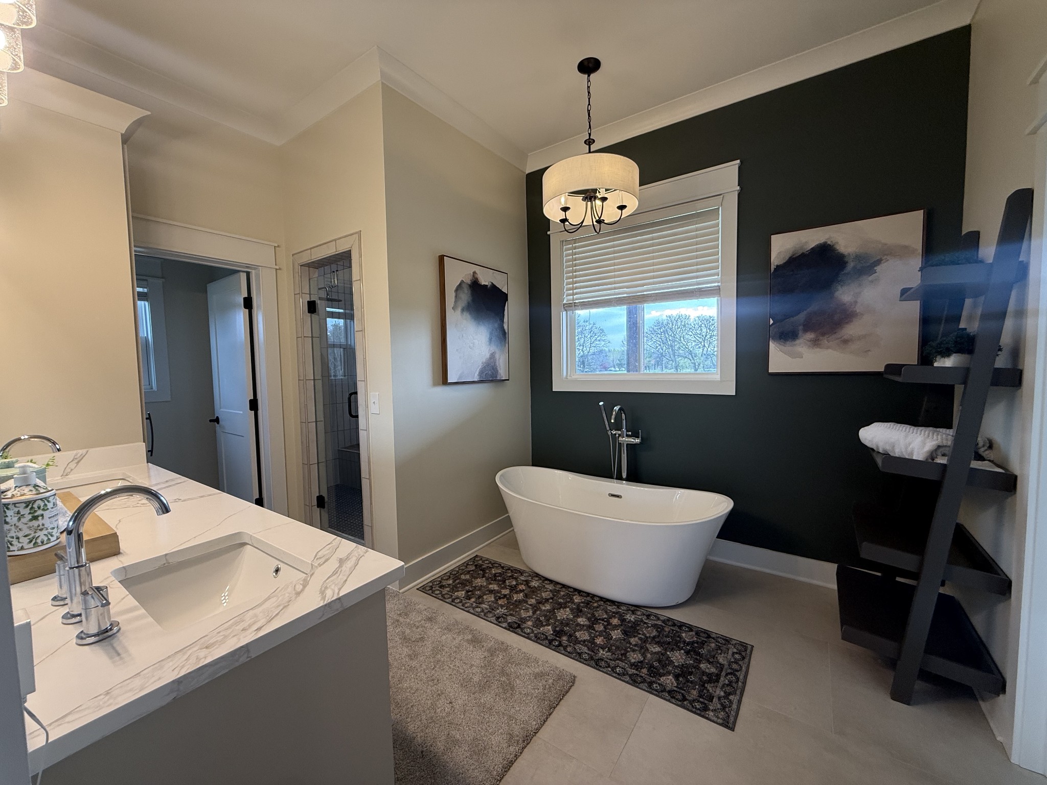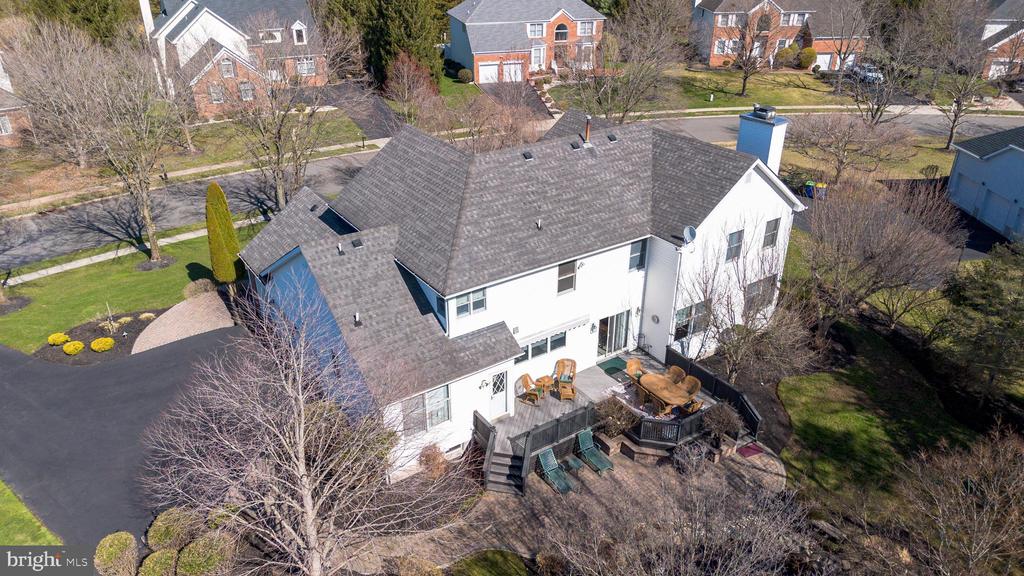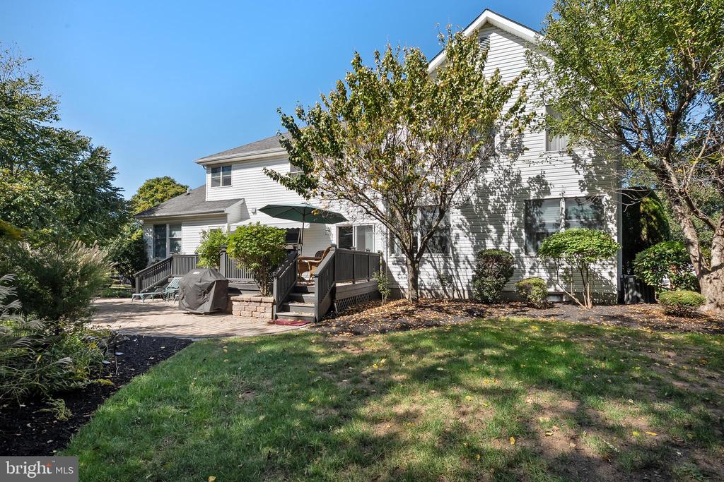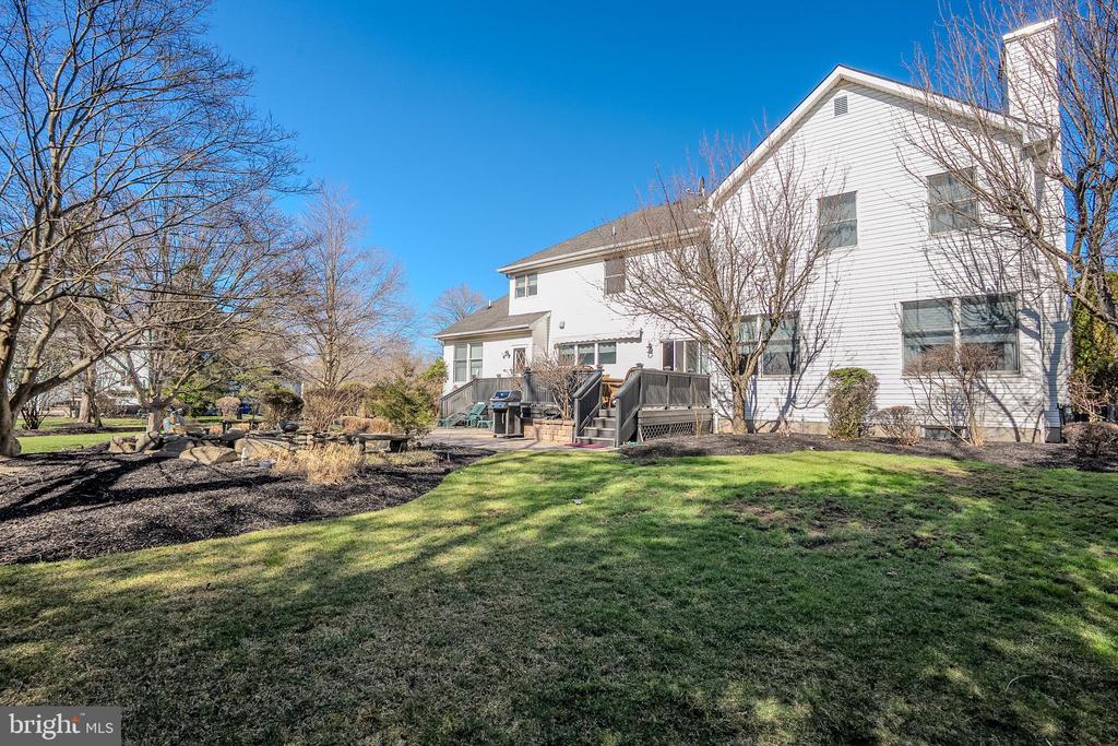 Welcome to 82 Millers Grove Road, a beautifully maintained and thoughtfully updated 5-bedroom, 3.5-bath home offering 3,477 sq. ft. of elegant living space in the desirable Belle Mead section of Montgomery Township. From the moment you step into the grand two-story foyer, you'll appreciate the hardwood floors, crown molding, and recessed lighting that flow seamlessly throughout the home, creating a warm and sophisticated ambiance. The gourmet eat-in kitchen has been tastefully redone and features granite countertops, a center island, custom backsplash, designer lighting, stainless steel appliances, and a convenient warming tray, along with a butler's pantry complete with a wet bar, perfect for entertaining. The inviting family room showcases a cozy wood-burning fireplace, while custom drapery and blinds add a refined touch throughout. A highly desirable first-floor bedroom and full bath provide the perfect in-law suite or guest accommodation, and the first-floor laundry room adds everyday convenience. Upstairs, the spacious primary suite offers a private sitting area and a beautifully updated en-suite bath with double sinks, vanity, and a luxurious soaking tub, while all bedrooms are equipped with ceiling fans for comfort. Additional highlights include updated bathrooms, a full unfinished basement offering endless possibilities for a gym, recreation space, or home theater, and a 3-car garage with refrigerator and shelving. Step outside to a charming front porch and a stunning backyard featuring a Trex deck, paver patio, serene pond, and lush professional landscaping, perfect for relaxing or entertaining. This exceptional home combines space, style, and functionality in a prime location, making it truly move-in ready.