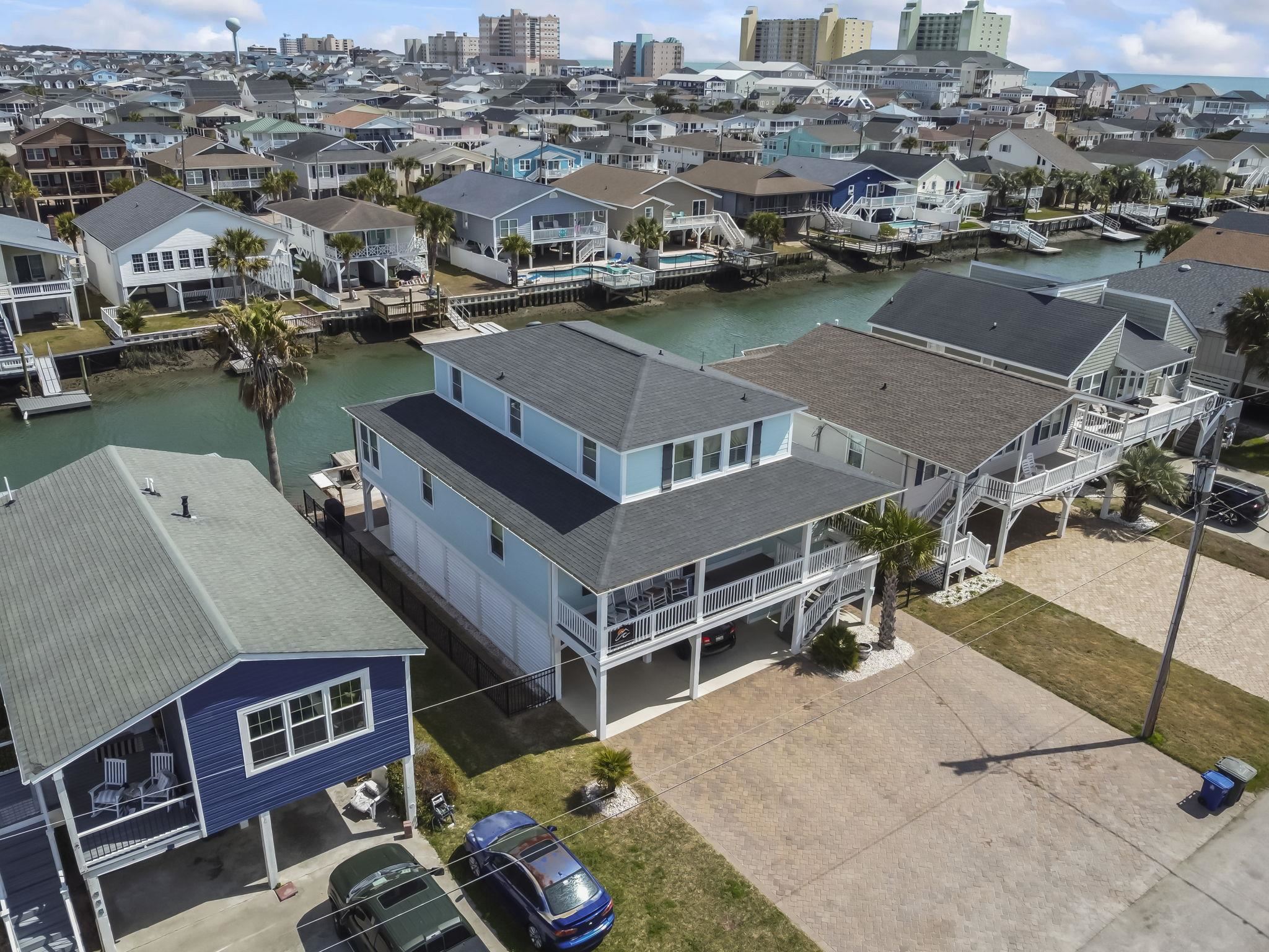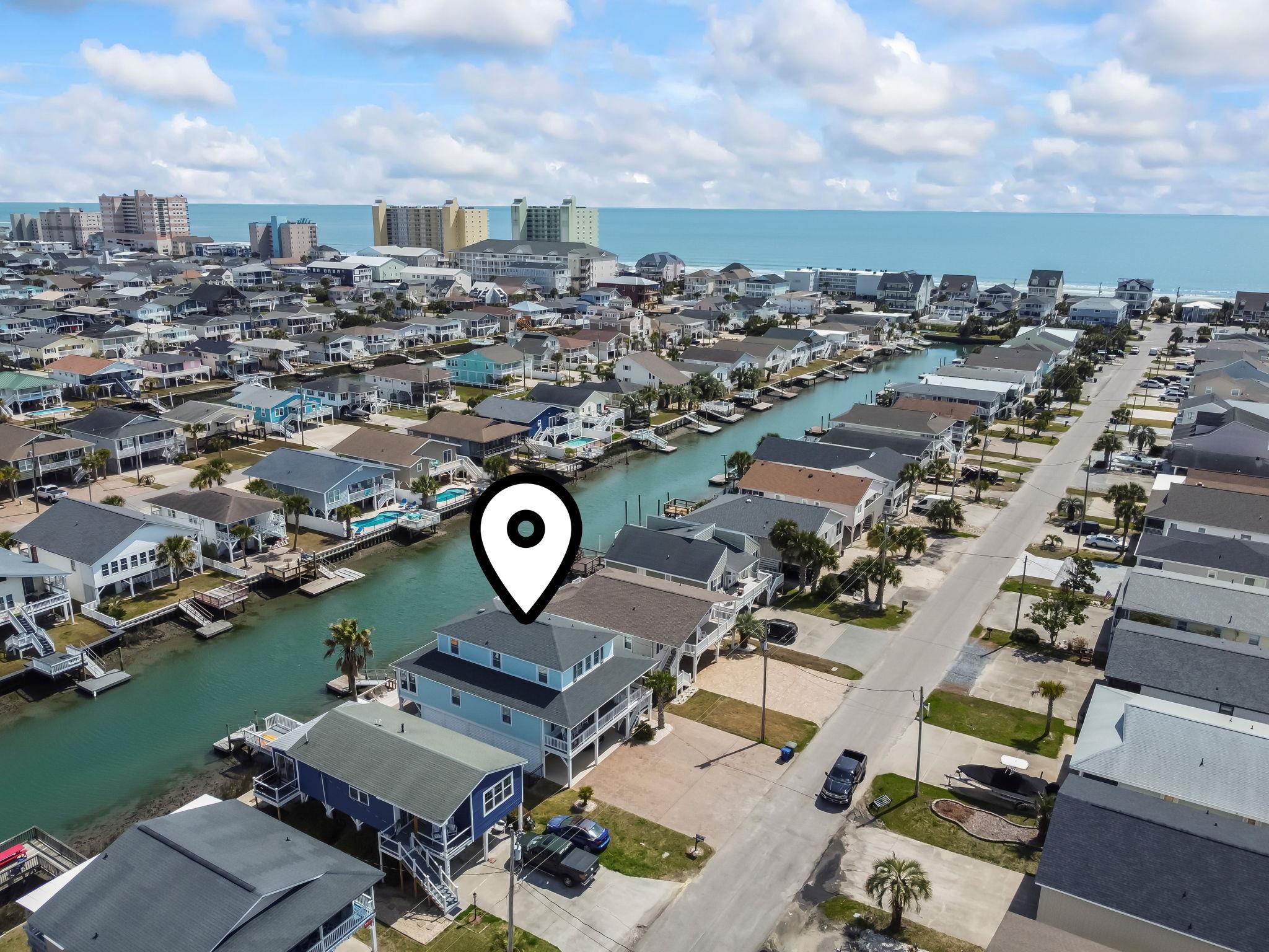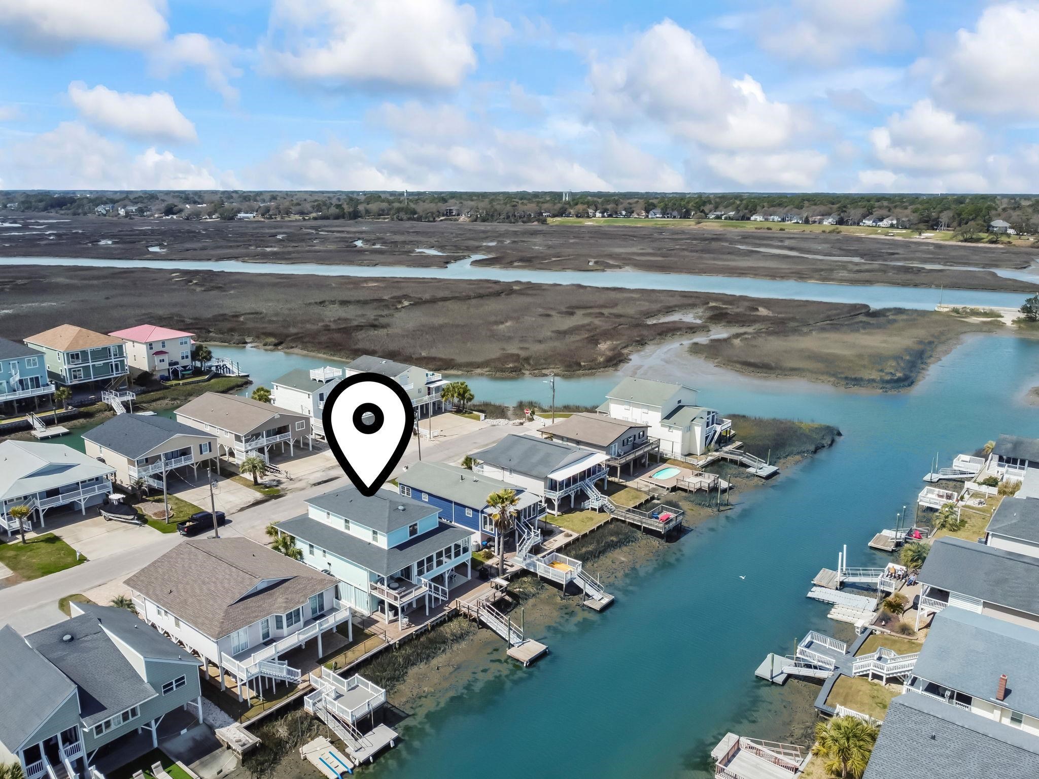 Experience the pinnacle of coastal living in this impeccably renovated 4-bedroom, 3.5-bath channel home in the heart of Cherry Grove. Reimagined from the studs up between late 2018 and 2019, this residence offers the rare peace of mind that comes with having all heated living space situated safely above the flood zone.