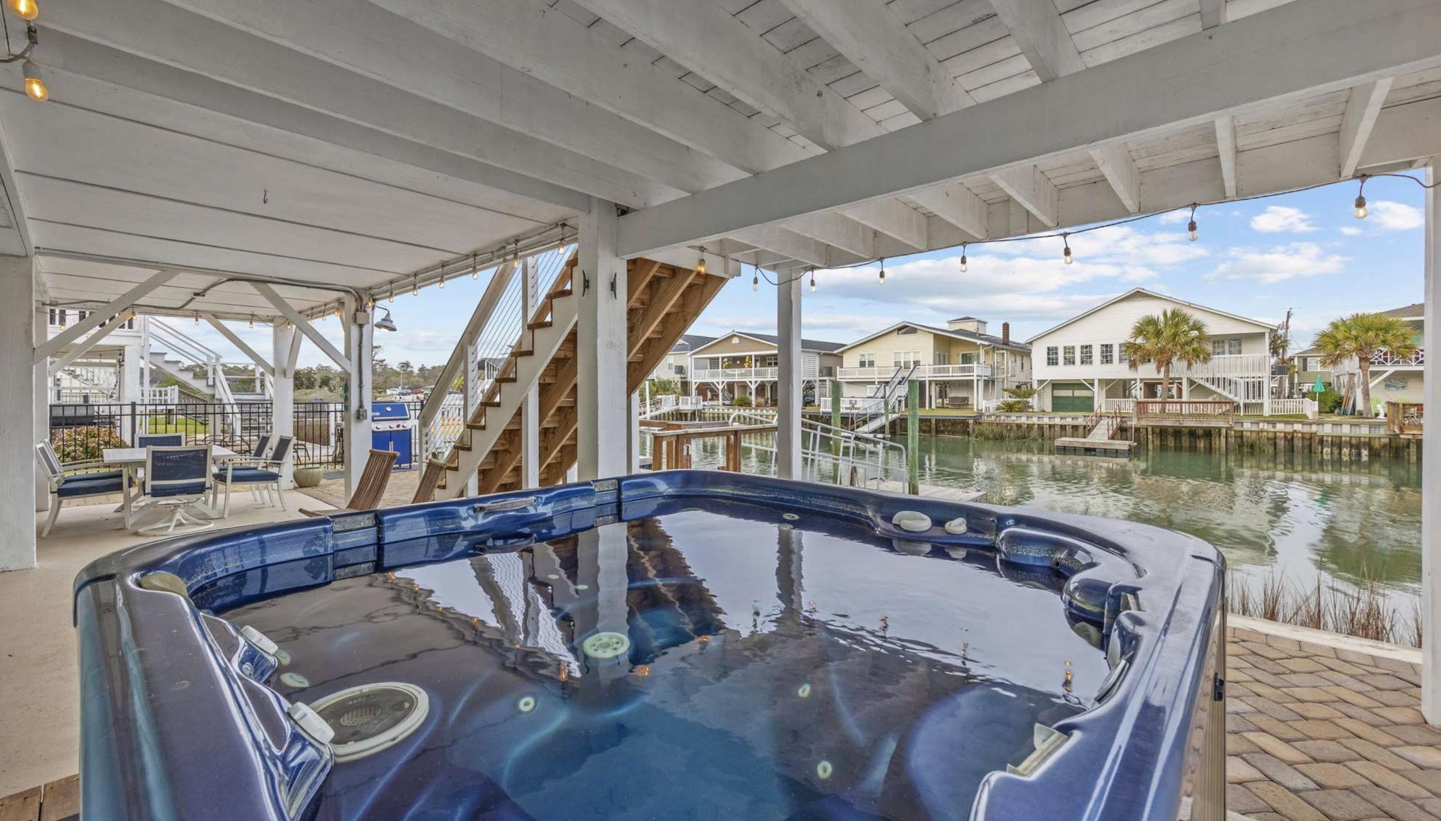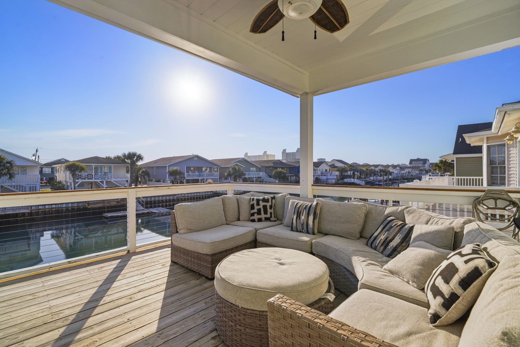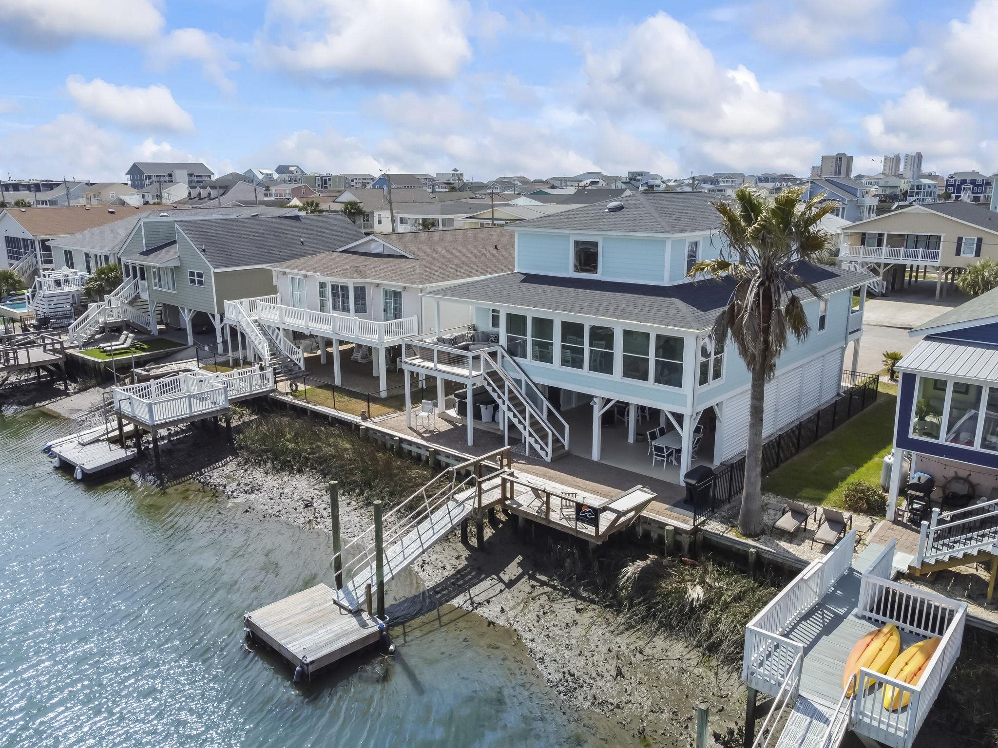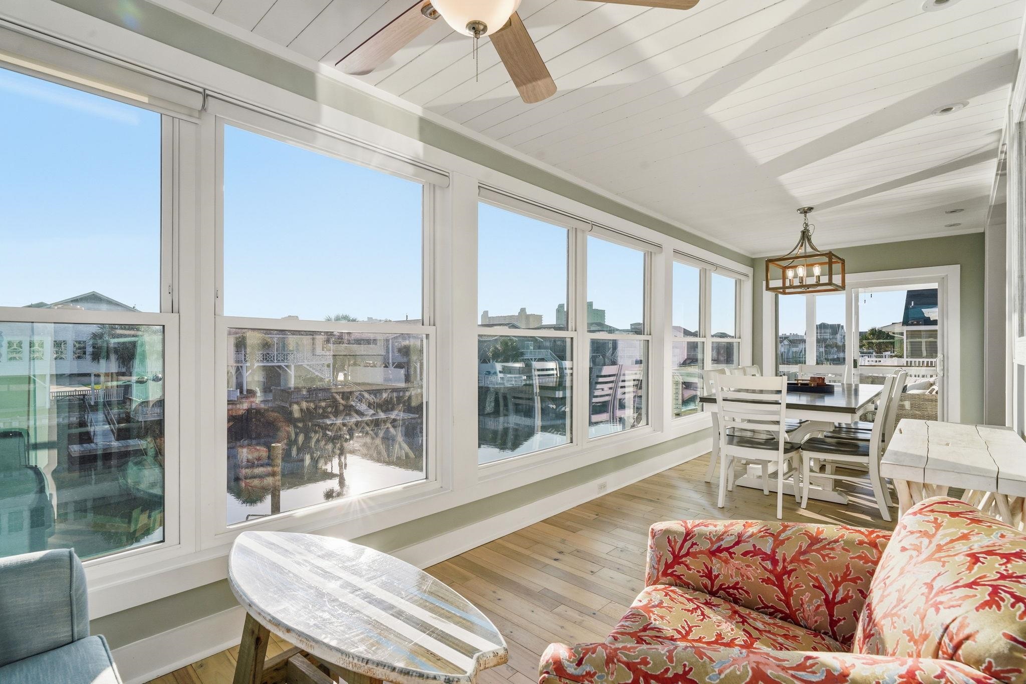 Experience the pinnacle of coastal living in this impeccably renovated 4-bedroom, 3.5-bath channel home in the heart of Cherry Grove. Reimagined from the studs up between late 2018 and 2019, this residence offers the rare peace of mind that comes with having all heated living space situated safely above the flood zone.