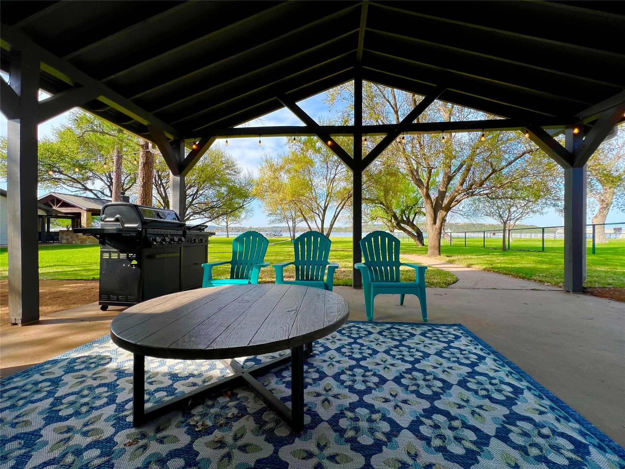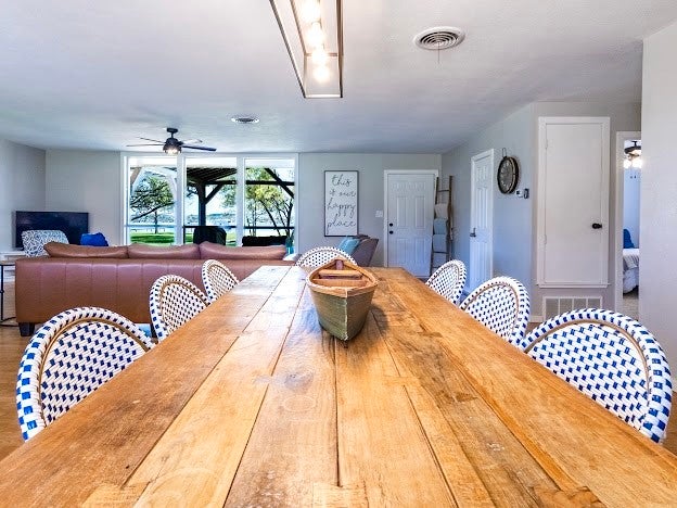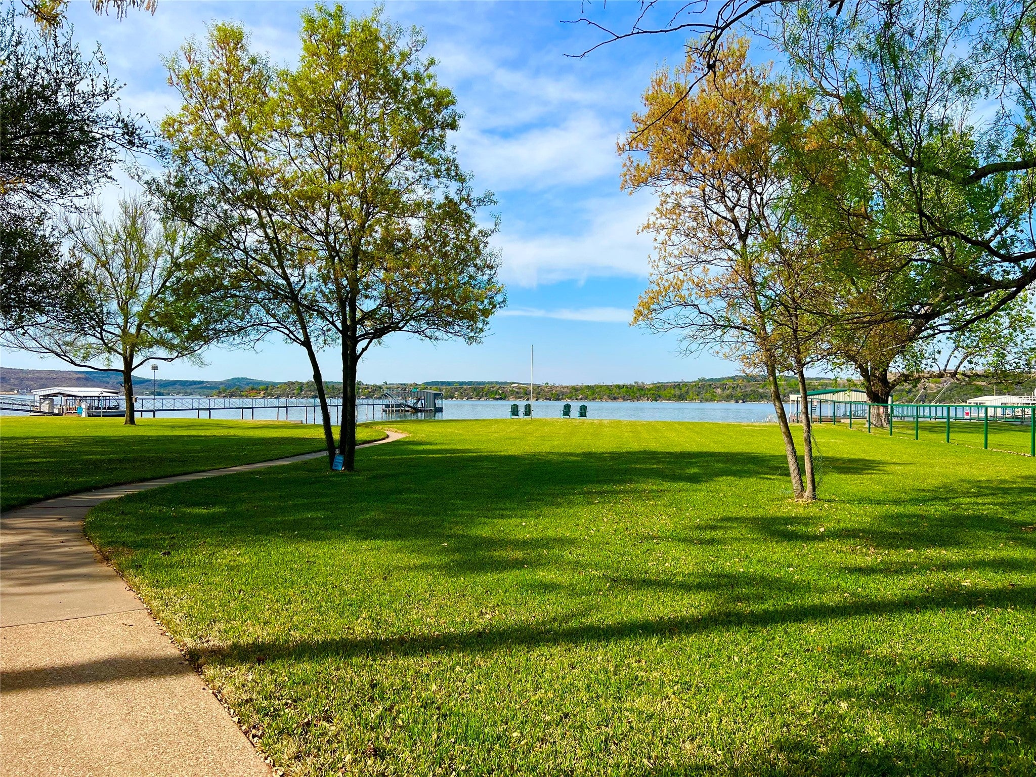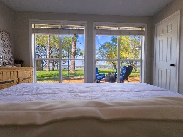 PRIME PK PENINSULA LOCATION, with a 4Bd, 2Ba BEAUTIFUL FURNISHED LAKE HOME on 1.18 WATERFRONT ACRES with PANORAMIC LAKE VIEWS, and Excellent OVERNIGHT RENTAL History. This Open Concept, Light and Bright Home Features Big Picture Windows to maximize the Lake and Park Like Views to the water, and the Spectacular PK Sunsets and Sunrises, and has a natural flow from the Living Room to the Covered Outdoor Patio for Relaxing, Grilling & Dining Out, Savoring the Serenity, Peace & Beauty of the Lake, and enjoying the Fire Pit for smores, under the Starry Tx Skies. Plus there are Lots of Mature Trees, Cottonwood, Pine, Pecan, Willow and Live Oak for Shade, and a Large, Level, Lush St Augustine Grassy Yard Lakeside for Yard games and room to Entertain all your Family & Friends, with Easy Access to the Lake & Sandy Beach. This area is known for its friendly Deer, and its Crystal Clear Blue Water with Fantastic Fishing, Swimming & Lake Fun. The Lot is allowed to either have a Swim or Boat Dock, up to 2000 sqft, and you can find great deals on used Docks in the area or order the Dock of your Dreams from many local Dock Builders. Also there is a 40x30 RV Carport with Electric Hookup for extra guests and family, and an attached garage for extra Storage and Water Toys. This Wonderful Lake House is also Centrally Located minutes away from the Best Amenities, Shopping and Dining at PK, and also to the Hiking & Biking Trails throughout the Peninsula with Stunning Lake Views. Overnight Rental History available upon request. Dont miss seeing this Perfect Piece of PK Paradise.