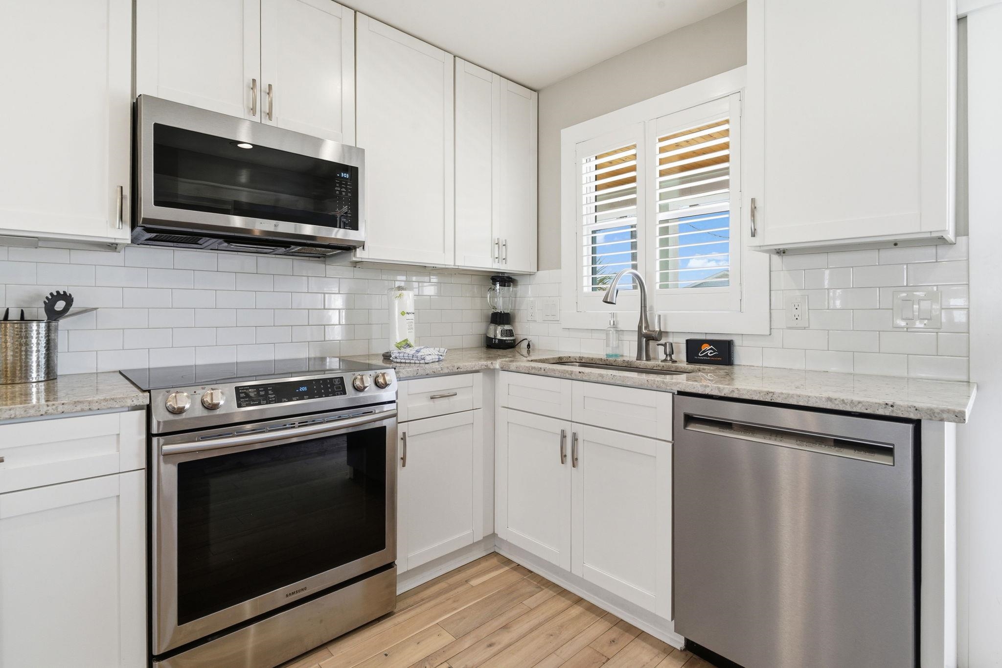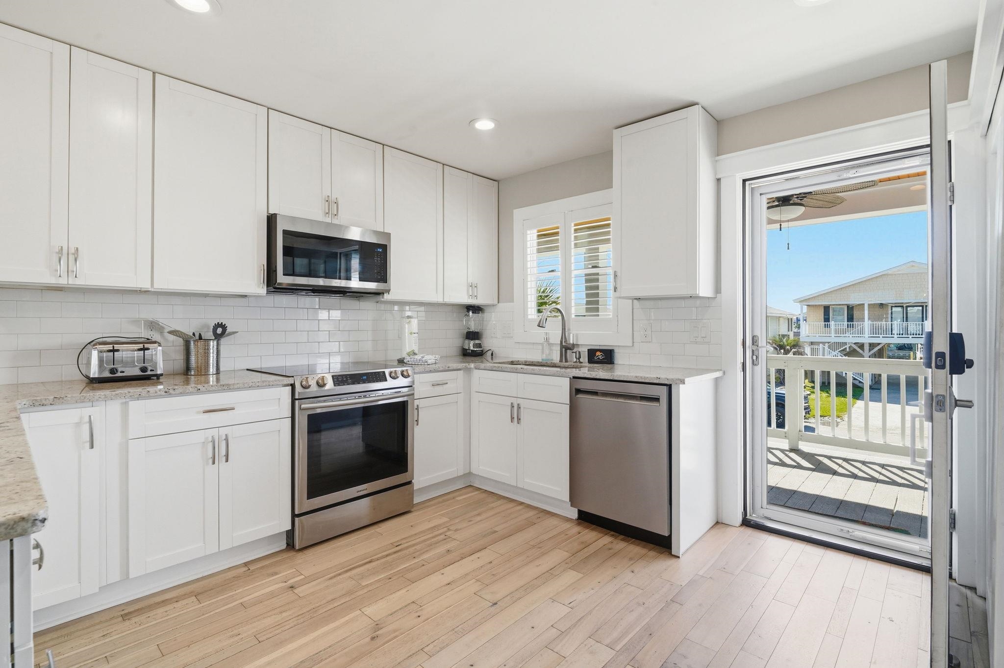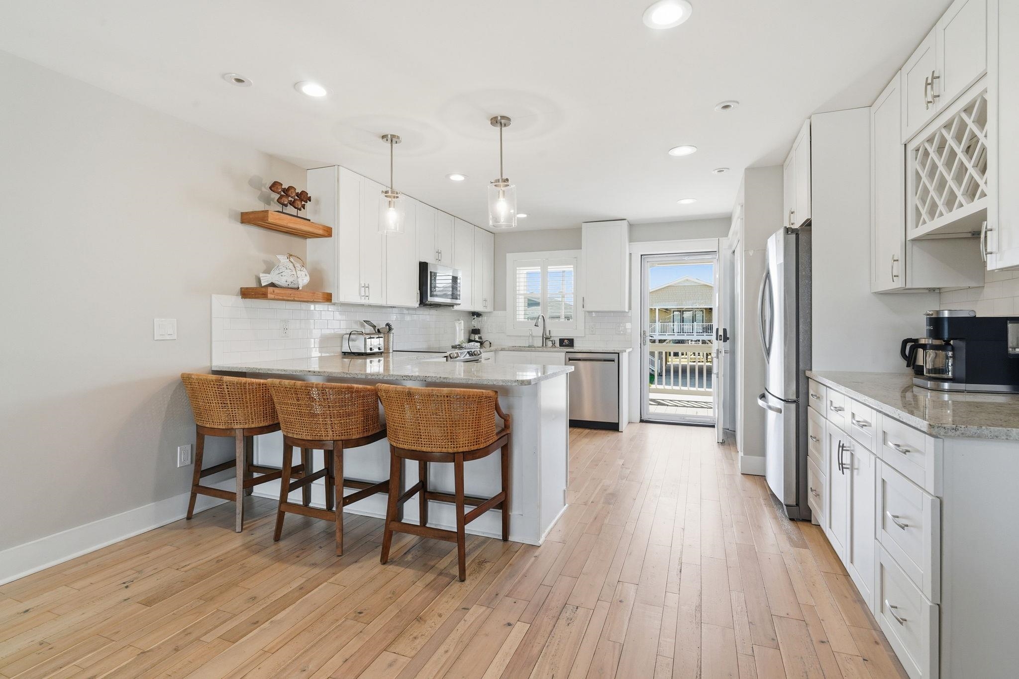Experience the pinnacle of coastal living in this impeccably renovated 4-bedroom, 3.5-bath channel home in the heart of Cherry Grove. Reimagined from the studs up between late 2018 and 2019, this residence offers the rare peace of mind that comes with having all heated living space situated safely above the flood zone. Inside you'll find authentic hardwood floors, tongue-and-groove ceilings, and a modern aesthetic defined by contemporary cable railings and designer lighting. The chef's kitchen is a focal point of the main level, featuring granite countertops, a classic subway tile backsplash, and custom cabinetry. Three of the four spacious bedrooms boast walk-in closets, while the bathrooms offer fully tiled showers and updated plumbing fixtures throughout. The renovation included a new seawall and a large oversized paver patio which you don't see often in Cherry Grove. The exterior features a new fence installed in 2023, a custom outdoor shower with composite decking, and professional stone landscaping. For those who need extra utility, the ground level provides a massive two-section workshop with built-in shelving and an additional finished storage room equipped with quartz countertops, sink, and a refrigerator. The perfect property for a Primary Residence, Home at the Beach, or a high-income producing Rental property, it is truly a gem in Cherry Grove with nothing quite like it!