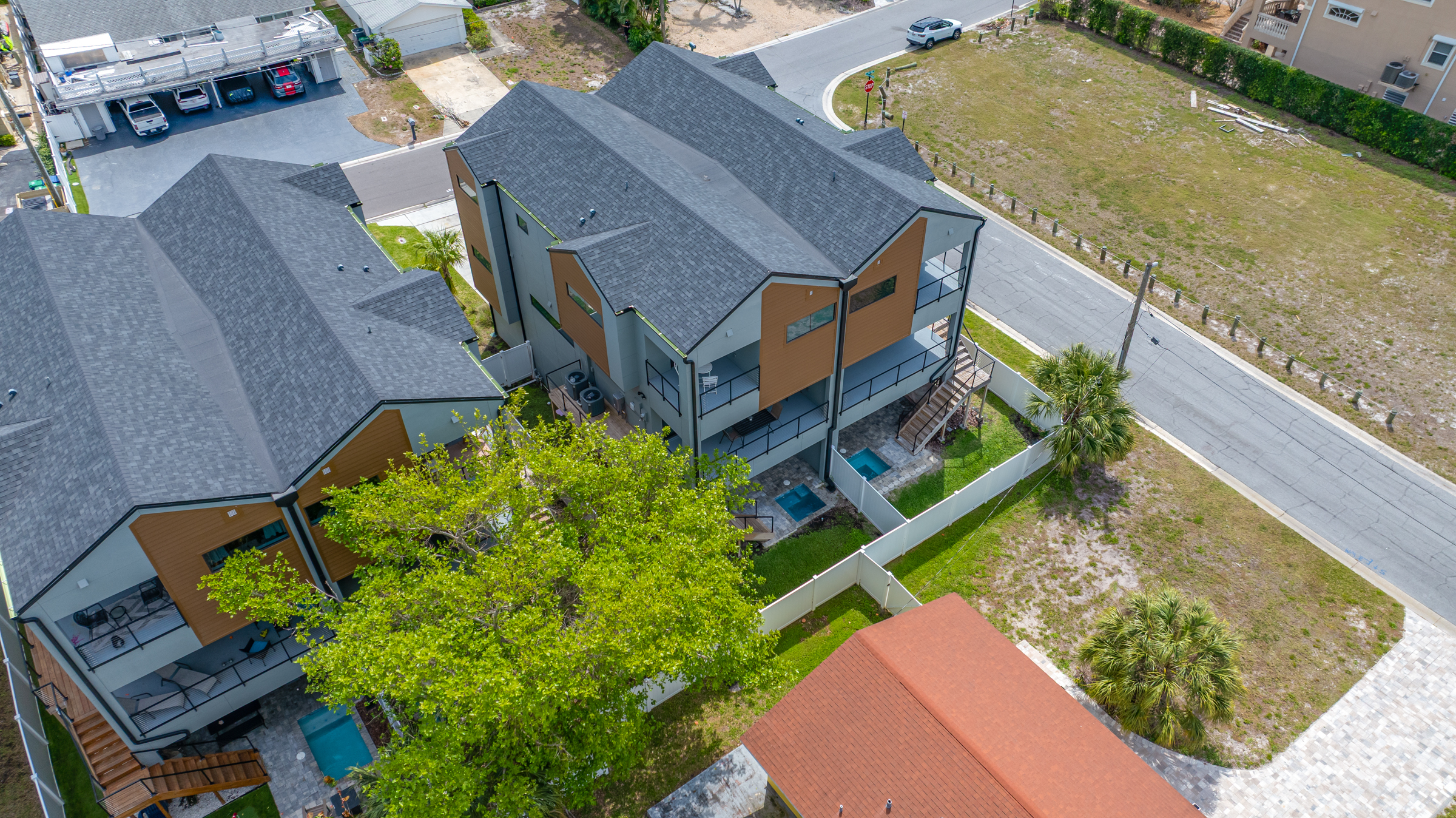 Come see why Indian Rocks Beach is the best kept secret in the area - the benefits of gorgeous beaches and sunsets, shops, restaurants and easy access to the Gulf or Intracoastal without the crowds, noise, and garbage. This 2024 beautiful end unit townhome is perfectly positioned between the Gulf and the Intracoastal with views of both. It offers tons of light, big balconies, a 2 1/2-car garage, along with 4-bedrooms and 3-bathrooms. The unit has an open concept layout with high ceilings and beautiful custom high-end finishes that make entertaining a delight. Ceiling fans and laminate floors throughout - no carpeting anywhere. The indoor kitchen is a chefs dream with stainless appliances, marble/quartz counter tops, plenty of cabinets, pantry, and spectacular views while you prepare your meals. All floors can be accessed by a convenient elevator with phone. The primary bedroom terrace provides beautiful sunsets and natural lighting with picturesque water views. The primary bathroom shower is dual-head and big enough for a party. There is a private Pebble Tec in-ground pool with a water feature. All pool equipment and air conditioning units are elevated. The whole outdoor entertainment area has modern pavers and professional landscaping. There is a beautiful outdoor kitchen for grilling with friends and family. Just picture yourself walking onto the terrace overlooking the backyard and gorgeous skies at sunset, or cruising the neighborhood in your golf cart, or zipping down the street to the beach (where plenty of parking spots are reserved for locals). Or you might stroll out to one of multiple restaurants or hop on the Beach Trolly South to St Pete or North to Clearwater. Or walk down the street to play tennis or pickleball at Kolb Park. Or go fishing in the Intracoastal or Gulf. There are no rental restrictions so short-term and long-term rentals without stipulations are possible. Watch the sunrise over the intracoastal and sunset on the Gulf from your kitchen or balcony! Enjoy it year-round or as a vacation home that gives you income when you arent there. Come check out Tesoro Del Mar at 2200 Bay Blvd., Unit A!
