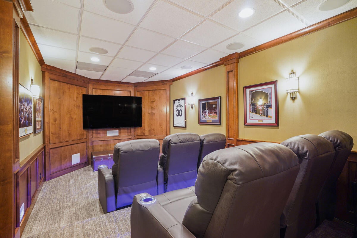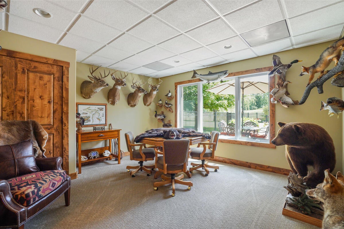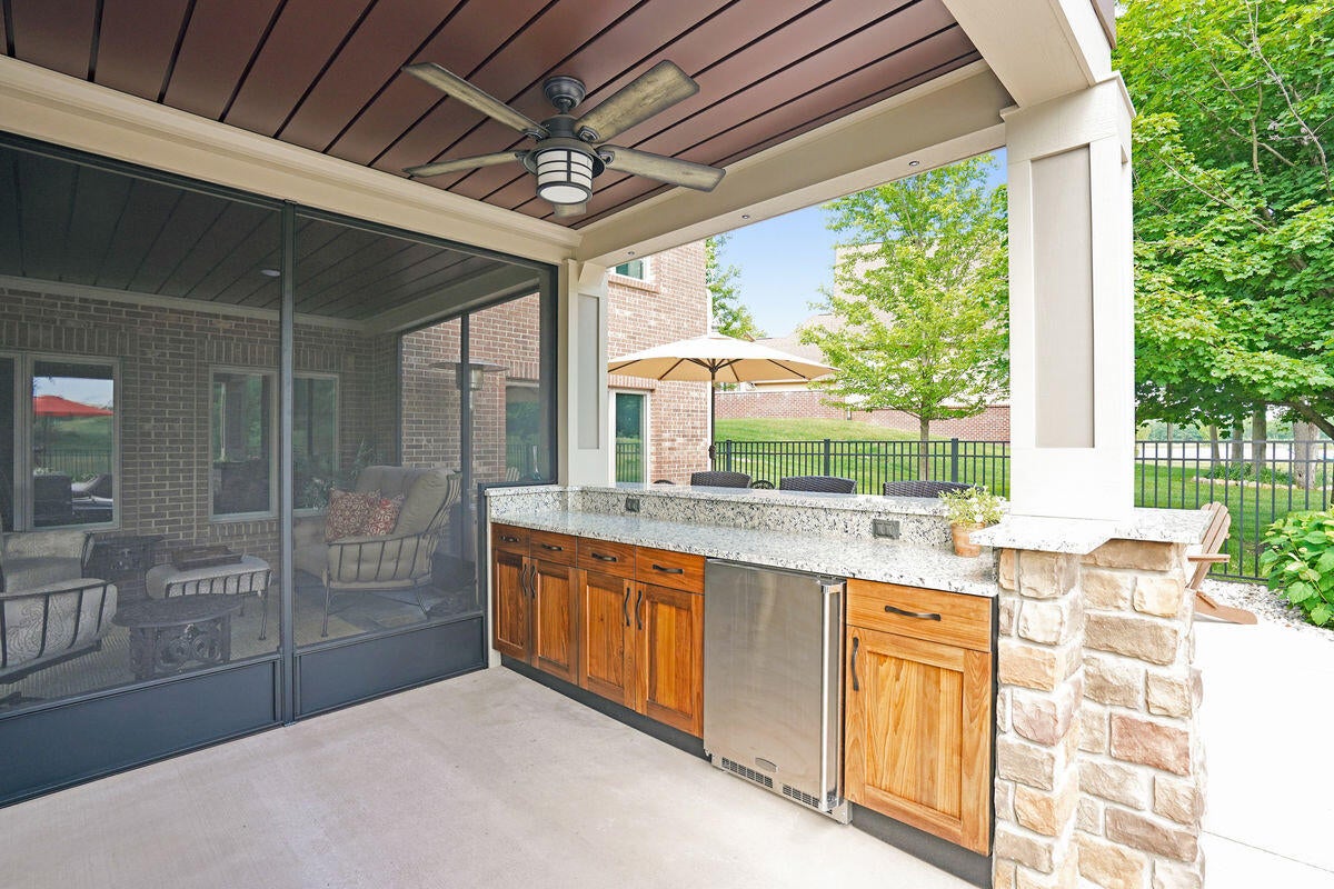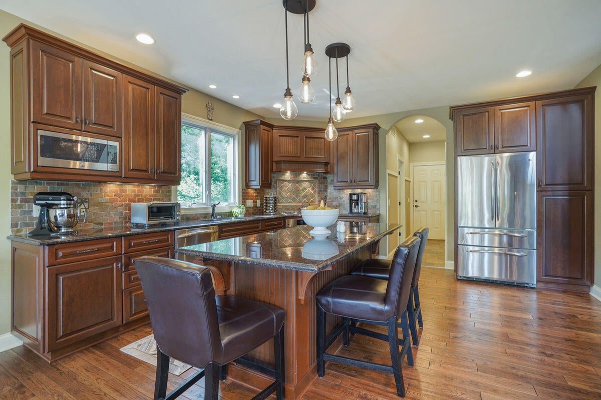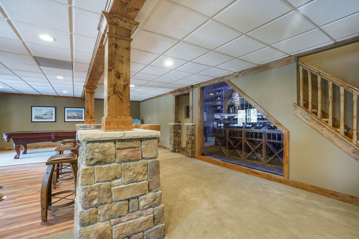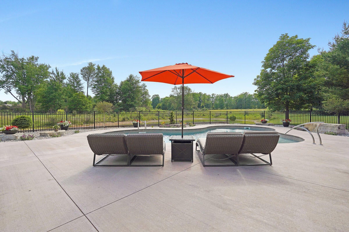 House of Distinction in Tullymore Resort Adjacent to Canadian Lakes. Welcome to a truly exceptional residence in the prestigious Tullymore Resort community, perfectly positioned adjacent to the beauty and lifestyle of Canadian Lakes. From the moment you arrive, the stamped concrete drive and striking arched stone entry set the tone for the elegance that awaits within. Step inside to soaring vaulted ceilings and a dramatic floor-to-ceiling, two-way fireplace that anchors the great room while also enhancing the expansive composite deck--creating seamless indoor-outdoor living.The thoughtfully designed main level showcases an outstanding floor plan, highlighted by a luxurious primary suite featuring dual walk-in closets and a spa-inspired bath complete with jetted tub, dual vanities, and a dedicated makeup counter. The chefs kitchen is both functional and stunning, offering rich cherry cabinetry, granite countertops, stainless appliances and oak wood flooring--perfect for entertaining or everyday living. Upstairs, youll find a comfortable sitting area, two generously sized bedrooms, and a full bath--ideal for guests or family. The walkout lower level is an entertainers dream, featuring a custom bar with double tap system, a spectacular home theater, a glass-accent wine cellar, a full second kitchen, and an additional bedroom and full bath for guests. Step outside to the expansive screened three-season room overlooking the resort-style outdoor living space. The kidney-shaped pool with sun shelf is surrounded by impressive landscaping, including a stone retaining wall, wrought iron fencing, a gas firepit, outdoor lighting, and a outdoor kitchen area--creating a private oasis for relaxation and entertaining. Additional highlights include meticulous wood detailing, coffered ceilings, a 3-car garage with ample storage, an under-deck drainage system, surround sound, and numerous newer appliances--reflecting both quality craftsmanship and thoughtful upgrades throughout. This is more than a home--its a lifestyle defined by luxury, comfort, and the best of resort living.