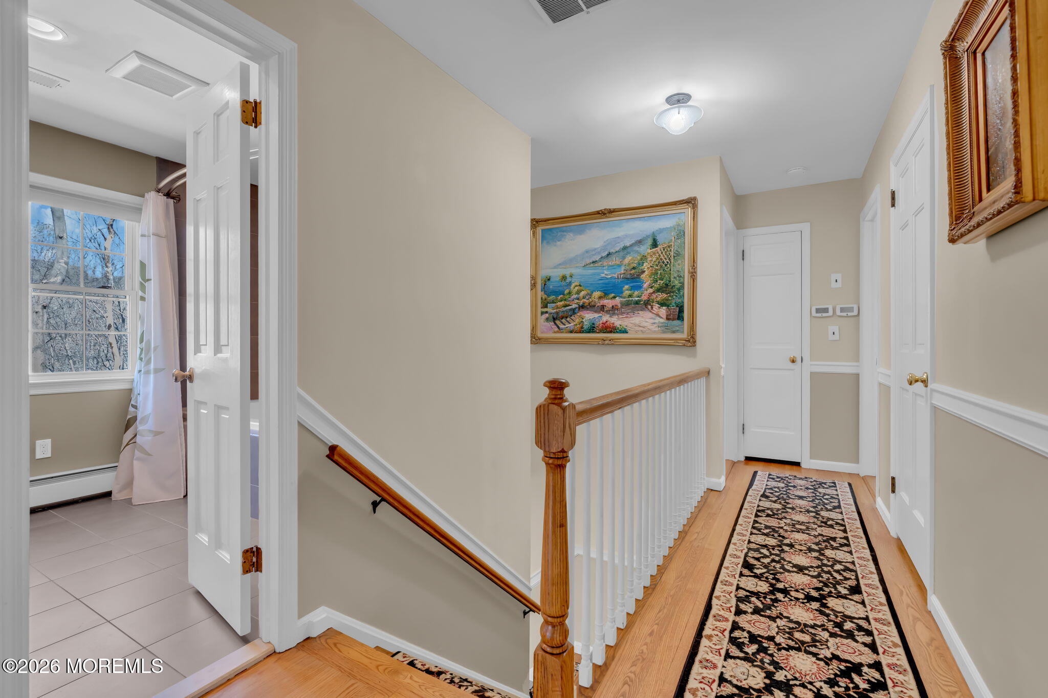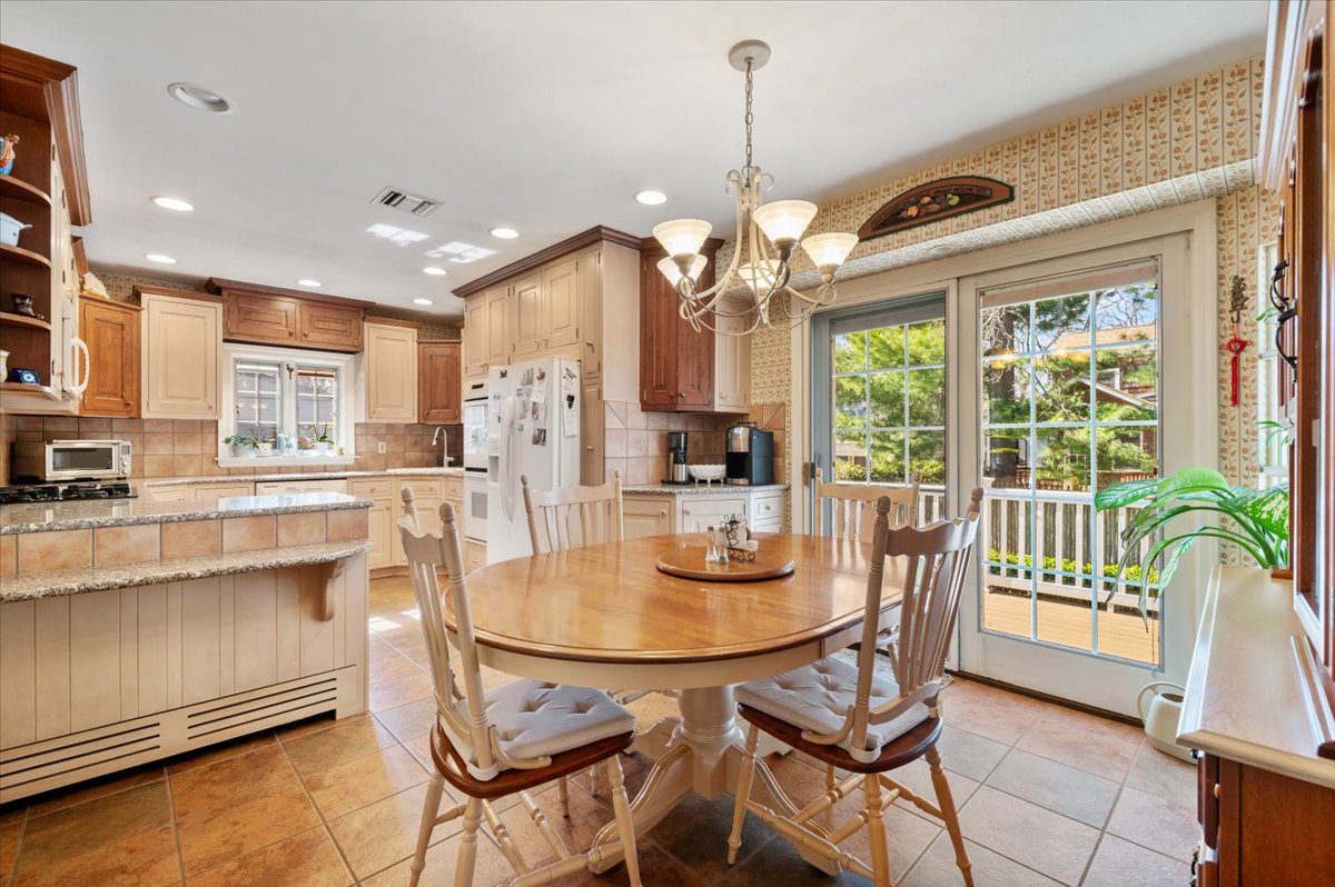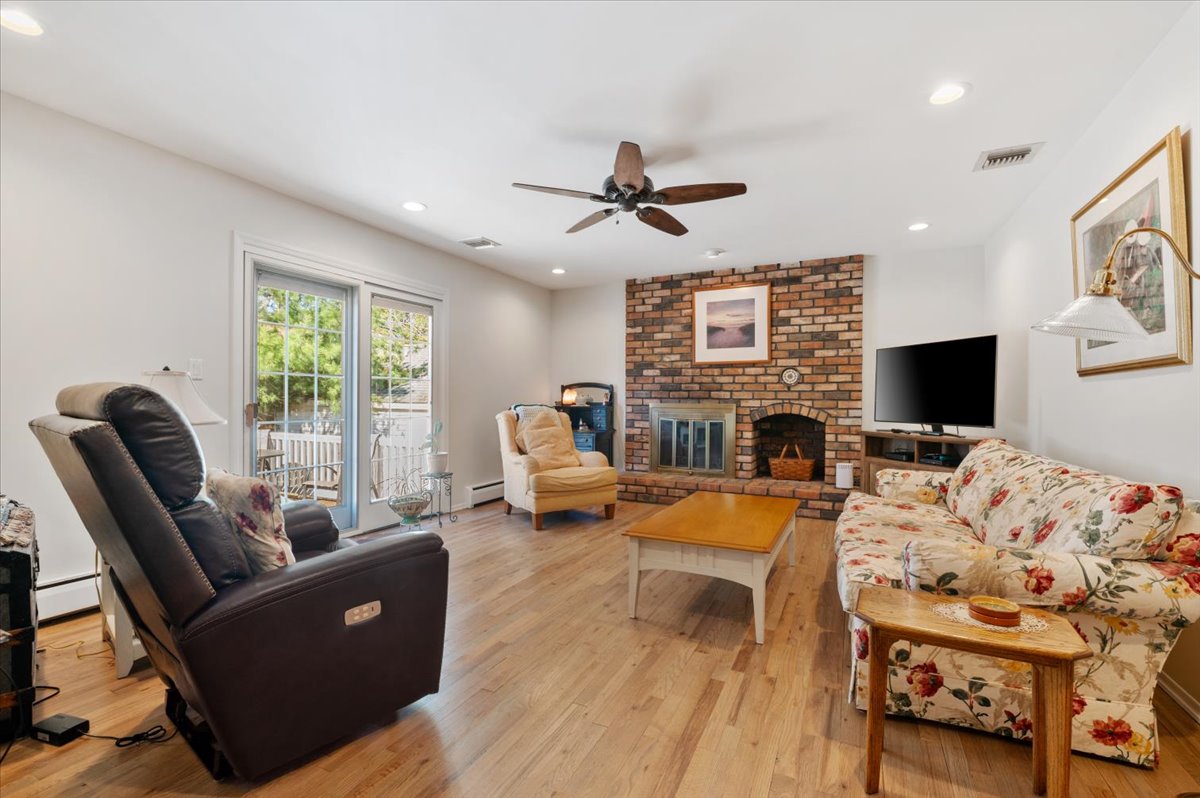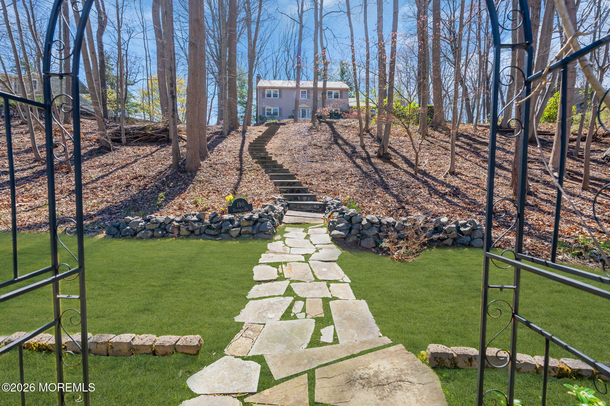 Welcome to 190 Deepdale Dr. Tucked away on a private lane in the highly sought after Oak Hill neighborhood of Middletown. This beautifully maintained 4 bedroom, 2 1/2 bath home offers a welcoming atmosphere, refined updates and a peaceful, private setting. Step inside the sun filled interior featuring neutral decor and hardwood floors throughout. The expansive living room is bathed in natural light and features a cozy wood burning fireplace, perfect for relaxing or entertaining. At its center, the kitchen seamlessly blends performance and design with Decora cabinetry, quartz countertops, ceramic tile, KitchenAid appliances and walk in pantry. The adjoining dining and family room, includes custom built ins and French doors that lead to an expansive bluestone patio, ideal for outdoor gatherings while enjoying the surrounding natural beauty. Upstairs, the generous primary includes an ensuite bath with granite countertops, ceramic stall shower, and walk in closet. Three additional bedrooms share a well designed center hall bathroom. A fully finished basement provides versatile space for recreation, wellness or storage and includes a dedicated laundry area. In addition, a flexible bonus space above the garage with interior access awaits your vision, perfect for a home office, studio, or expanded master suite. Enjoy the perfect balance of privacy and convenience, with easy access to the GSP, Red Bank, NYC transit, shopping, beaches and parks. The current owners have continuously enhanced the home, resulting in a residence that feels warm welcoming and move in ready. Major improvements have been updated over time, including but not limited to replaced roof (2021), windows (2023), kitchen renovation (2017), and AC units(2025).