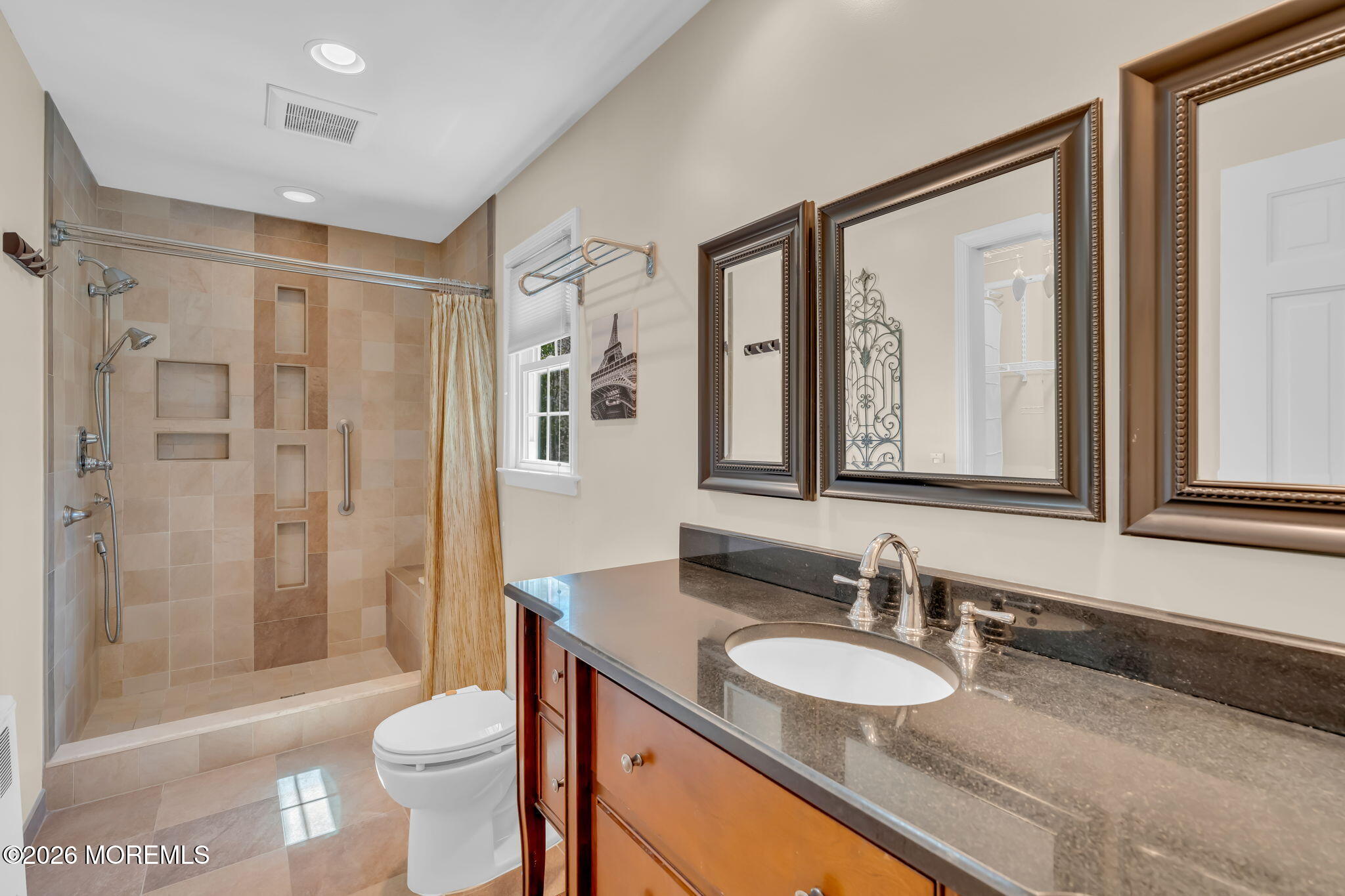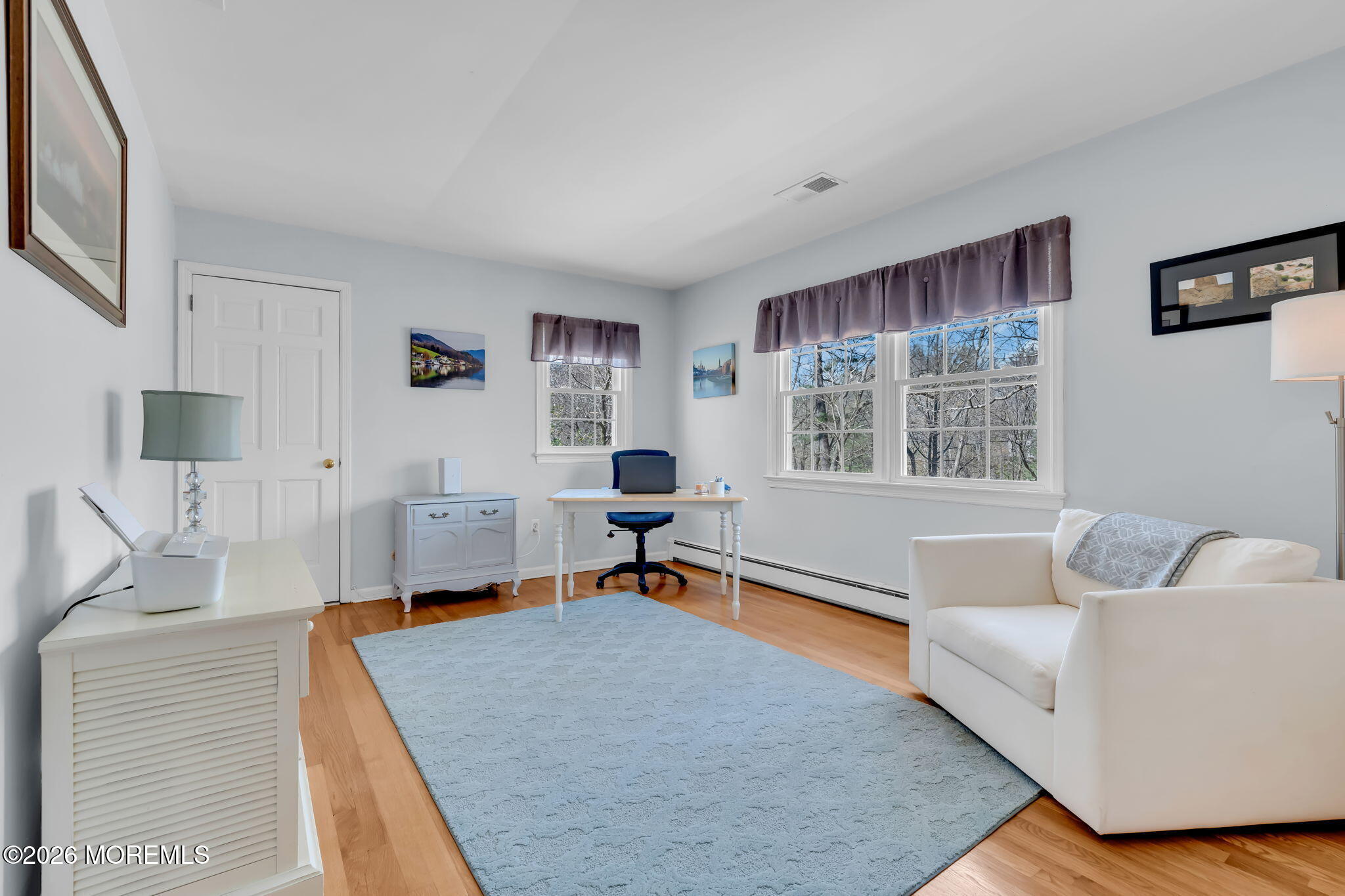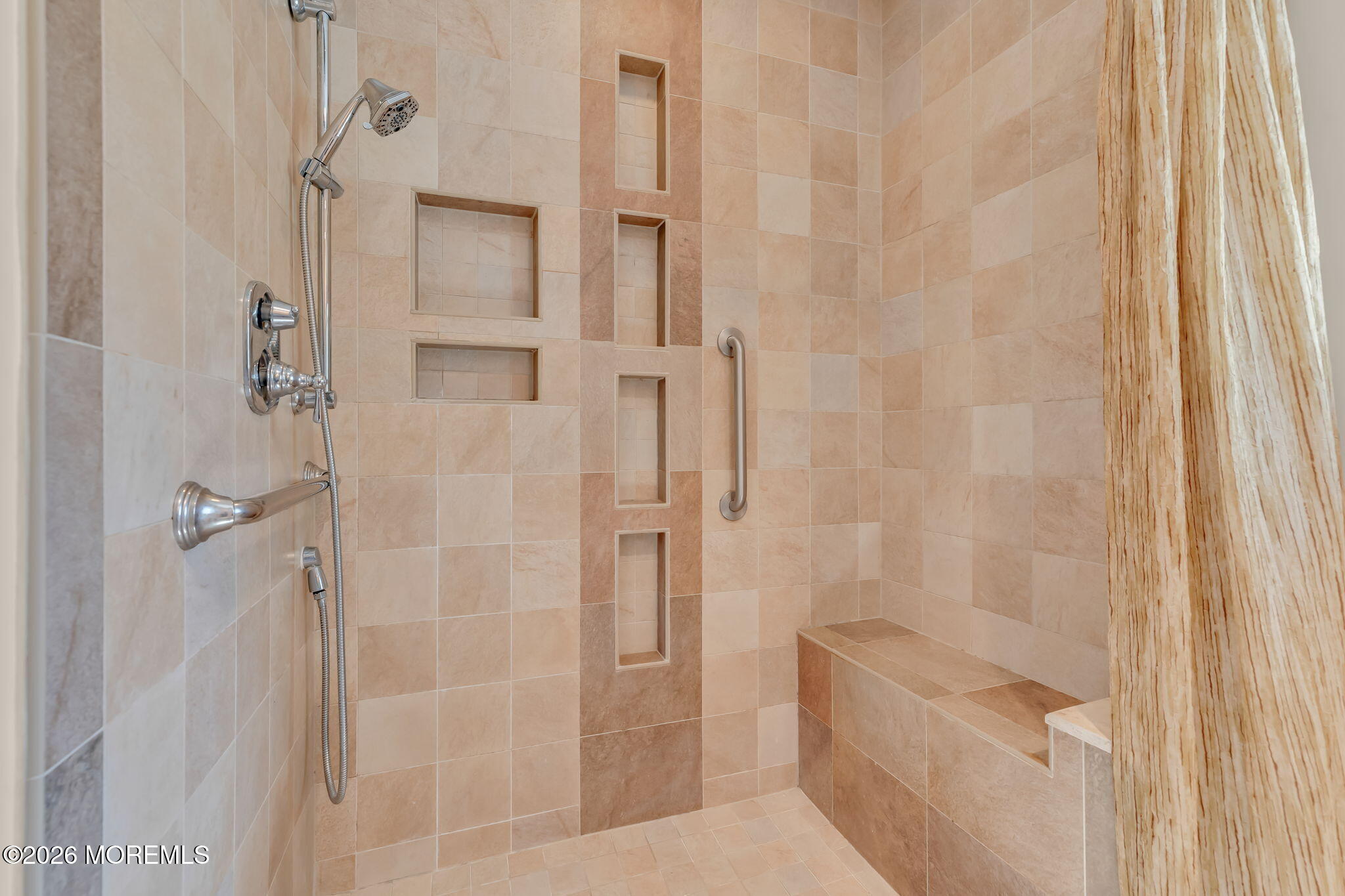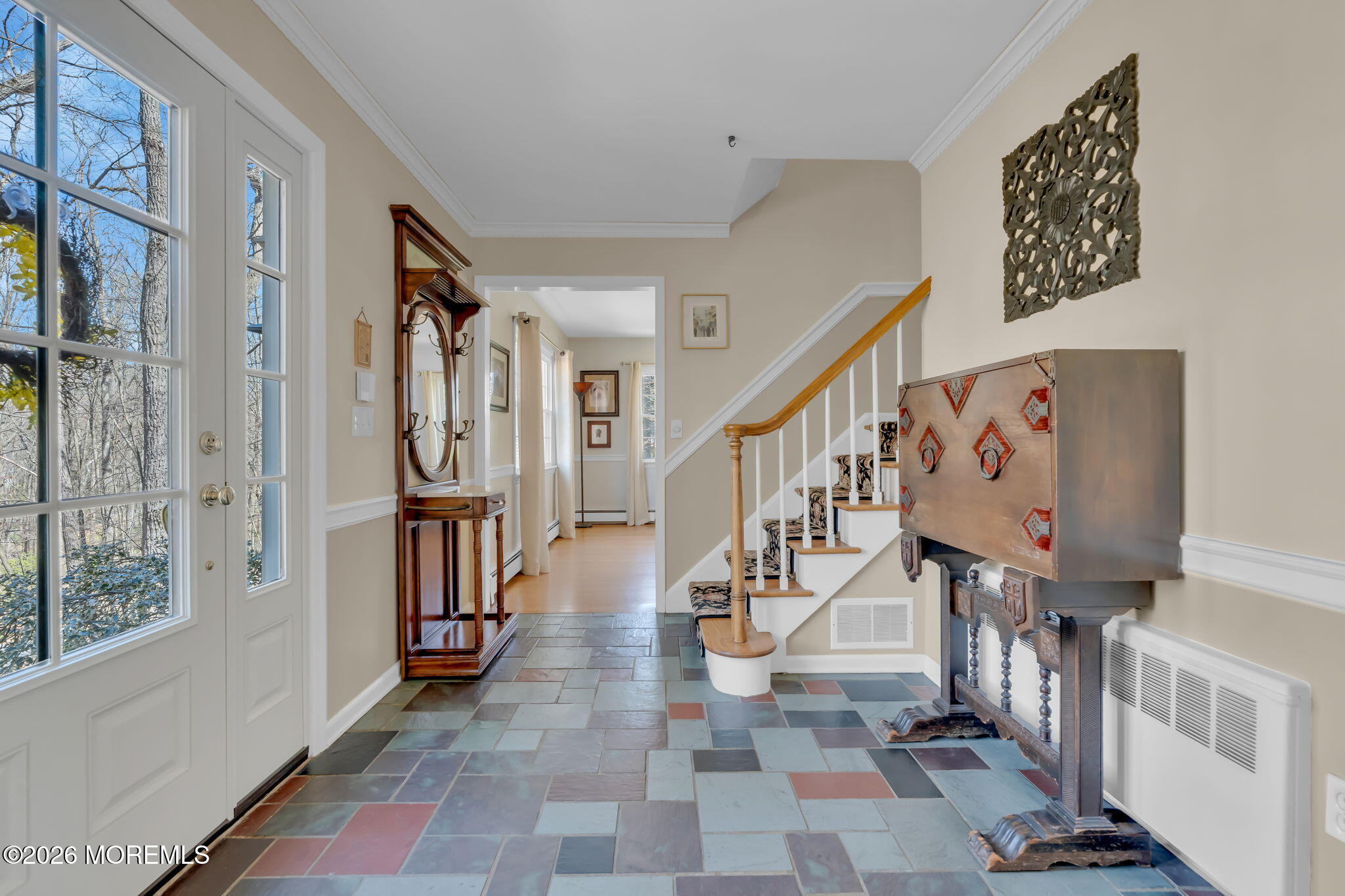 Welcome to 190 Deepdale Dr. Tucked away on a private lane in the highly sought after Oak Hill neighborhood of Middletown. This beautifully maintained 4 bedroom, 2 1/2 bath home offers a welcoming atmosphere, refined updates and a peaceful, private setting. Step inside the sun filled interior featuring neutral decor and hardwood floors throughout. The expansive living room is bathed in natural light and features a cozy wood burning fireplace, perfect for relaxing or entertaining. At its center, the kitchen seamlessly blends performance and design with Decora cabinetry, quartz countertops, ceramic tile, KitchenAid appliances and walk in pantry. The adjoining dining and family room, includes custom built ins and French doors that lead to an expansive bluestone patio, ideal for outdoor gatherings while enjoying the surrounding natural beauty. Upstairs, the generous primary includes an ensuite bath with granite countertops, ceramic stall shower, and walk in closet. Three additional bedrooms share a well designed center hall bathroom. A fully finished basement provides versatile space for recreation, wellness or storage and includes a dedicated laundry area. In addition, a flexible bonus space above the garage with interior access awaits your vision, perfect for a home office, studio, or expanded master suite. Enjoy the perfect balance of privacy and convenience, with easy access to the GSP, Red Bank, NYC transit, shopping, beaches and parks. The current owners have continuously enhanced the home, resulting in a residence that feels warm welcoming and move in ready. Major improvements have been updated over time, including but not limited to replaced roof (2021), windows (2023), kitchen renovation (2017), and AC units(2025).