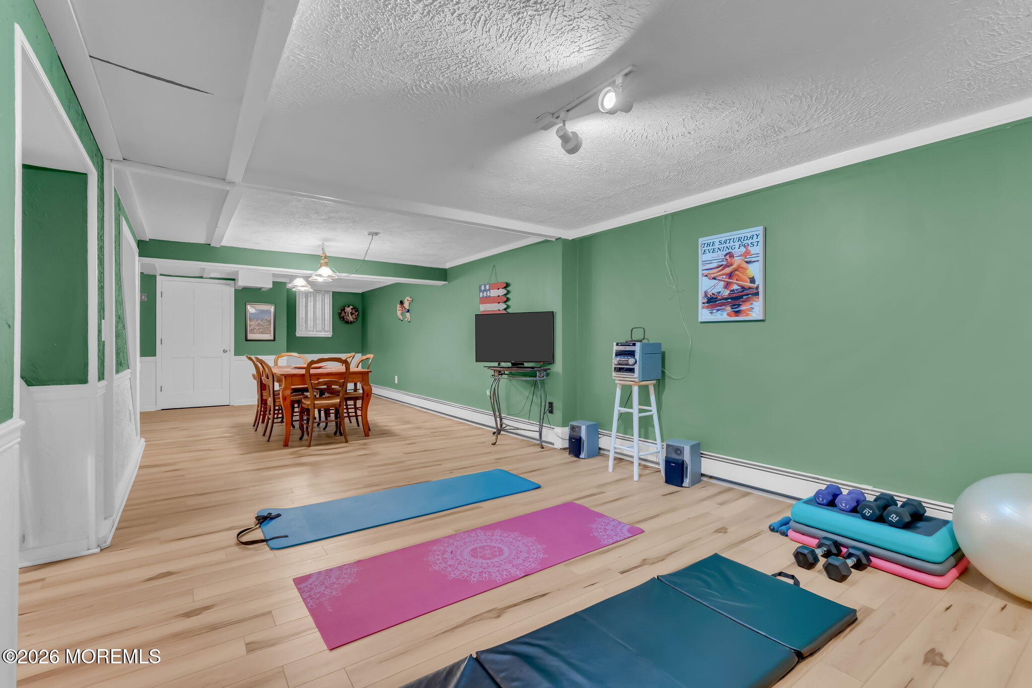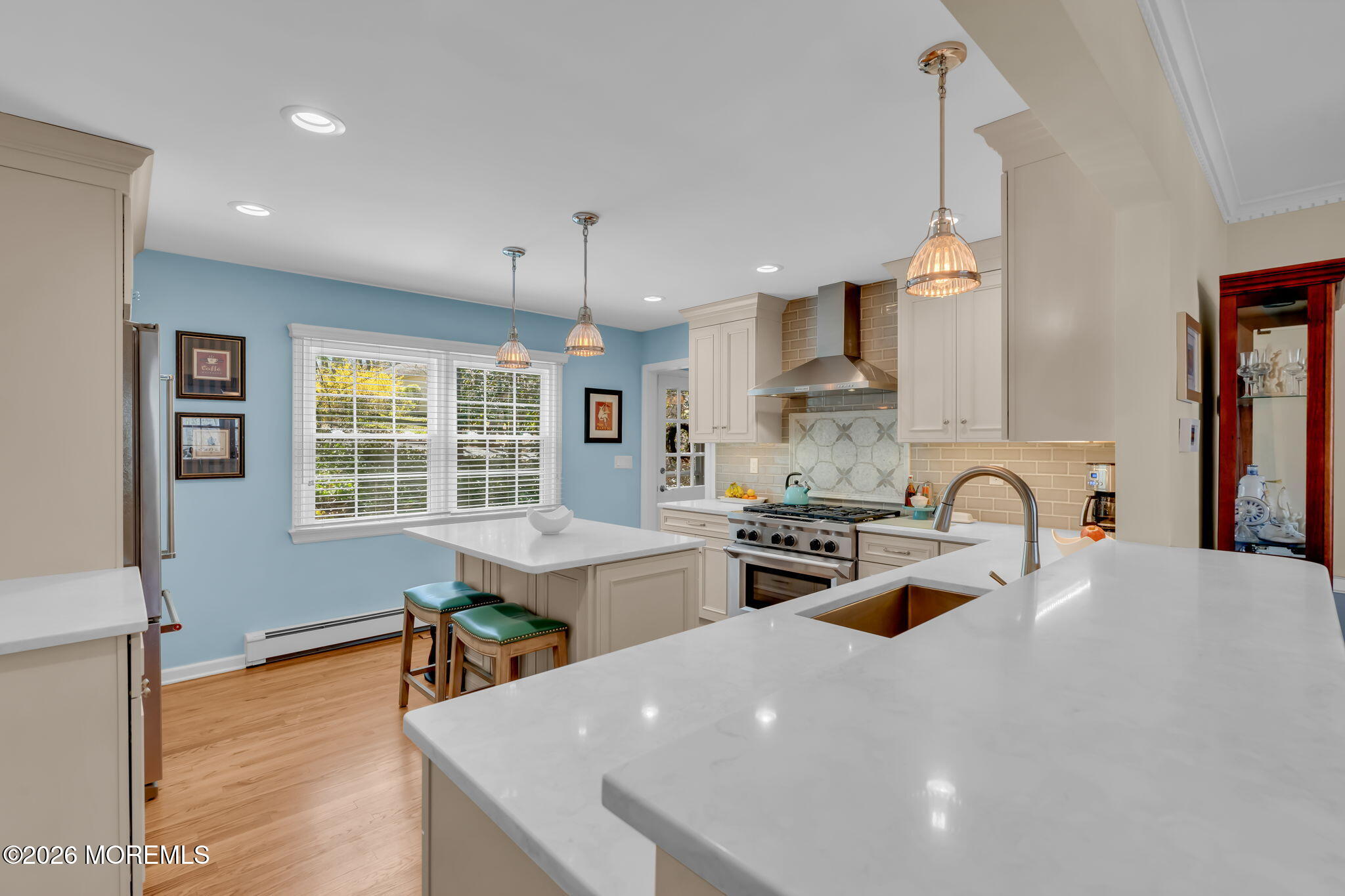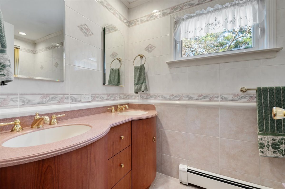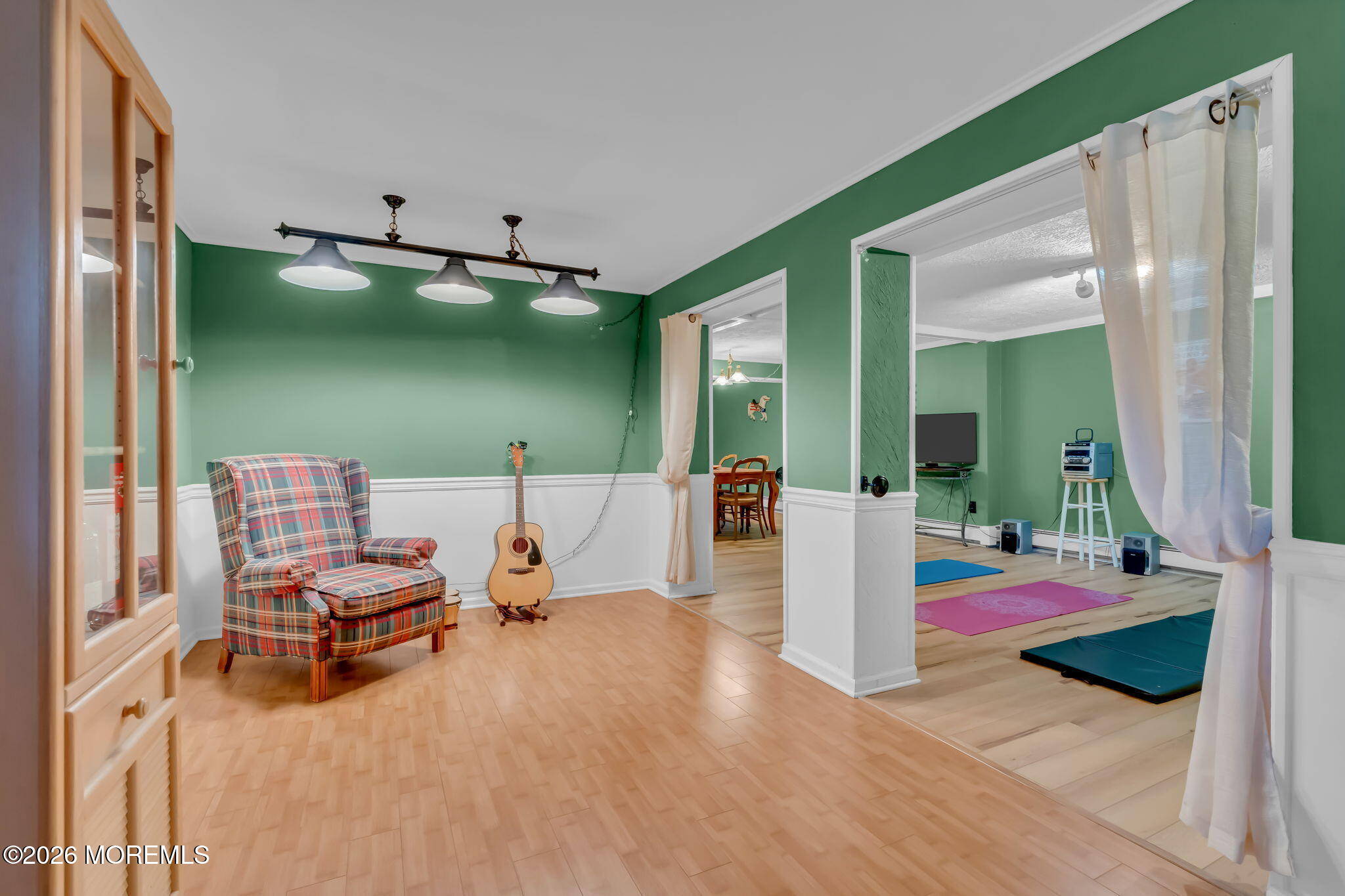 Welcome to 190 Deepdale Dr. Tucked away on a private lane in the highly sought after Oak Hill neighborhood of Middletown. This beautifully maintained 4 bedroom, 2 1/2 bath home offers a welcoming atmosphere, refined updates and a peaceful, private setting. Step inside the sun filled interior featuring neutral decor and hardwood floors throughout. The expansive living room is bathed in natural light and features a cozy wood burning fireplace, perfect for relaxing or entertaining. At its center, the kitchen seamlessly blends performance and design with Decora cabinetry, quartz countertops, ceramic tile, KitchenAid appliances and walk in pantry. The adjoining dining and family room, includes custom built ins and French doors that lead to an expansive bluestone patio, ideal for outdoor gatherings while enjoying the surrounding natural beauty. Upstairs, the generous primary includes an ensuite bath with granite countertops, ceramic stall shower, and walk in closet. Three additional bedrooms share a well designed center hall bathroom. A fully finished basement provides versatile space for recreation, wellness or storage and includes a dedicated laundry area. In addition, a flexible bonus space above the garage with interior access awaits your vision, perfect for a home office, studio, or expanded master suite. Enjoy the perfect balance of privacy and convenience, with easy access to the GSP, Red Bank, NYC transit, shopping, beaches and parks. The current owners have continuously enhanced the home, resulting in a residence that feels warm welcoming and move in ready. Major improvements have been updated over time, including but not limited to replaced roof (2021), windows (2023), kitchen renovation (2017), and AC units(2025).