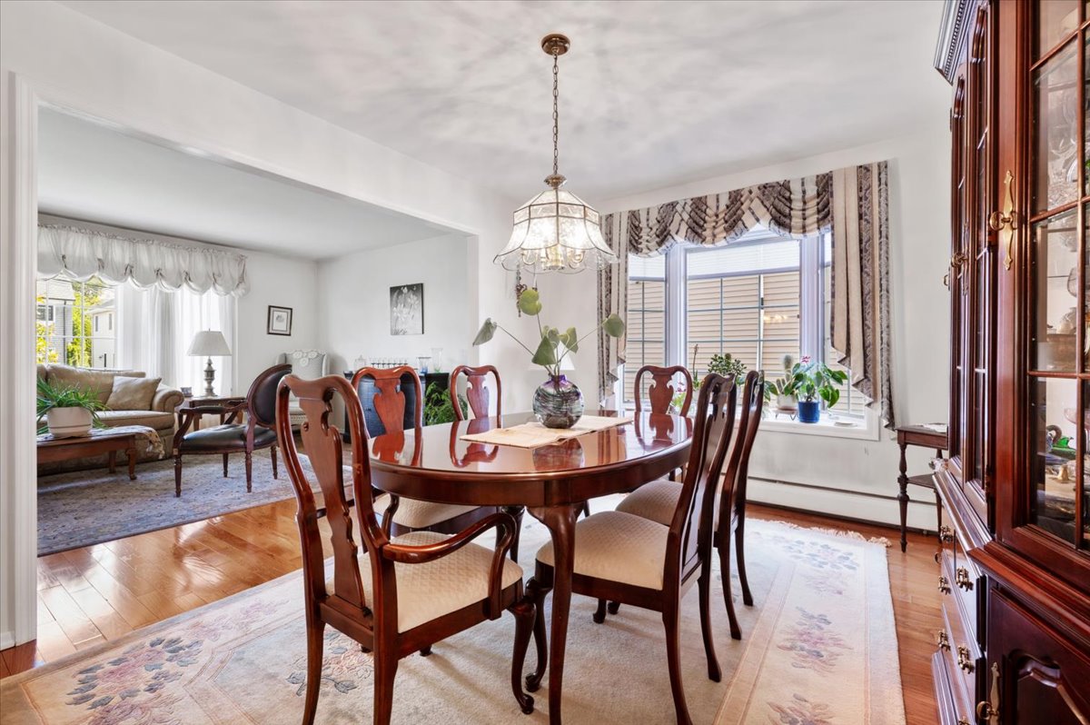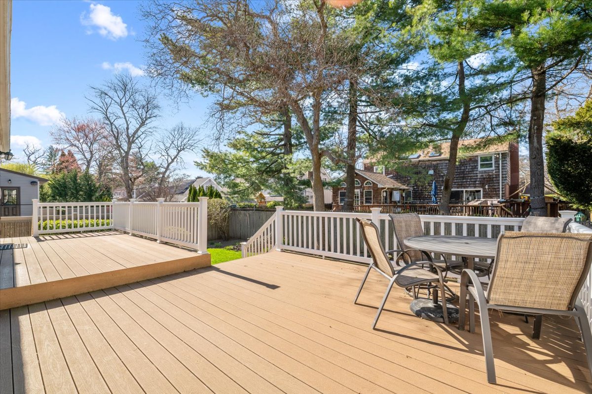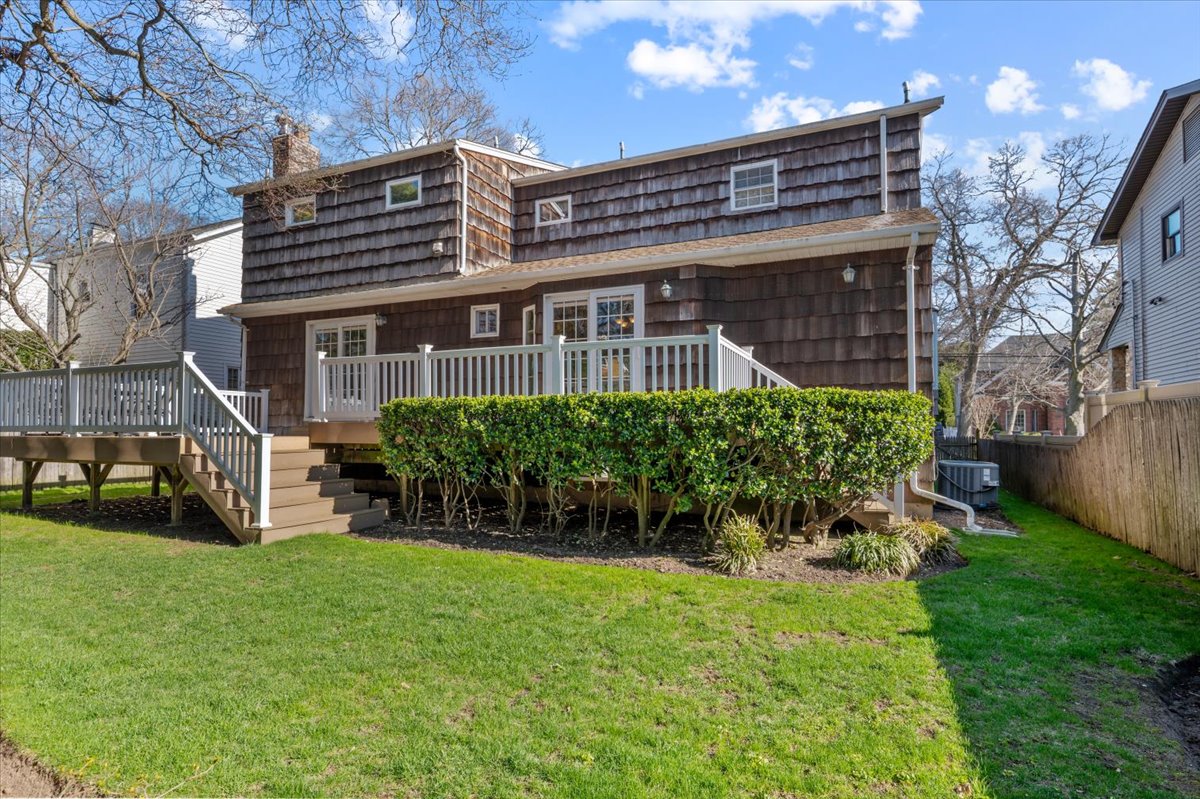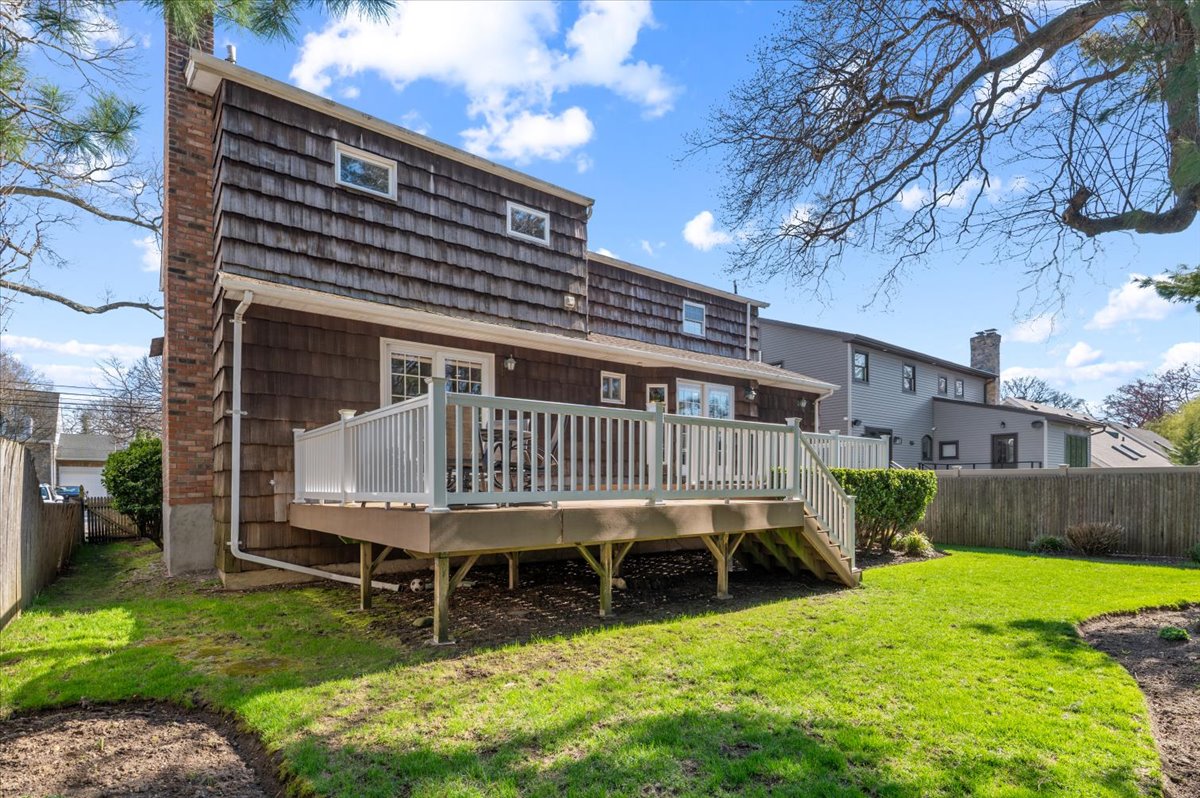 Stunning colonial 4 bedrooms, 2.5 baths with exceptional curb appeal. Nestled in the highly desirable Merrick community and located within the top rated Merrick school district. The property is set in beautiful Merrick Woods close to essential amenities such as supermarkets, shopping, and a 0.8 mile to the LIRR. The main level includes a large foyer, spacious living room, an elegant formal dining room, eat in kitchen and a cozy family room with a fireplace. Sliding doors open seamlessly to the deck, fenced in backyard, creating an ideal setting for indoor outdoor living and entertaining. Hardwood floors throughout the house with abundant natural light. The upper level includes 4 bedrooms, laundry room, and an oversized king size plus primary bedroom with a walk in closet and full bath. The layout complements the well-maintained interior with convenient access to the garage. Enjoy the natural light in the large basement which includes new full size windows. Additional highlights include gas heating, central air conditioning, hardwood and tile flooring. Convenient to the Amazing Hamlet of Merrick with lots of shopping, restaurants, recreation and LIRR station. A Real Gem that is Beautifully maintained. Dont delay on this beauty!