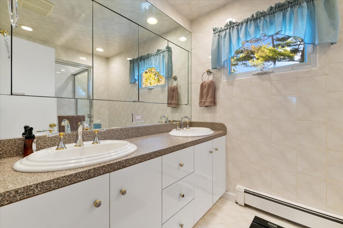 Experience the best of lakefront living on the shores of Lake Champlain, where every day feels like a retreat and every space is designed for both relaxed living and unforgettable entertaining. The first floor welcomes you with elegant Italian tile flooring and a spacious living room centered around a cozy fireplace, all framed by stunning lake views. Expansive glass doors open to a porch, creating a seamless indoor-outdoor flow--perfect for morning coffee by the water or hosting guests at sunset. The kitchen is a true gathering space, featuring quartz countertops, a gas stovetop, and double wall ovens, all open to the dining area with breathtaking views of the lake and surrounding mountains. Large sliding doors lead to the deck, making entertaining effortless while embracing the beauty of waterfront living. A first-floor bedroom, half bath with new vanity and sink, and a convenient new full bath with laundry complete this level. Upstairs, new hardwood flooring enhances a bright and inviting family room with sliding doors that lead to a spacious upper deck--an ideal spot to unwind and take in panoramic lake views. The primary suite offers a private retreat with its own bathroom and a generous walk-in closet. Two additional bedrooms and a full bath provide ample space for everyday living or guests. Lake access stairs lead to dock and solar powered hydraulic boat lift. New septic system. See feature sheet for all upgrades. Close to Ferry to Vermont. Home has audio/video surveillance.