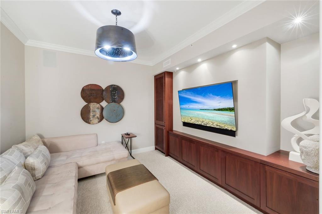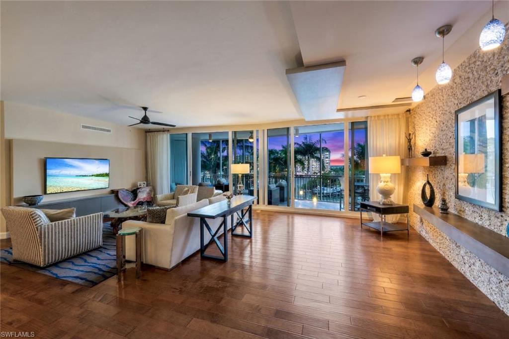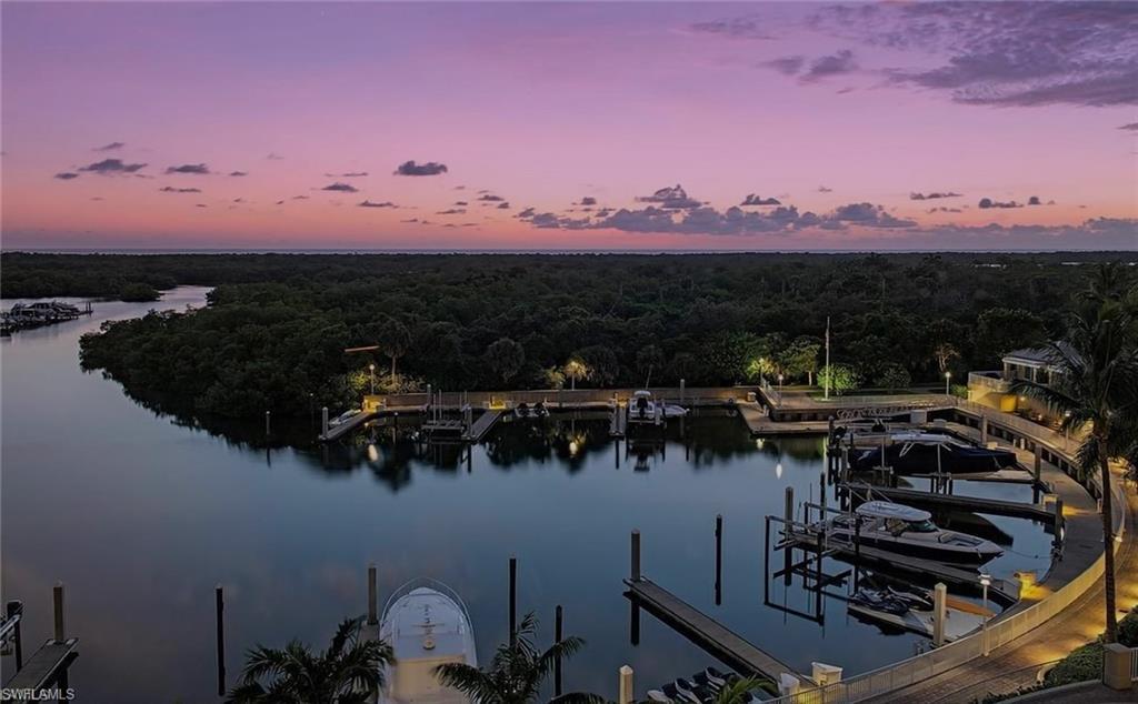 Experience elevated coastal living at AQUA at Pelican Isle, one of North Naples most exclusive luxury waterfront towers. This spacious 3,590 sq. ft. residence offers a rare opportunity to own a beautifully designed, Gulf-facing condominium positioned to capture sweeping views of the marina, mangroves, and the Gulf beyondwithout overlooking parking areas or close neighboring buildings.Designed with a desirable front-to-back floor plan, the residence features two expansive balconies that invite seamless indoor-outdoor living. Start your mornings overlooking vibrant landscape over the newly manicured Kinsale Golf course and end each evening with spectacular Gulf sunsets and afterglows from your private balcony overlooking a peaceful yacht harbor. Dolphins, manatees, and passing boats create a constantly changing waterfront backdrop.Originally built as a model residence by the renowned Antonacci Design Group, this home showcases refined contemporary coastal design with luxury finishes and architectural details throughout. The residence includes 4 bedrooms plus a den, 4 full bathrooms, and two secured garage parking spaces, and is offered furnished, making it ideal for a seasonal resident seeking a move-in-ready Naples retreat.A private elevator vestibule entry welcomes you into a sophisticated interior highlighted by elegant wood flooring, custom Italian cabinetry, and thoughtfully curated design elements that blend comfort with luxury.Residents of AQUA enjoy the privacy of a low-density luxury tower combined with an exceptional collection of resort-style amenities. The community features a private marina with boat slips, cabanas, and direct Gulf access, along with kayaks for exploring the surrounding waterways. Additional amenities include a concierge attended lobby with 24/7 security, fitness center with sauna and steam rooms, theater, billiards lounge with golf simulator and bar, two grand social rooms, and beautifully designed outdoor gathering spaces.Outdoors, enjoy the resort-style pool and spa areas, grills stations, marina pavilion, fire pits, and a Sky Loungeperfect for entertaining or simply relaxing while taking in the waterfront setting. AQUA is also pet-friendly with dedicated dog park areas.For those seeking an elevated club lifestyle, optional memberships are available next door at Pelican Isle Yacht Club, offering waterfront dining, tennis, pickleball, instructed fitness, and a shuttle boat to the beach. Golf enthusiasts may also consider opportunities at the newly opened Kinsale Golf Club, an exclusive course for 250 members.Combining expansive living space, breathtaking waterfront views, and one of Naples most refined amenity offerings, this residence delivers a truly exceptional luxury coastal lifestyle in North Naples.