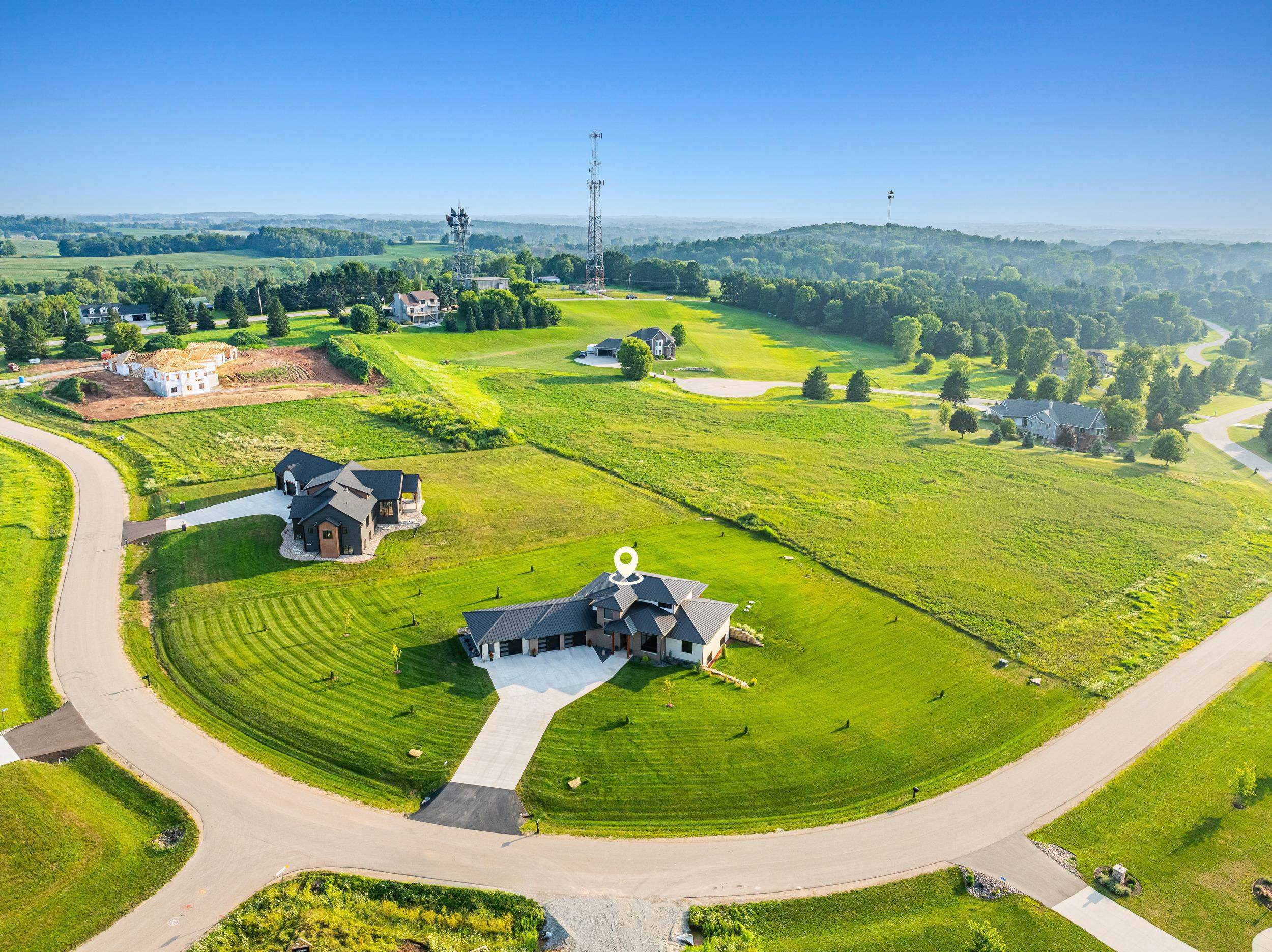 Better than new luxury home in Hortonville offering high-end finishes and thoughtful design throughout. Main level features genuine hickory hardwood floors and a bright, open concept layout. Chef's kitchen includes a massive quartz island, premium fixtures, and seamless flow into the living space perfect for everyday living or entertaining. Primary suite offers a spa-like bathroom with heated tile floors and zero-entry shower. Upstairs movie room provides the perfect space for game days or relaxing nights in. Enjoy the covered patio overlooking a peaceful backyard with scenic views. Exterior features James Hardie siding, brick accents, and a metal roof for long-lasting durability. A truly standout home loaded with upgrades inside and out.
