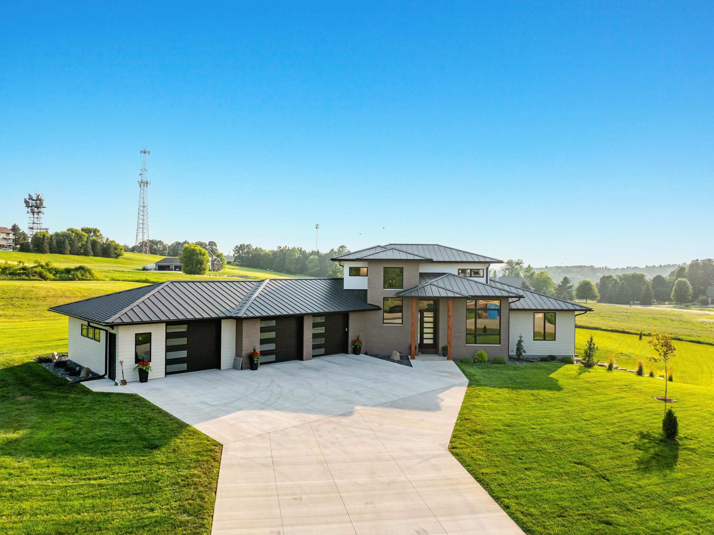 Better than new luxury home in Hortonville offering high-end finishes and thoughtful design throughout. Main level features genuine hickory hardwood floors and a bright, open concept layout. Chef's kitchen includes a massive quartz island, premium fixtures, and seamless flow into the living space perfect for everyday living or entertaining.