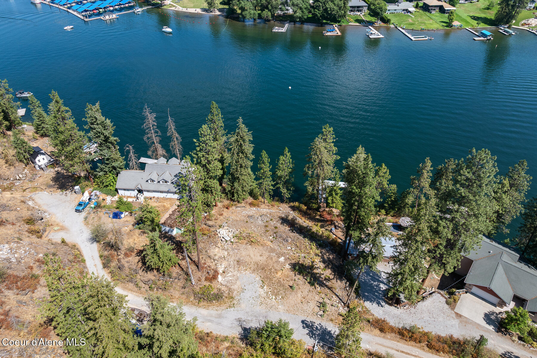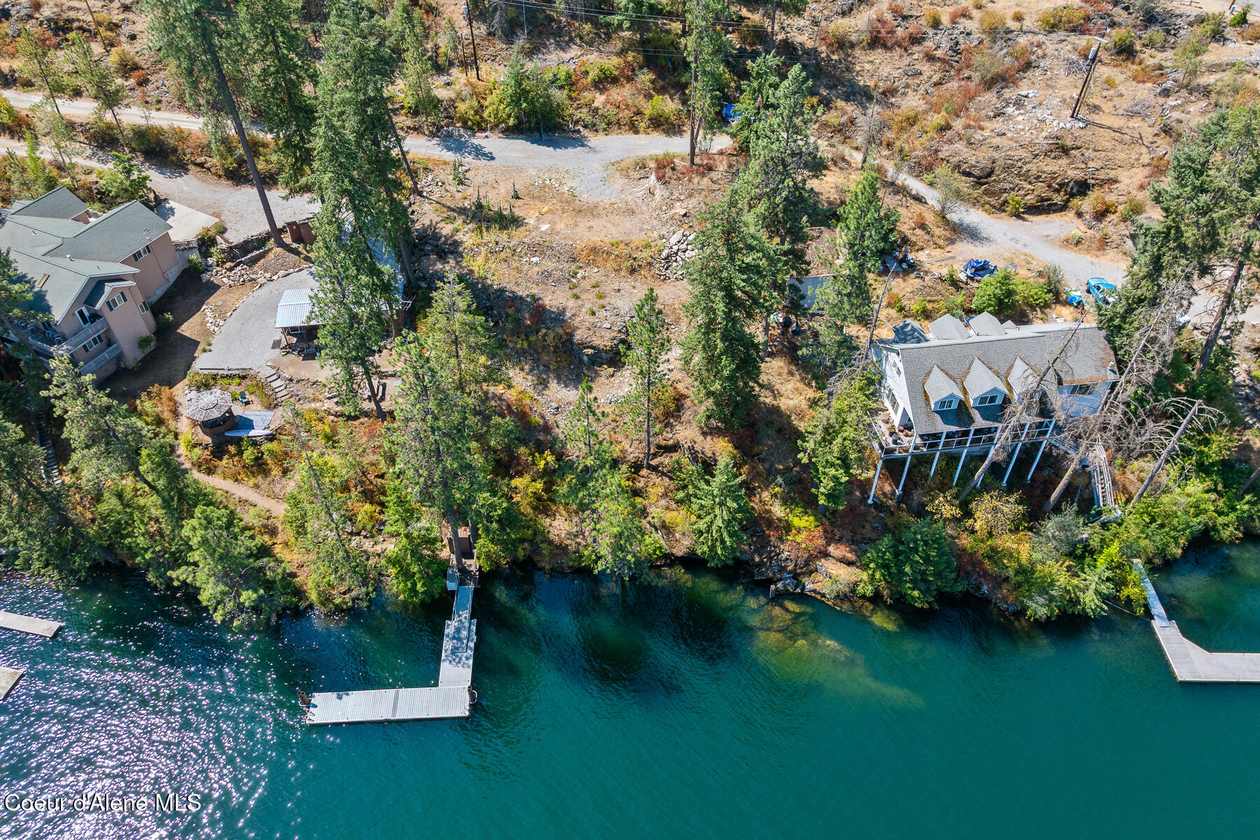 Exceptional waterfront opportunity on the Spokane River offering 120 feet of deep-water frontage and breathtaking views both up and down the river. A level building pad perched above the water provides an ideal setting for your custom home, maximizing both privacy and the incredible vantage point.