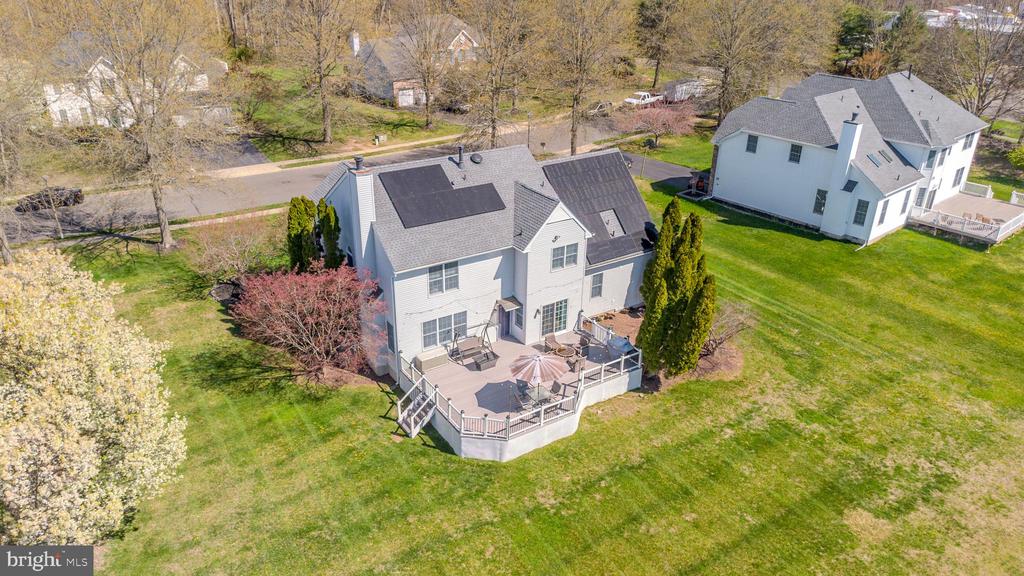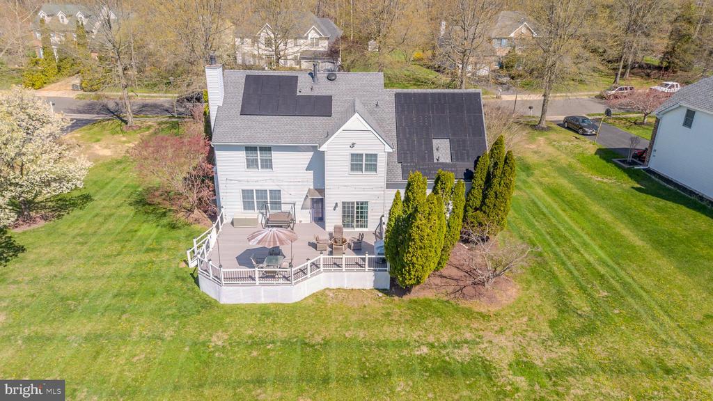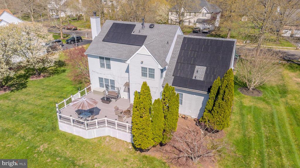 Experience refined living in this exquisite four-bedroom, three-and-a-half-bath Colonial, gracefully situated in one of the area's most desirable communities. A dramatic two-story foyer adorned with a dazzling crystal chandelier sets the tone for the elegance that unfolds throughout the home. The main level showcases newer hardwood flooring throughout, complemented by recessed lighting and stylish ceiling fans, creating a warm yet sophisticated ambiance. At the heart of the home, the beautifully updated kitchen is designed to impress, featuring stainless steel appliances, gleaming granite countertops, and a striking mosaic glass backsplash. The spacious family room offers the perfect gathering space, highlighted by a cozy gas fireplace that adds both charm and comfort, while the formal living and dining rooms provide refined settings for entertaining.Upstairs, the luxurious primary suite serves as a serene retreat with an updated en suite bath, while three additional generously sized bedrooms offer ample closet space and share a tastefully renovated main bath. The fully finished basement expands the living space with recessed lighting and a dedicated storage room, ideal for recreation, a home office, or a private gym. Additional features include a one-year-old washer and dryer, newer hot water heater and HVAC system, and financed solar panels for 81.16, that help reduce electric costs. Outdoors, enjoy the beautifully appointed oversized Trex deck, a concrete front porch, five-zone sprinkler system, color-changing exterior lighting for striking curb appeal, a Ring security camera system, and a two-car attached garage. This exceptional residence seamlessly blends timeless Colonial elegance with modern upgrades, offering a lifestyle of comfort, efficiency, and distinction.