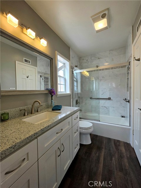 Fantastic Single Level Home with Double Attached Garage Curved Concrete Driveway with Plenty of Off Street Parking. 4 Bedrooms 1.75 Baths (Both Remodeled with Newer Decor Tile Vanity Cabinets Granite Counters Glass Shower Enclosures) Spacious Kitchen with Natural Wood Cabinets - Stainless Steel Sinks Built Stove and Hood - Stainless Steel Refrigerator and Dishwasher - Granite Counter - Beautifully Refinished Hardwood Flooring in Living Room and Bedrooms Brick Fireplace in Living Room Private Backyard with Concrete Patio Built in Bar B Que Hearth in Fireplace System Sectioned Laundry area off with private entry from Garage to Home. Beautiful Landscaped Front Yard. Newer HVAC and Heater System. Newer Canned Lighting in Bedrooms Living Room and Kitchen