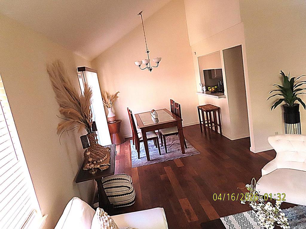 Great location! This charming corner unit,1,381 sq ft townhome offers 2 bedrooms, 2 bathrooms, a versatile loft, an oversized two-car garage, and an expansive storage area. Soaring open-beam ceilings create a bright, airy ambiance and enhance the homes spacious feel. The kitchen features granite countertops, perfect for both everyday living and entertaining.