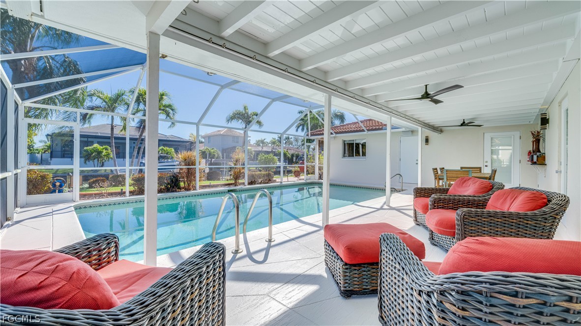 Welcome to your waterfront dream in the heart of Cape Coral. This Direct Gulf Access pool home is a true boaters playground—no bridges, no delays, just minutes to open water. Perfectly positioned on a prime direct-access canal in the highly sought-after Yacht Club area, this property delivers killer water views and a proven rental history, making it a smart income play or an exceptional full-time waterfront retreat. Inside, youll find a bright, open-concept layout with 3 bedrooms and 2.5 baths, designed for effortless living and easy entertaining. The updated kitchen features granite countertops, stainless steel appliances, and generous cabinetry, while the spa-inspired baths are finished with Madeli vanities and Hansgrohe fixtures—where style meets performance. Slide open the doors and step into your screened lanai, where Florida living truly comes alive. Lounge poolside, fire up the grill, or enjoy your morning coffee dockside as the sun rises over Southwest Florida. After a day on the water, rinse off in your private outdoor shower or unwind in the sauna, both accessible from the primary suite—your own built-in spa experience that sets this home apart from the pack. Meticulously maintained and move-in ready, this home shines as a high-performing vacation rental or a dialed-in personal waterfront escape. Just minutes to the Cape Coral Yacht Club, dining, shopping, and beaches—this is the lifestyle people move to Florida for. Bring your boat. Bring your toothbrush. Lets make this one yours.