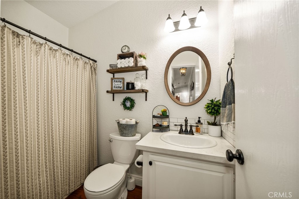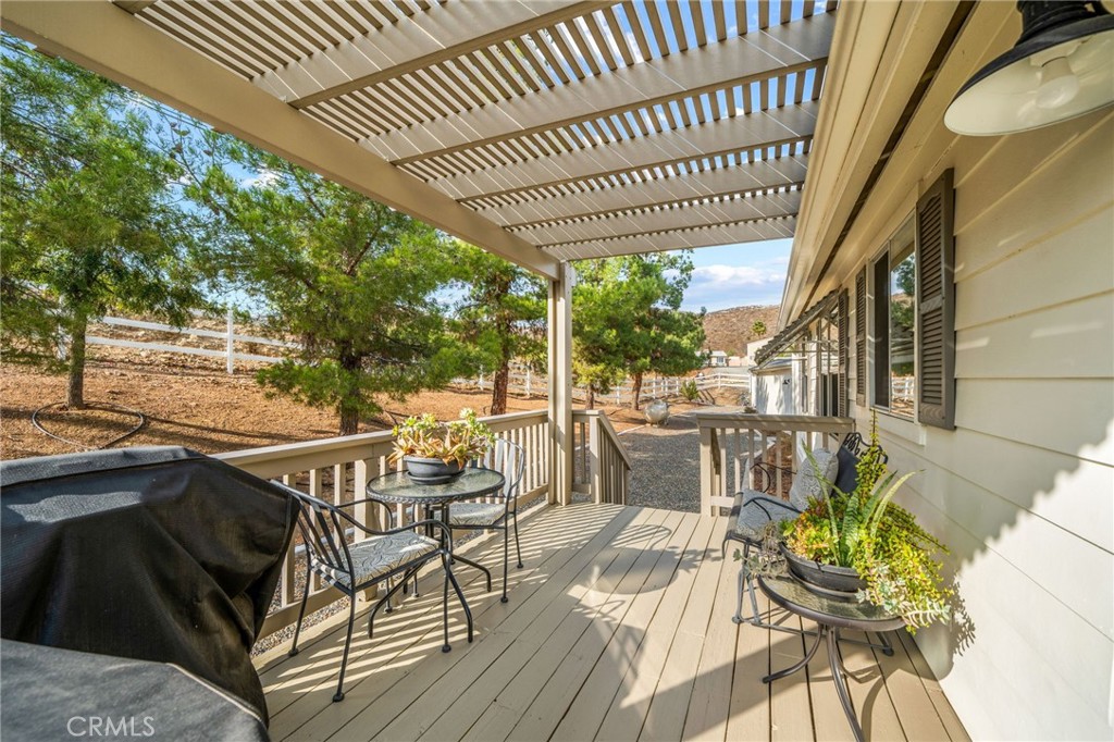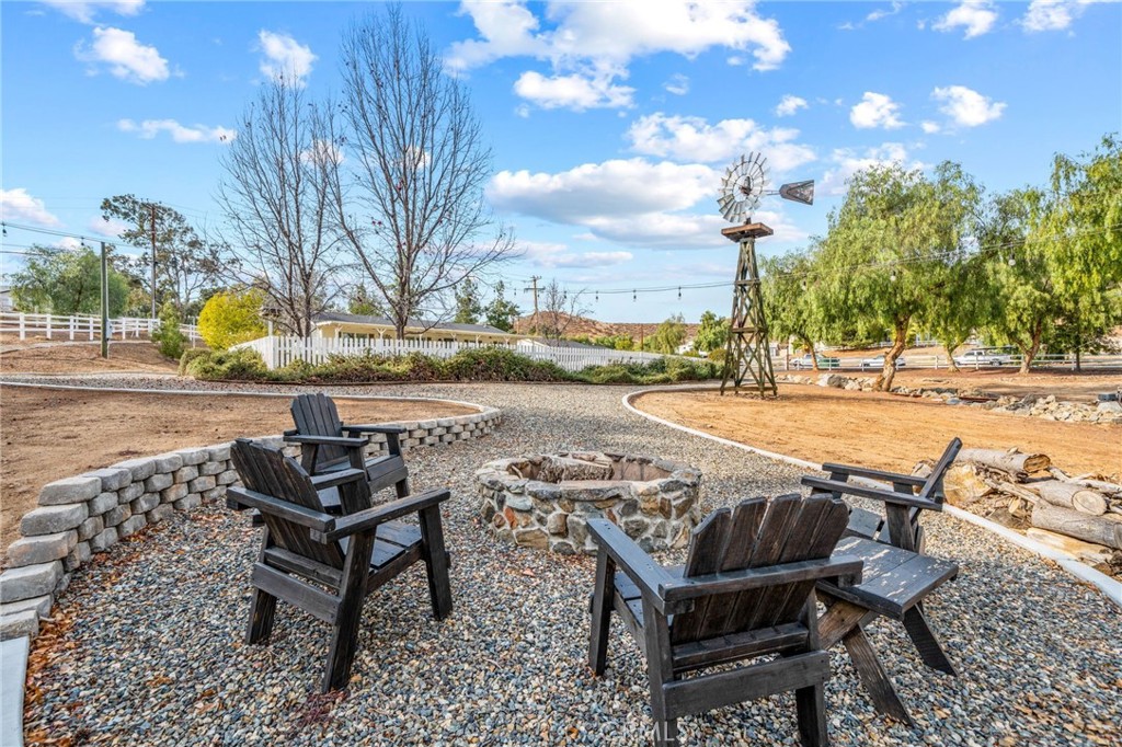 Pride of ownership shines in this meticulously maintained farmhouse style, permanent foundation home. The extra unique value in this opportunity with almost 2 acres and zoned R-A could possibly open up creative potential for buyers looking to expand with ADU or partial garage conversion, or adding structures etc. Custom upgrades include vaulted ceilings, real cherrywood flooring, recessed lighting, ceiling fans, shiplap and board-and-batten accents, elegant quartz kitchen countertops, and a costly 4-stage reverse osmosis filtration included. More upgrades include a 200-amp electrical panel, newer water heater, and an energy saving whole house fan. The walk-in pantry features motion lighting and extra outlets, and all appliances including refrigerator included in purchase. The utility sink in the separated laundry room off the kitchen adds convenience, and the washer and dryer are bonus gifts. Two of four bedrooms boast walk-in closets too! Step outside to an expansive front porch overlooking nearly 2 acres of beautifully cared-for land. The property also offers two oversized detached 2-car garages (one ultra-high for lifted vehicles) with storage, workspace, utility sinks, and separate sub panels, plus a soundproof insulated music room and office between them. All structures are complete with rain gutters for property care, security lighting on timers, and an electric gated front fence with indoor button-controlled access. Fencing includes 3-rail wood, picket, and cross-fenced areas with a secure dog run, and auto sprinklers and drip systems make gardening effortless. Outdoor highlights include a built-in rock fire pit, vintage windmill, fruit trees, and a charming walking bridge over the natural riverbed irrigation. This almost 2-acre property is zoned for horses and agriculture. Perfect country living perks, just minutes from stores and freeways. A true Oasis blending rural charm with city convenience.