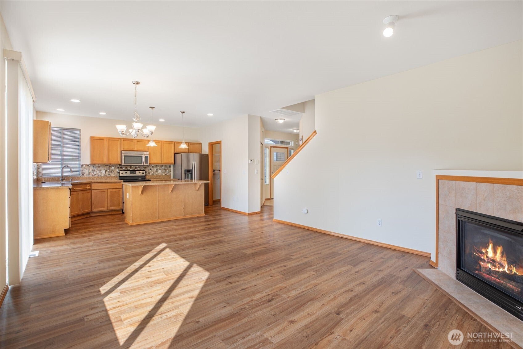 Incredible Stand alone 20 Townhome with 2031 sf. in a small self managed 8 unit complex with low 25/ month dues. This home has been freshly painted inside, gleaming engineered wood floors throughout. Main floor youll find a large entry, office, 1/2 bath, great room w/ living room, gas fireplace, Kitchen, beautiful cabinets, counters and a center island w/ room for stools, walk in pantry.