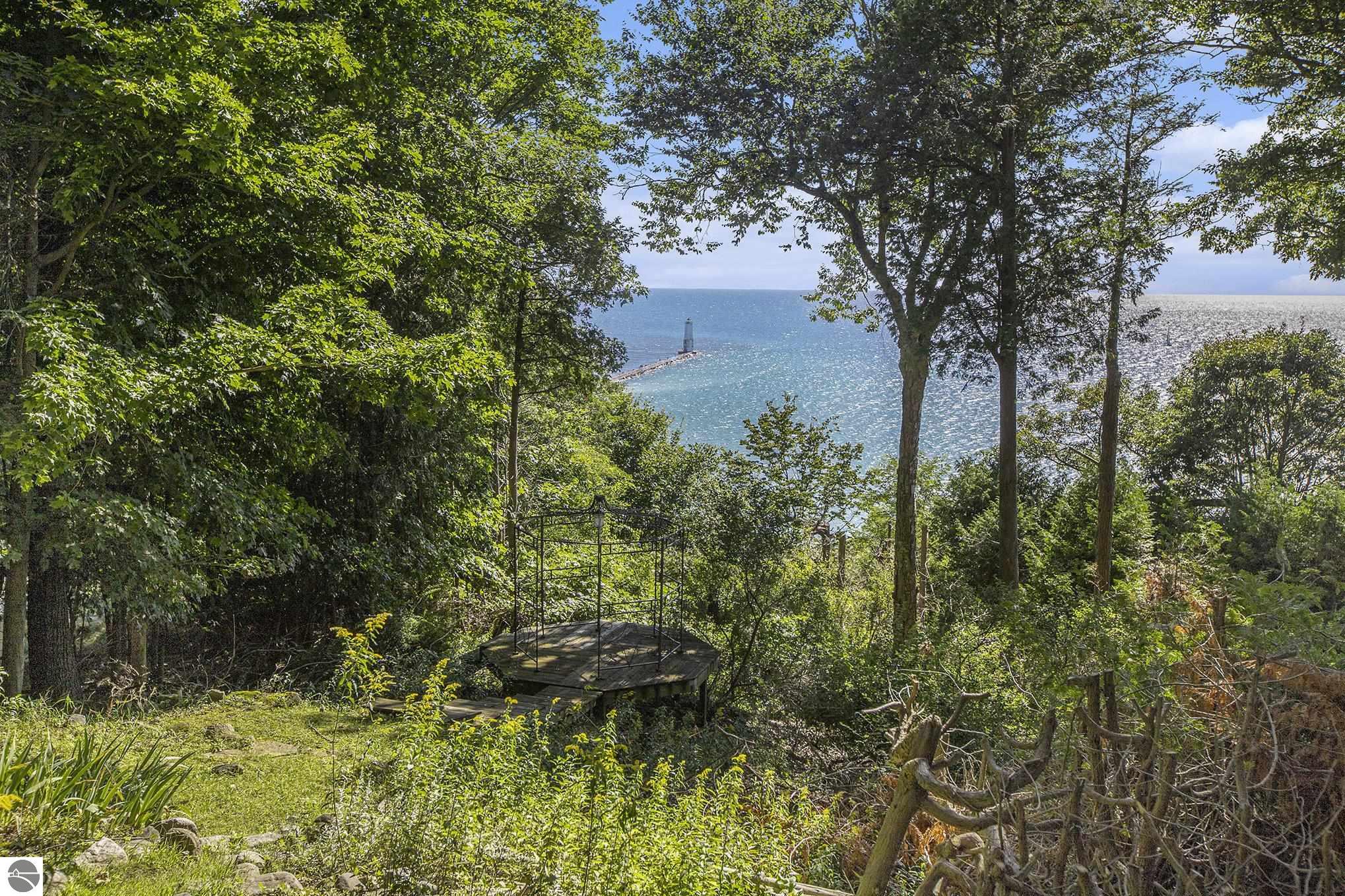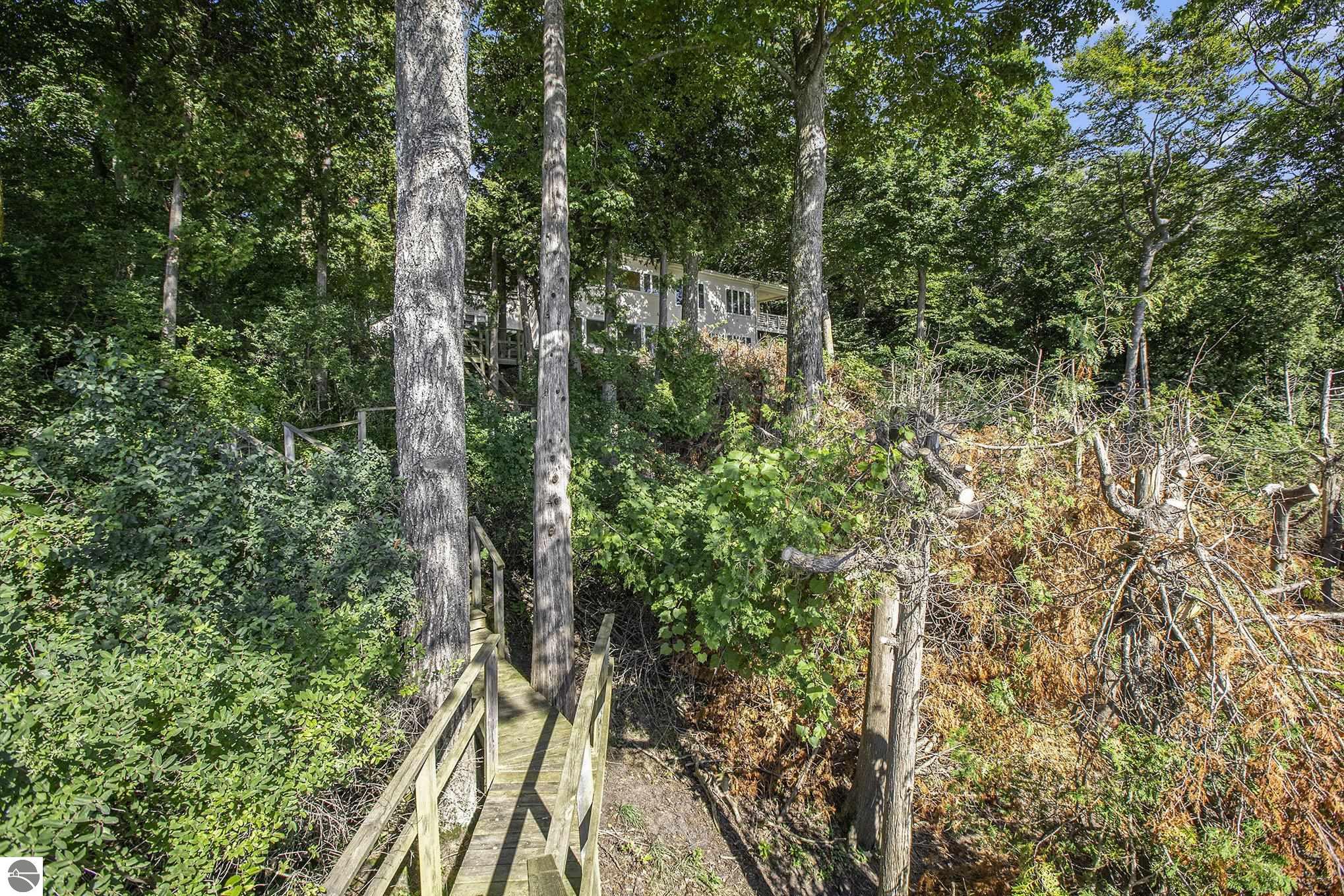 M-22 and turn west onto Park Avenue. Turn right onto Michigan Avenue and use the Bluffs entrance and driveway on the left. Follow real estate signs.