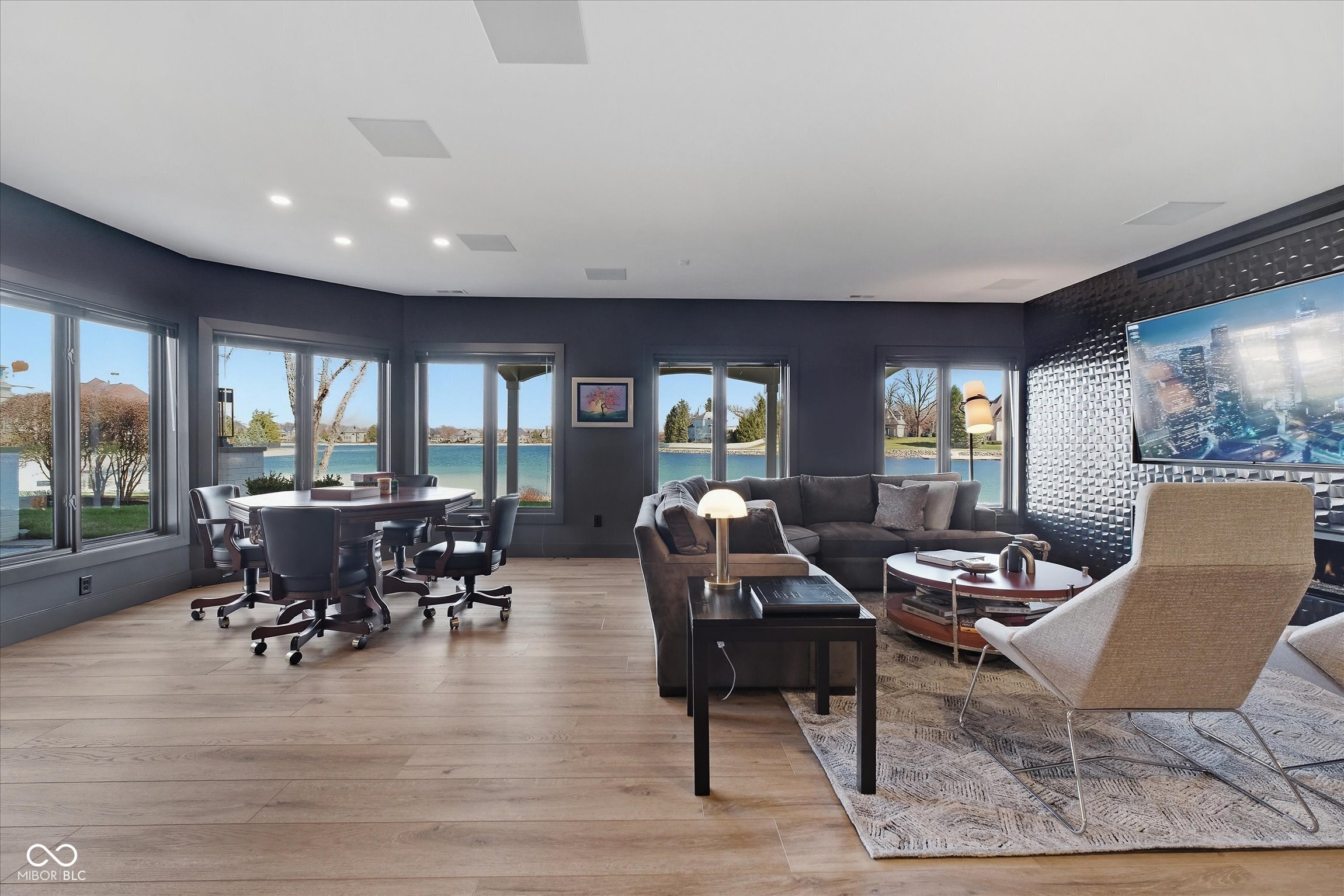 SHOWINGS BEGIN 11A.M. Friday Morning 3/20. Welcome to one of Lake Waterstone's most spectacular homes, offering panoramic lake views, exceptional entertaining spaces, and refined luxury. This residence features 5 bedrooms, 6 bathrooms, and a thoughtful open floor plan that showcases stunning water vistas and high-end finishes. A grand circular driveway and meticulous landscaping welcome you. The main-level primary suite is a serene retreat with lake views and a custom walk-in closet. At the heart of the home, the gourmet kitchen boasts European-designed cabinetry with drawers-within-drawers, premium Monogram appliances, a massive island, a custom stainless steel hood, and a large walk-in pantry with a built-in coffee bar. The walkout lower level is an entertainment masterpiece: 7.0 surround sound with seven zones, three synchronized TVs, a music room, a state-of-the-art bar, and a private workout room with an infrared sauna. Additional flex space is plumbed and ready for a kitchenette, gardening room, or pet wash station. Thoughtful upgrades and impeccable design are apparent throughout. The garage is immaculate with epoxy floors and Gladiator storage systems. Each waterfront home includes a deeded dock for effortless lake living. Waterstone residents enjoy outstanding community amenities: a scenic two-mile lake walking trail, three outdoor pools, tennis courts, playground, picnic areas, and a lakeside clubhouse. Every detail has been thoughtfully considered, and the sellers have truly left no stone unturned. High-end upgrades, stunning lake views, and impeccable design create a home that must be experienced in person to fully appreciate. This is more than a home-it is a lifestyle of luxury, tranquility, and unforgettable lakefront living. Sellers prefer possession until mid-June!