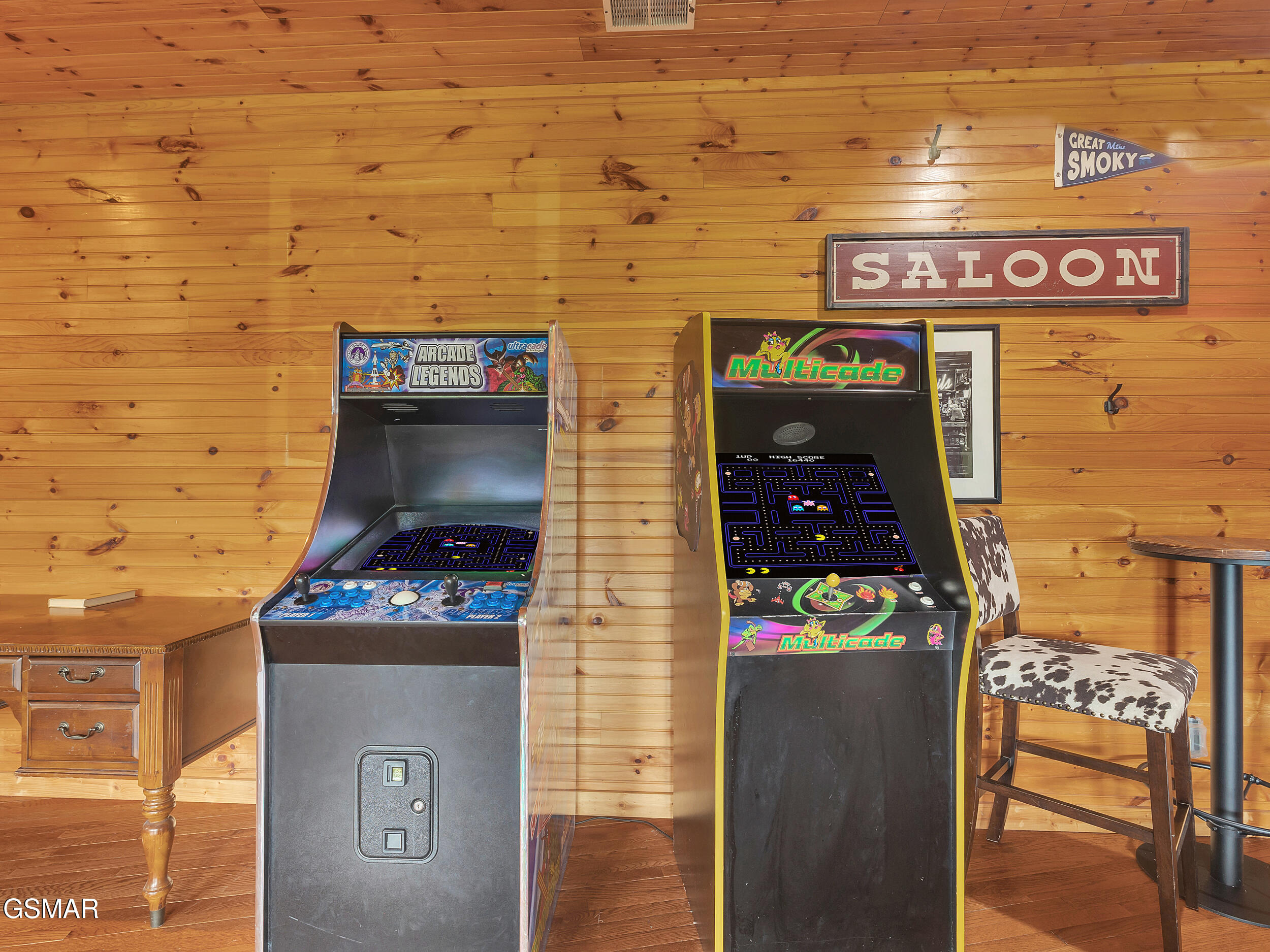 Luxury Live Auction! Bidding to start from 1,995,000.00!This extraordinary three-story cabin stands high above downtown Gatlinburg, offering breathtaking views of the city lights and the majestic Great Smoky Mountains National Park. From below, this landmark home is a showstopper; clearly visible from downtown and perfectly positioned to capture the energy of the city and the serenity of the mountains. With approximately 6,000 sq ft of finished living space, this 8-bedroom, 8 full-bath, 2 half-bath property is both a private retreat and an outstanding rental investment. Three expansive levels of decking (2,870 sq ft) include two hot tubs and generous seating areas, ideal for taking in the incredible views. Inside, the home features beautiful tongue-and-groove wood interiors on all levels, evoking the warm, rustic feel of a luxury mountain lodge. The main level's impressive great room features soaring ceilings and a floor-to-ceiling wood-burning stone fireplace, surrounded by windows that flood the space with natural light. The gourmet kitchen includes granite countertops, top-tier appliances, a large island, separate ice maker, and a massive dining table perfect for large gatherings. Two ensuite bedrooms are located on the main floor, each with electric fireplaces and private deck access; one is fully handicapped accessible. Every bedroom in the home offers its own entrance to the decks for a private outdoor retreat. Upstairs, the vaulted ceilings continue with three more ensuite bedrooms, including a spacious master suite that overlooks the great room below and features an oversized luxury bath. The lower level includes three additional ensuite bedrooms and a large recreation area complete with bar, refrigerator, pool table, games, laundry area, and an extra half bath. Best of all... No HOA! Property includes private parking, public water and sewer, high-speed internet, and comes fully furnished. Currently operating as a successful overnight rental, this property is just behind Ripley's Aquarium and only a short walk or drive from everything downtown Gatlinburg has to offer. Previously known as ''Gatlinburg's Amazing Grace,'' now operating as ''Hickory Ridge,'' this is a standout investment, private residence, or luxury vacation home.