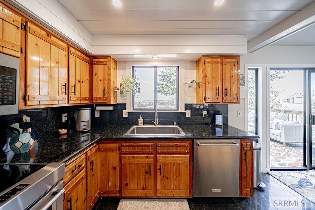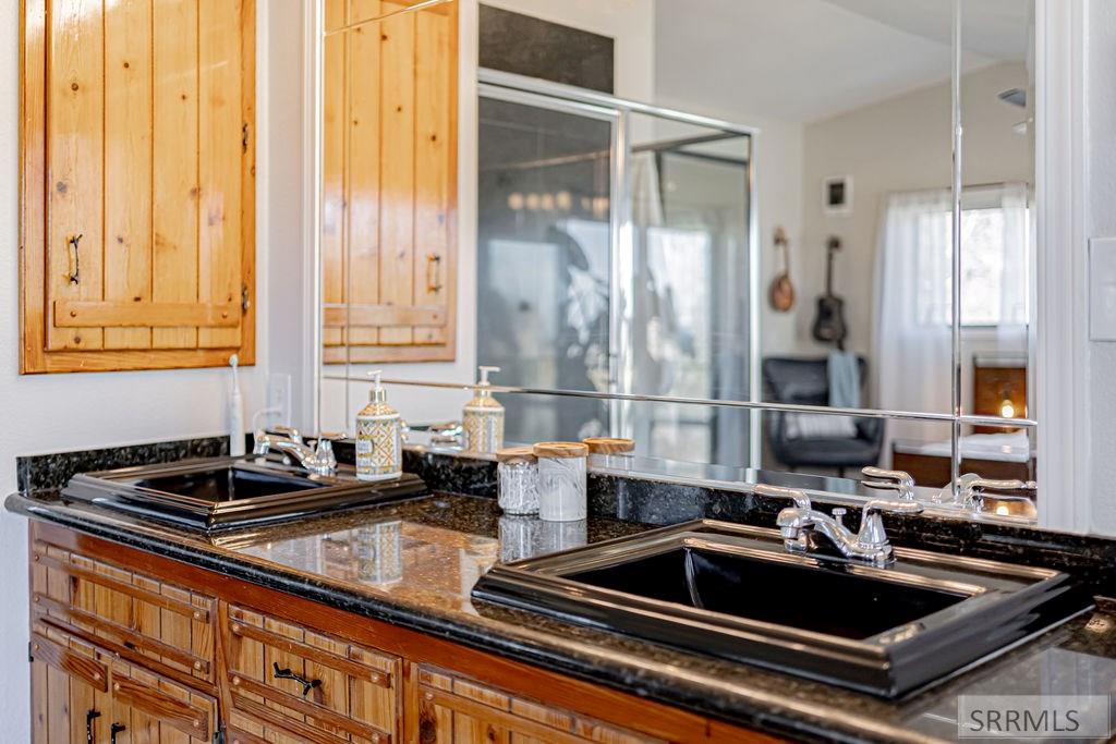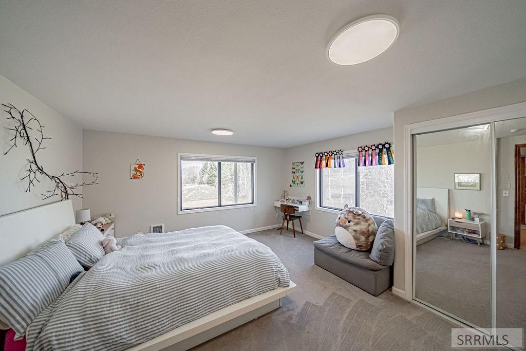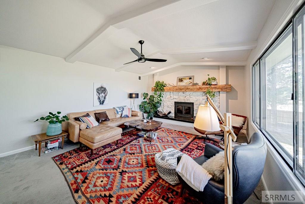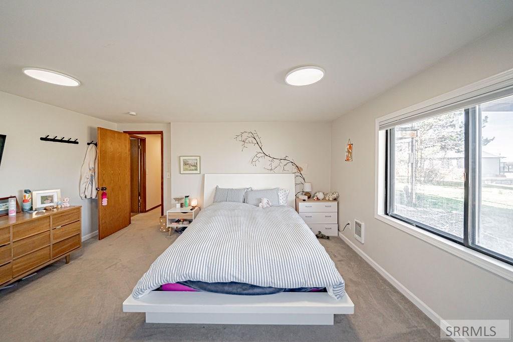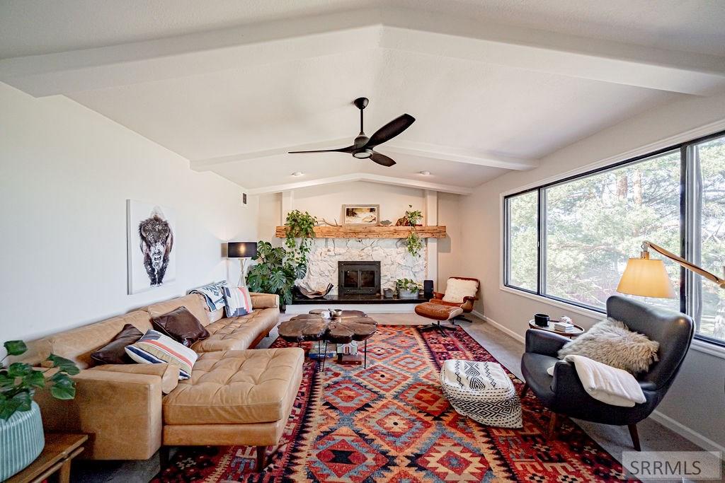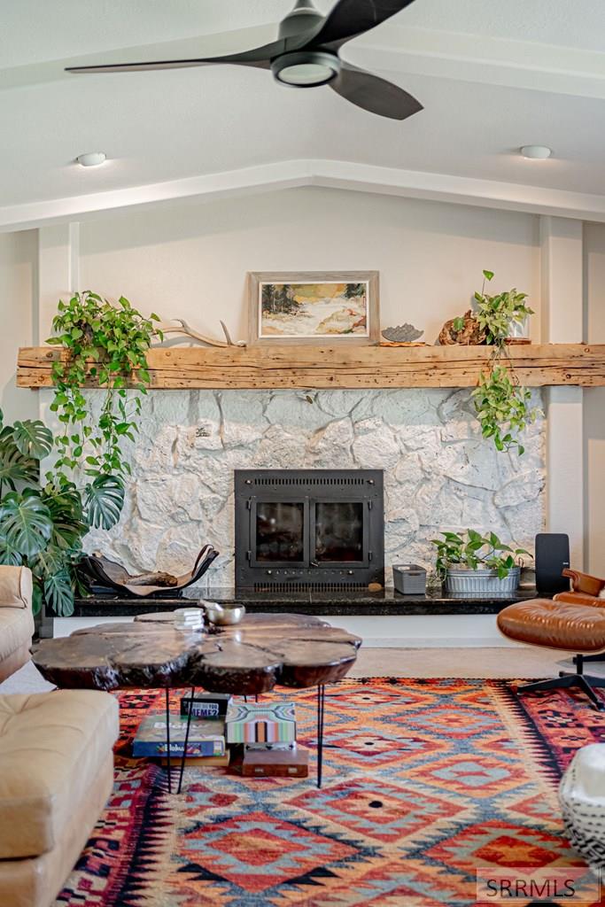 Wake up every morning wrapped in light, comfort, and wide-open views. This exceptional home blends warmth, space, and energy efficiency in a way that simply feels good to live in. The primary suite is a true retreat complete with a jetted soaking tub, a massive walk-in closet, and private deck access where you can step outside and take in the expansive. Its the perfect place to start your day or unwind under the stars. Entertaining is effortless with a spacious dining room framed by floor-to-ceiling windows, flooding the home with natural light and scenery in every season. The large living room is the heart of the home, featuring soaring windows, a wood-burning fireplace with custom rustic mantel, and an open staircase that draws you into the walk-out basement below. Downstairs, youll find two generous bedrooms, a versatile den or gaming space accented with barn doors, and a second fireplace, ideal for cozy evenings. Step outside to the patio and firepit, where uninterrupted views of the Snake River Plain create a peaceful backdrop for gatherings or quiet moments. Adding to the appeal, the home includes a fully installed solar system that offsets the majority of electricity usage and control energy costs long term.