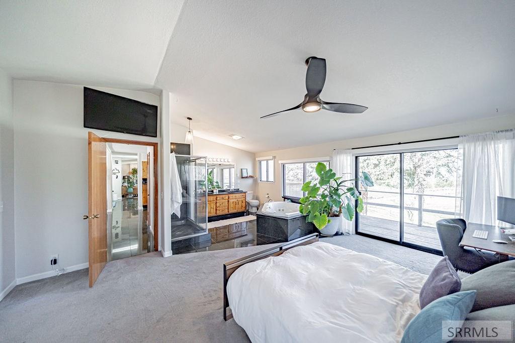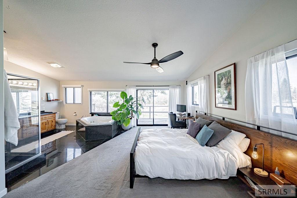 Wake up every morning wrapped in light, comfort, and wide-open views. This exceptional home blends warmth, space, and energy efficiency in a way that simply feels good to live in. The primary suite is a true retreat complete with a jetted soaking tub, a massive walk-in closet, and private deck access where you can step outside and take in the expansive.