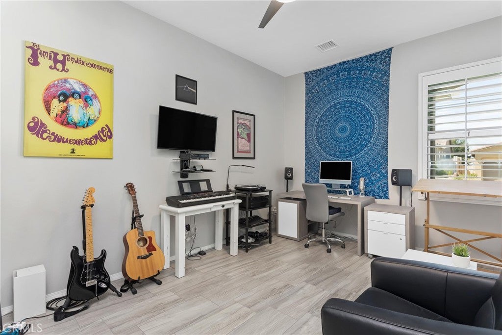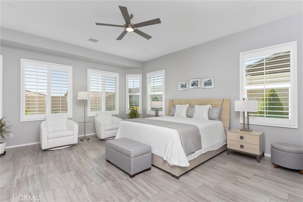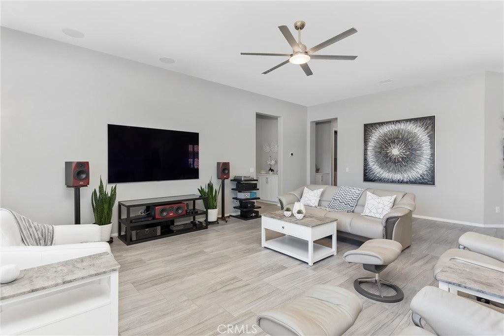 Welcome to this beautifully appointed Mosaic floor plan in the highly sought-after 55 community of Four Seasons Beaumont. Ideally positioned on an elevated lot, this home captures stunning panoramic views of Mt. San Gorgonio, best enjoyed from the inviting front patio. Inside, you’ll find a thoughtfully designed and spacious layout featuring a large primary suite with a charming bay window, along with a private ensuite guest bedroom—perfect for visitors. At the heart of the home is a gourmet kitchen equipped with quartz countertops, stainless steel appliances, a double electric oven, shaker-style white cabinetry, pull-out shelving, a walk-in pantry, and a stylish new chandelier. The open-concept family room is enhanced by a built-in 7-speaker surround sound system, creating an ideal space for relaxing or entertaining. Throughout the home, elegant 12” x 24” designer porcelain tile flooring and plantation shutters add a touch of sophistication and continuity. The secondary bathroom has been tastefully remodeled and features a walk-in shower with a quartz surround, a high-quality glass enclosure, and a new quartz vanity. Additional highlights include an indoor laundry room with a utility sink and a spacious walk-in storage room. Step outside to your private backyard retreat, complete with a custom-built natural gas barbecue, new landscaping, and an extended paver patio—perfect for outdoor gatherings. Complementing the two car garage this home boasts an additional golf cart garage-perfect for an lifestyle. Residents of Four Seasons Beaumont enjoy resort-style living with exceptional amenities, including a grand lodge, pool complex with cabanas and spa, ballroom, bistro, private movie theater, billiards room, full-service salon, and a wide array of recreational options such as tennis, pickleball, bocce ball, a putting green, fitness centers, walking trails, indoor pool, and a dog park. This is more than a home—it’s a lifestyle.