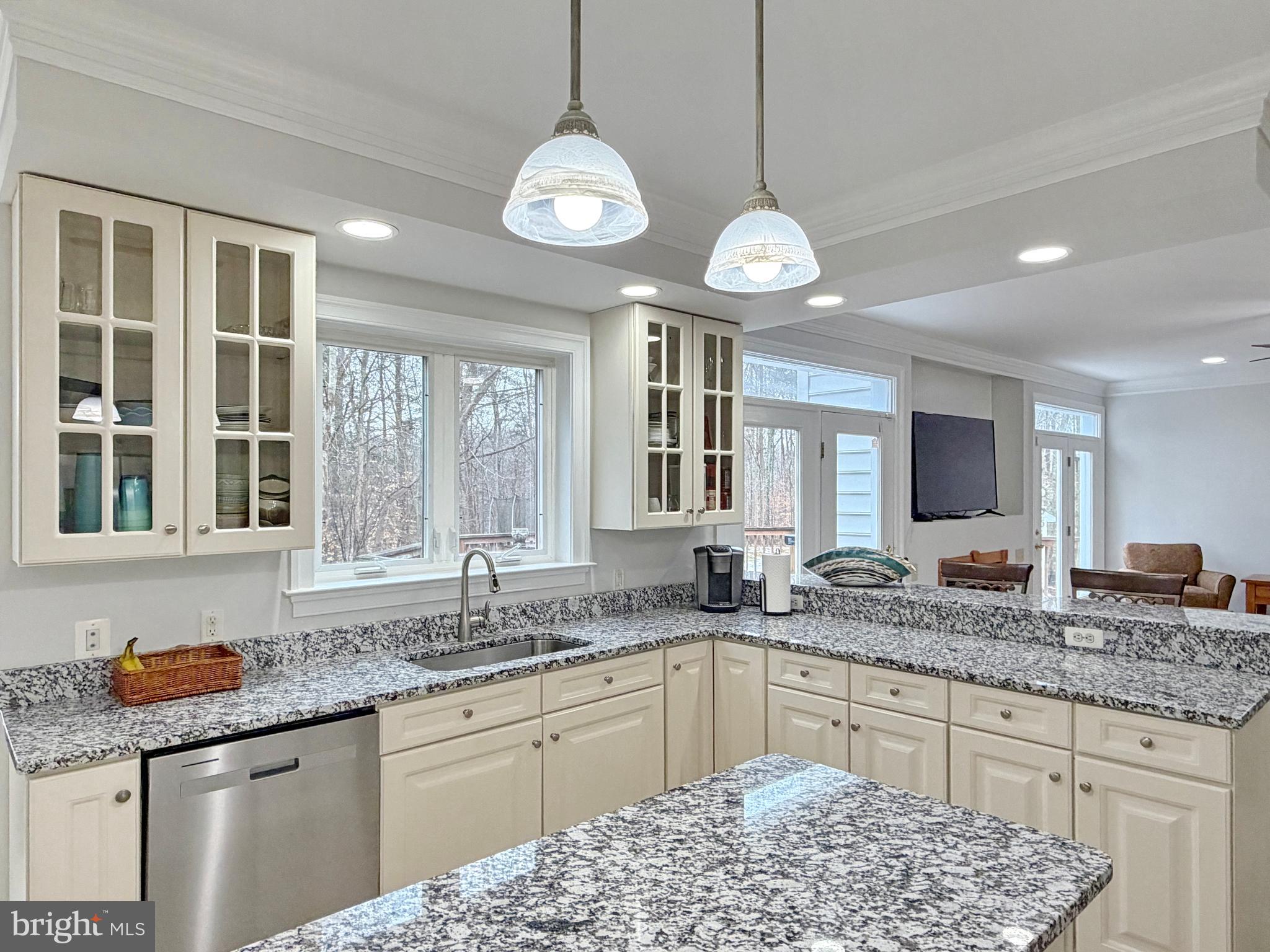 This stunning, one of kind, custom home has everything a homeowner could desire with all the city amenities and rests on 1.34 acres. Located in the desired Valley View School District and Boasting 5 bedrooms, 4 that have their own ensuite, 4.5 bathrooms. As you enter them home you are greeted with tall ceilings an abundance of space, large windows with stunning views and natural light. The main level has the large master suite that boasts double French doors leading on to the composite board deck that over-looks a natural creek and beautiful wooded lot. The master suite also has a huge tile shower, jet tub, his/her vanities, and a walk-in closet. The split and open floor plan has another suite with walk in closet on the other side of the home. A half bath perfect for guests, formal dining area, office space, sunroom, pantry, large laundry room with storage and cabinetry. A Beautiful stone fireplace with mantle, large kitchen island with chefs sink and a breakfast bar. Did I mention this home has it all≠ Downstairs are 3 large bedrooms, 2 with ensuites and walk in closets. One bedroom also features a safe room. There is a large storage closet, full kitchen, full living area, and entrance into the 3rd garage perfect for a home gym, office, or added storage space. Step outside and enjoy the views. This home is truly a rarity. Desired location, city amenities, privacy, seclusion, upgrades, and stunning views.