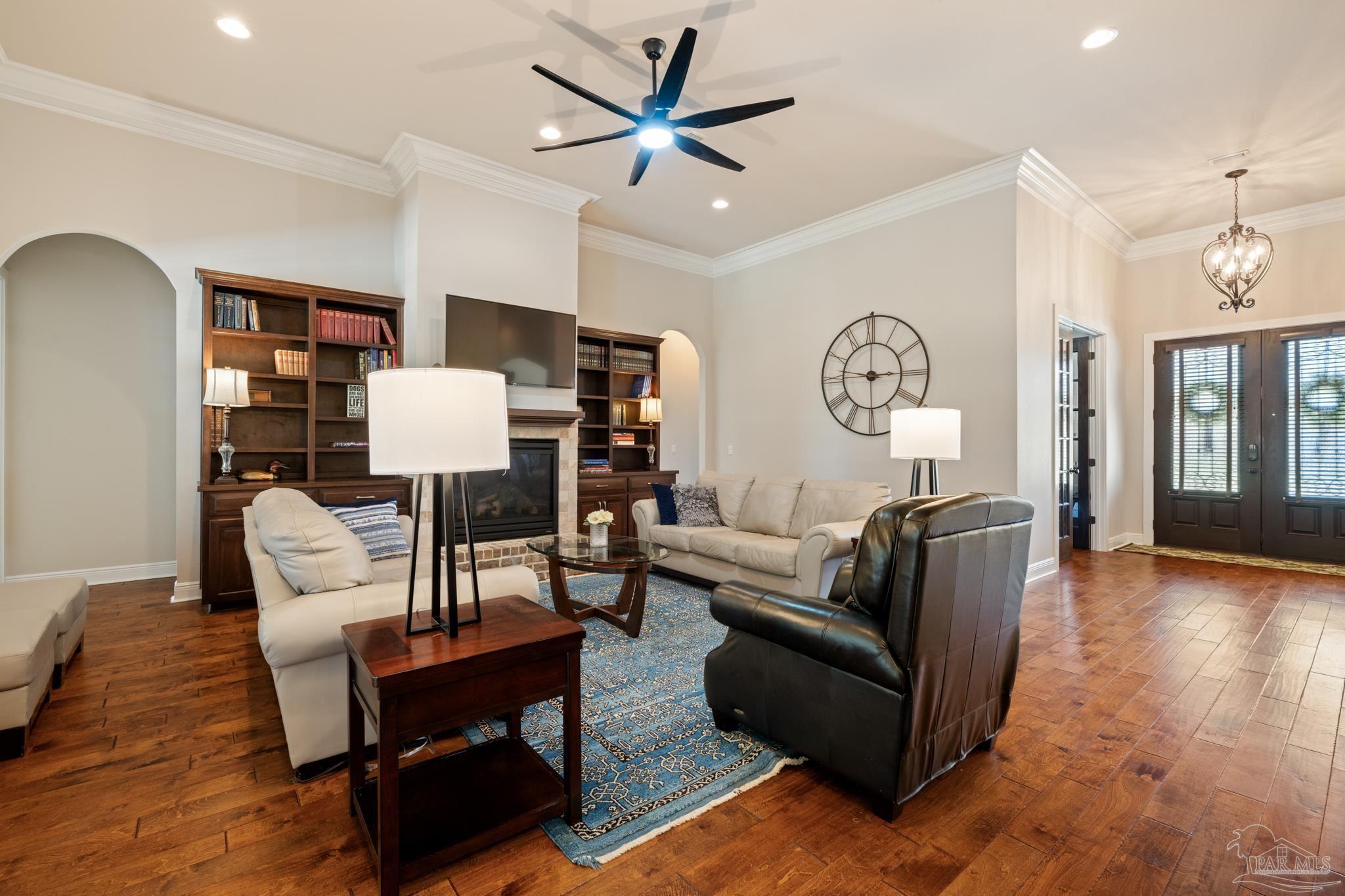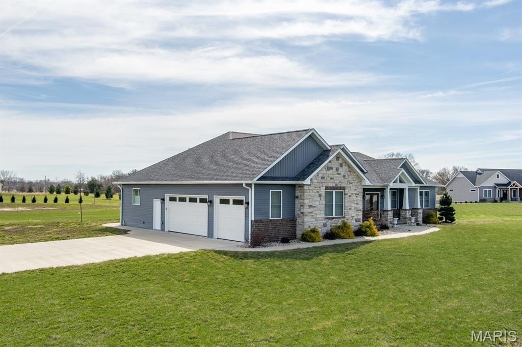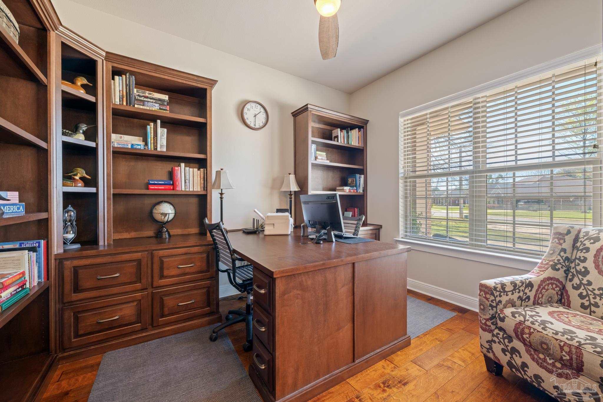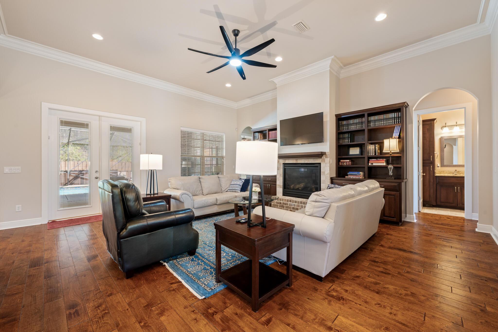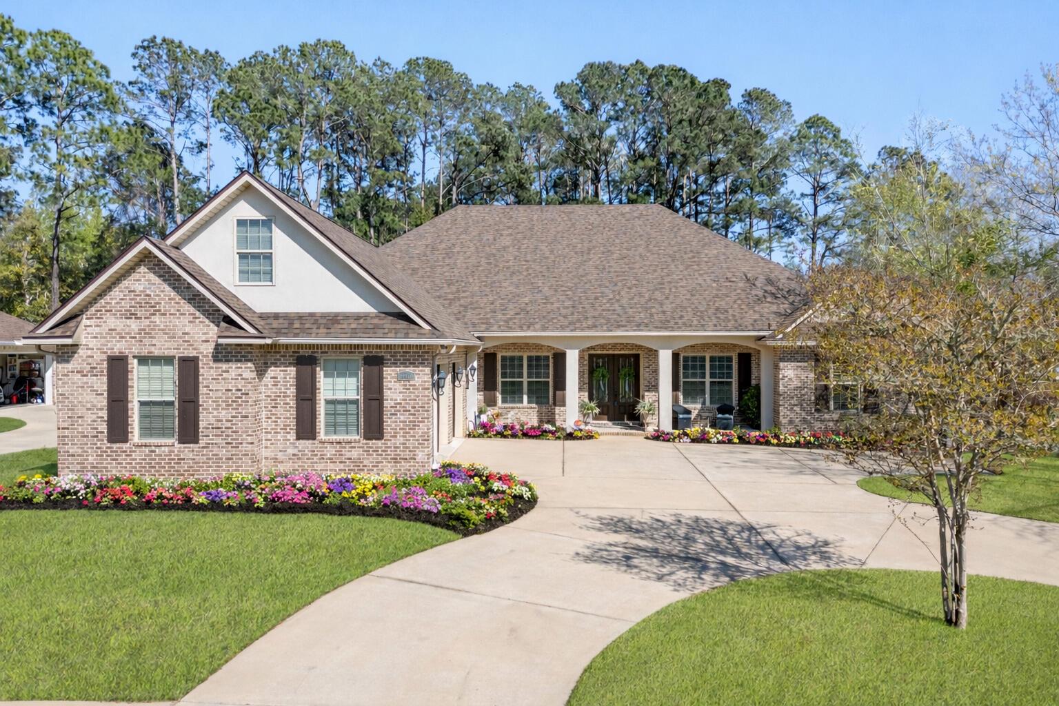 As you enter this thoughtfully designed custom all brick home built in 2014 by Robert Davis, youre welcomed by a dedicated office featuring custom built-ins and a dual workspace, perfect for working from home, followed by a formal dining room ideal for hosting and entertaining. Continuing into the heart of the home, the living room offers a warm and inviting atmosphere with soaring ceilings, custom built-in bookshelves flanking a cozy gas fireplace for added comfort. The kitchen is beautifully appointed with granite countertops, stainless steel appliances, a breakfast bar, and an eat-in dining area that overlooks the pool, creating the perfect space for everyday living and entertaining. Moving through the home, youll find a well-designed layout that includes a spacious primary suite with two walk-in closets--one featuring a built-in vanity, the bathroom with a seperate tile shower and garden tub for a true relaxing retreat. Additional bedrooms including a private wing with an en-suite bathroom that offers handicap accessibility, making it ideal for multi-generational living or guests. Upstairs, a versatile bonus room with its own HVAC system and private entrance from the garage provides endless possibilities as a teen suite, game room, or guest retreat. Step outside to your private backyard oasis, where a covered saltwater in-ground pool and spa create the perfect setting for relaxing or entertaining year-round. Additional highlights include a 2023 whole-house generator, a large pantry, a separate laundry room with cabinetry and sink, and a 2-car garage with extra storage space and a tiled dog bath. 2025 roof with paid off solar panels! With its thoughtful design, flexible living spaces, and exceptional upgrades, this home is truly a must-see.