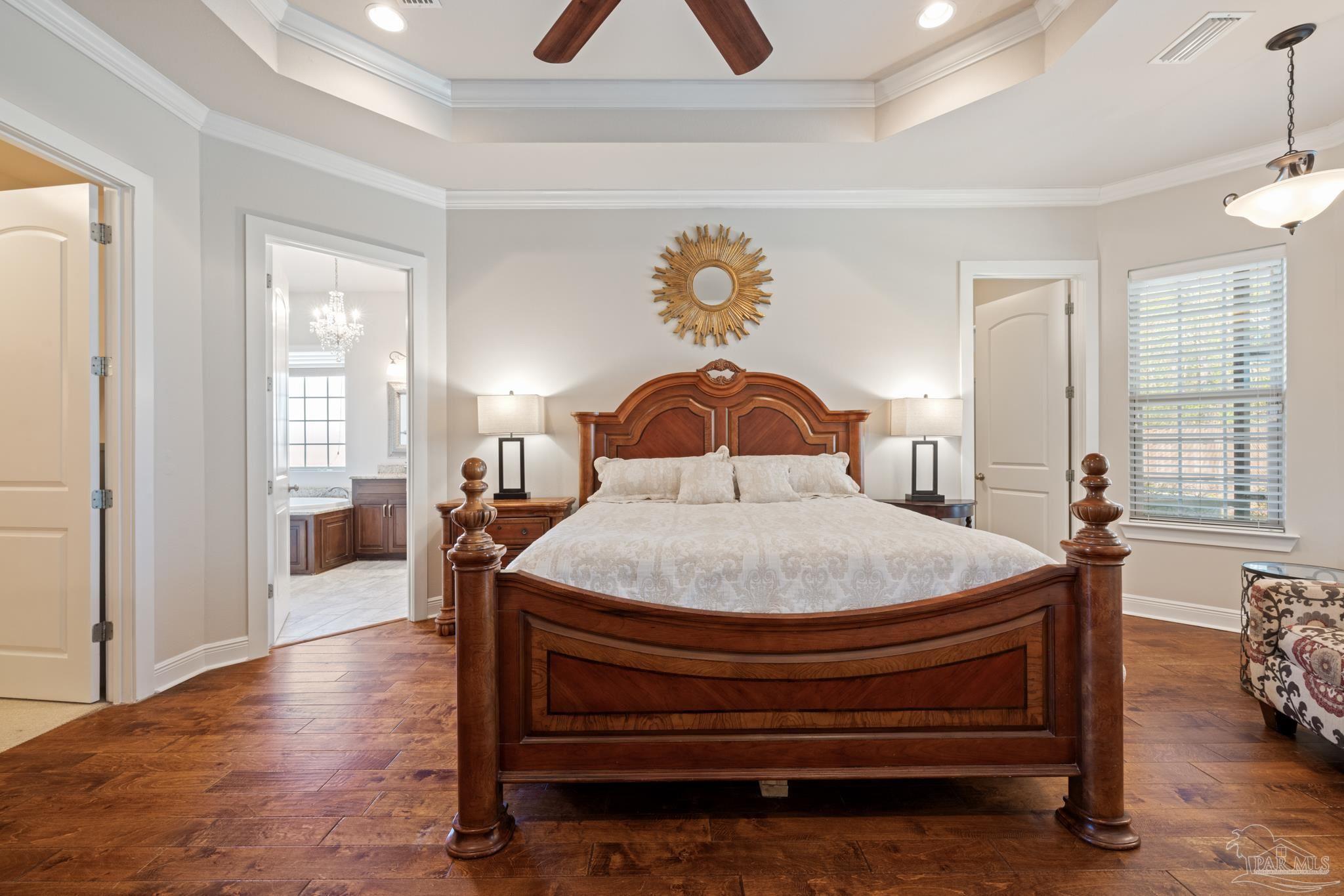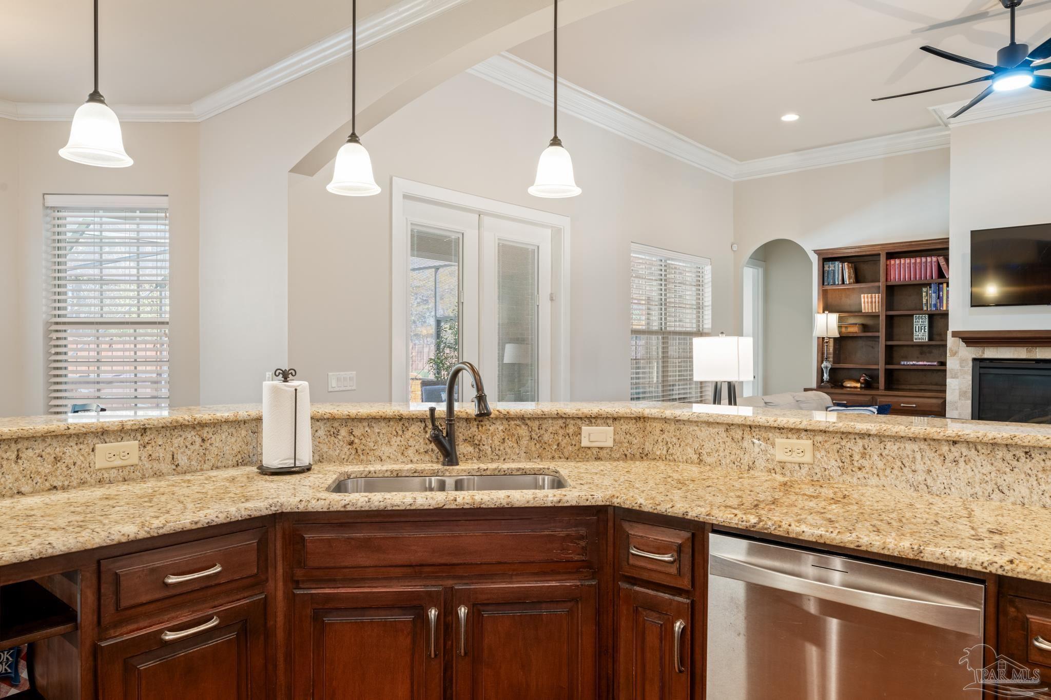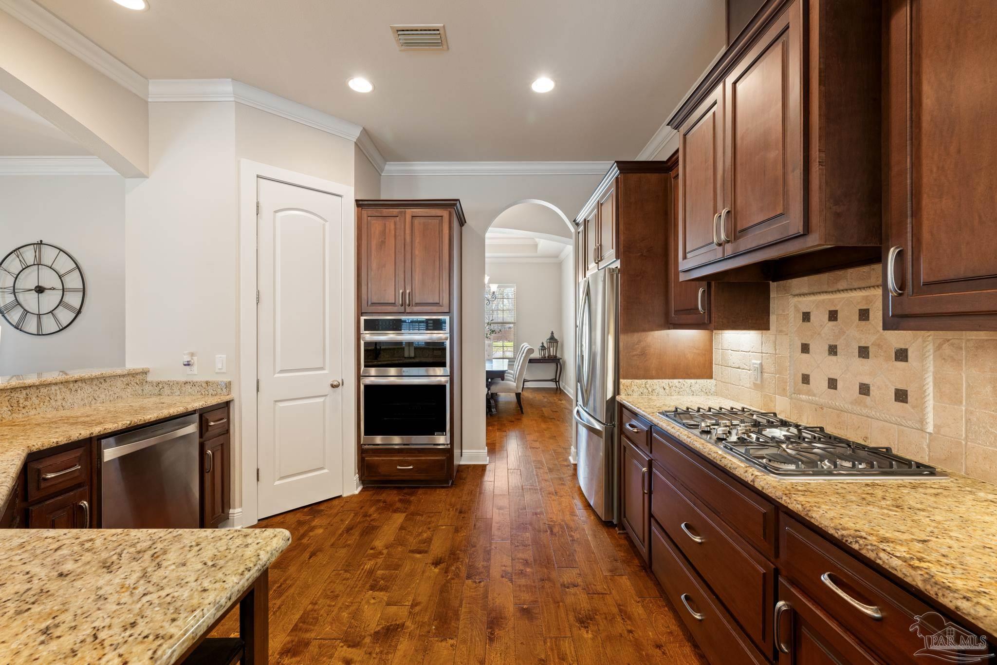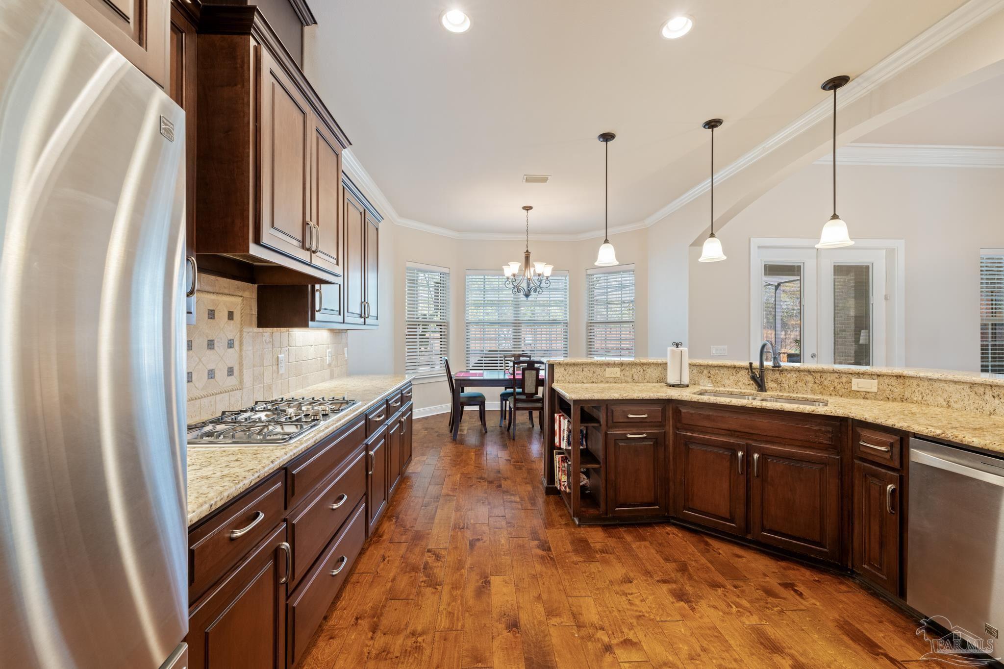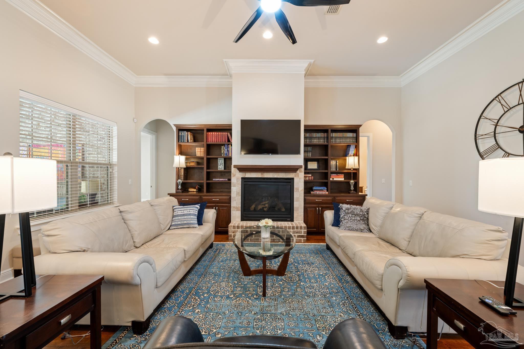 As you enter this thoughtfully designed custom all brick home built in 2014 by Robert Davis, youre welcomed by a dedicated office featuring custom built-ins and a dual workspace, perfect for working from home, followed by a formal dining room ideal for hosting and entertaining. Continuing into the heart of the home, the living room offers a warm and inviting atmosphere with soaring ceilings, custom built-in bookshelves flanking a cozy gas fireplace for added comfort. The kitchen is beautifully appointed with granite countertops, stainless steel appliances, a breakfast bar, and an eat-in dining area that overlooks the pool, creating the perfect space for everyday living and entertaining. Moving through the home, youll find a well-designed layout that includes a spacious primary suite with two walk-in closets--one featuring a built-in vanity, the bathroom with a seperate tile shower and garden tub for a true relaxing retreat. Additional bedrooms including a private wing with an en-suite bathroom that offers handicap accessibility, making it ideal for multi-generational living or guests. Upstairs, a versatile bonus room with its own HVAC system and private entrance from the garage provides endless possibilities as a teen suite, game room, or guest retreat. Step outside to your private backyard oasis, where a covered saltwater in-ground pool and spa create the perfect setting for relaxing or entertaining year-round. Additional highlights include a 2023 whole-house generator, a large pantry, a separate laundry room with cabinetry and sink, and a 2-car garage with extra storage space and a tiled dog bath. 2025 roof with paid off solar panels! With its thoughtful design, flexible living spaces, and exceptional upgrades, this home is truly a must-see.