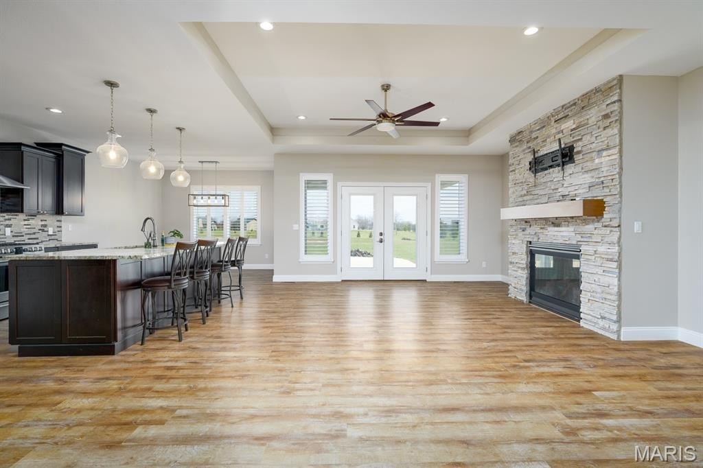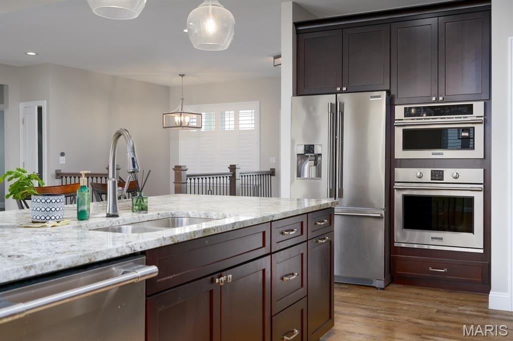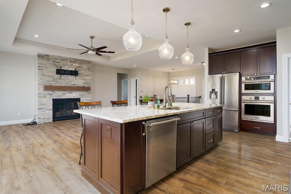 Welcome to this beautifully remodeled home where modern design meets everyday comfort. The stunning kitchen is a true showpiece, featuring a large center island, sleek white cabinetry, premium Cafe appliances, elegant quartz countertops complemented by a seamless quartz backsplash. Striking light fixtures add a sophisticated touch throughout. The inviting family room is anchored by a contemporary electric fireplace set against a textured accent wall, creating a warm yet stylish focalpoint. Downstairs, the finished lower level offers a versatile bo complete with a second fireplace & convenient counter nook-perfect for entertaining, a media space or home office & half bath. Additional upgrades include new windows, new doors, new water heater, all new flooring & standby generator providing both efficiency & peace of mind. All of this is set in a fabulous neighborhood close to schools & shopping. This move-in-ready home truly has it all. Listing agent related to seller.