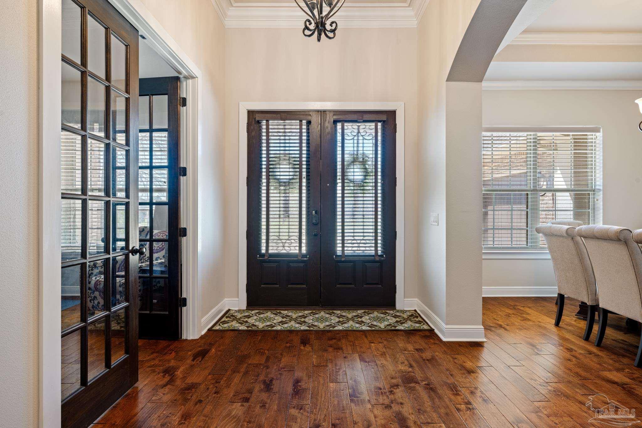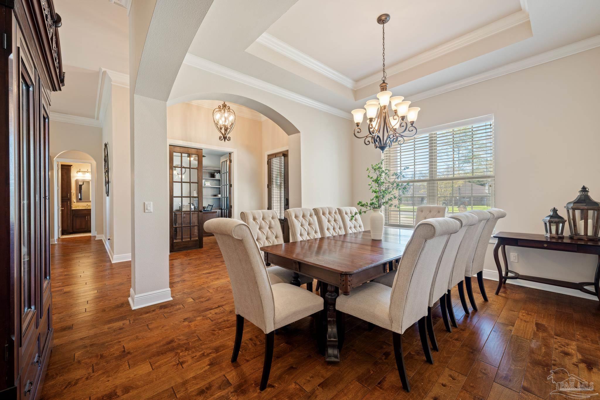 As you enter this thoughtfully designed custom all brick home built in 2014 by Robert Davis, youre welcomed by a dedicated office featuring custom built-ins and a dual workspace, perfect for working from home, followed by a formal dining room ideal for hosting and entertaining.