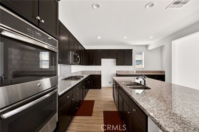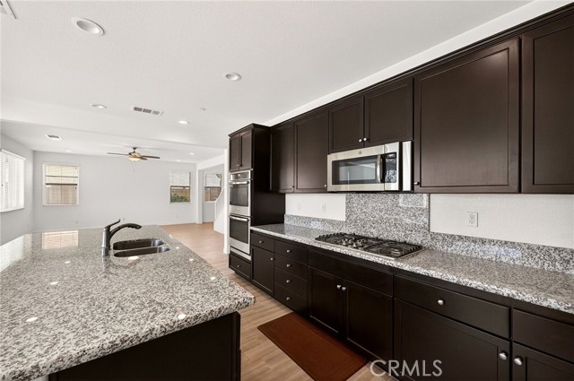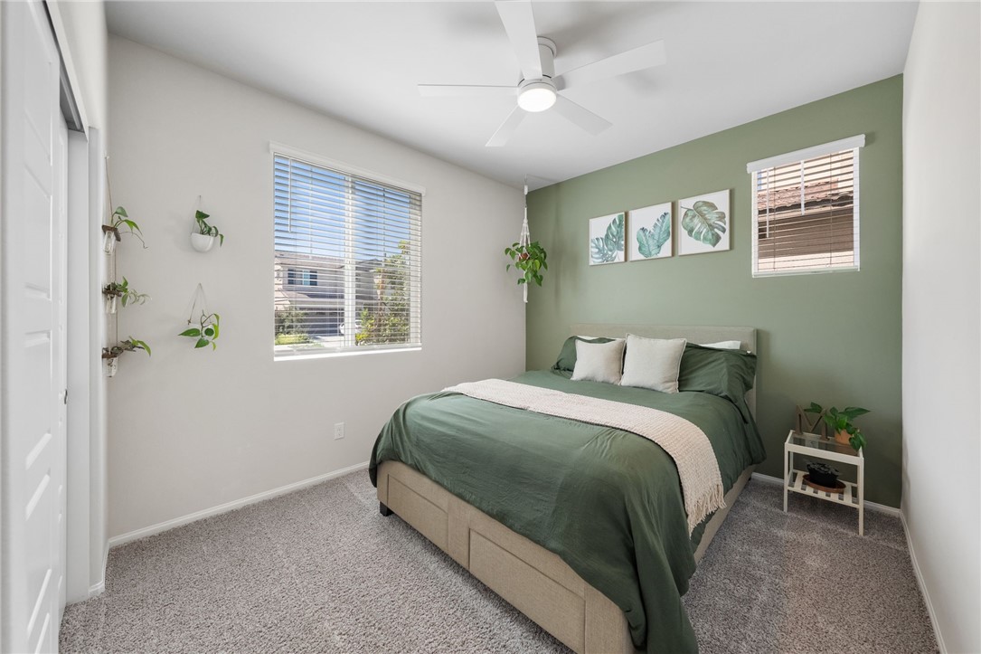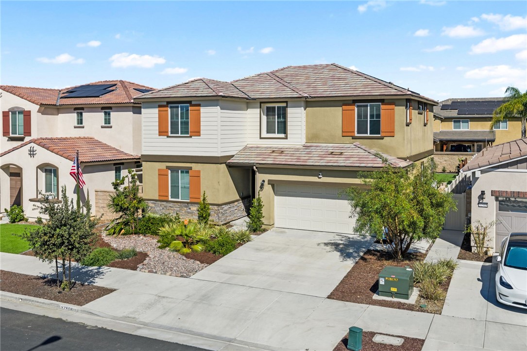 Welcome to the highly sought-after Sumac Ridge community in Menifee! This beautifully designed single-family residence offers 4 bedrooms, 3 bathrooms, and a spacious loft, providing the perfect blend of comfort and functionality. Ideal for multi-generational living or guests, the home features a full bedroom and bathroom conveniently located on the main level.Step into a bright and open floor plan highlighted by a stunning kitchen that seamlessly flows into the living and dining areas—perfect for entertaining and everyday living. Upstairs, the versatile loft offers additional space for a home office, media room, or play area.Enjoy low-maintenance outdoor living with a fully turfed backyard, ideal for relaxing or hosting gatherings year-round. The home also includes owned solar, helping you save on energy costs while living sustainably.Located in a desirable neighborhood close to parks, schools, and amenities, this home is a must-see!