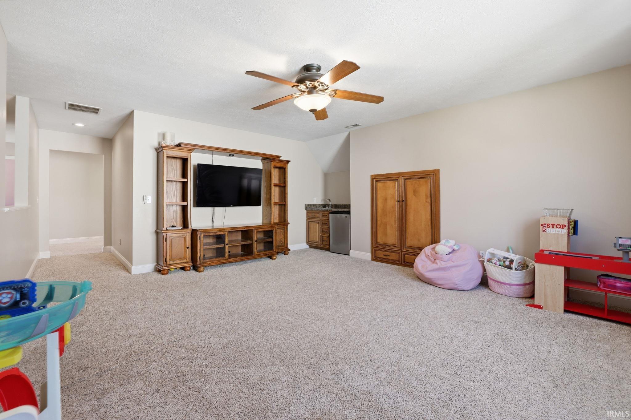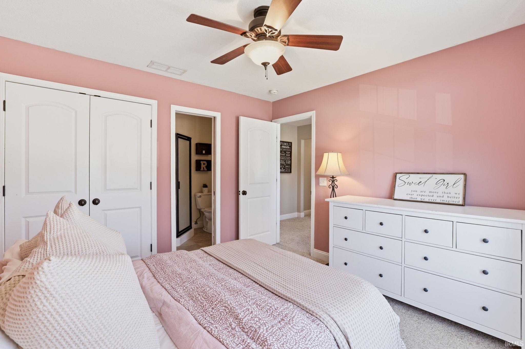Welcome to this spacious and well-designed home in the Sutton Place neighborhood on Bloomington's southeast side. With over 3,200 finished square feet, this home offers flexibility and room to grow. The home features 4 bedrooms and 3.5 bathrooms. The primary suite is found on the main level and features an updated, large, low-threshold shower in the en suite bathroom. A second en suite bedroom can be found upstairs, providing options for a variety of living arrangements. The updated kitchen showcases beautiful finishes and stainless steel appliances, offering both style and functionality for everyday living. Upstairs, additional bonus space includes a media room, bonus room, and dedicated storage which is ideal for work, hobbies, or everyday organization. Step outside to enjoy a fully fenced backyard with an above-ground pool with deck surround, along with a covered porch, creating multiple inviting spaces for relaxing or entertaining. Conveniently located near shopping, dining, schools, and everyday amenities, this home offers a thoughtful combination of space, layout, and location.