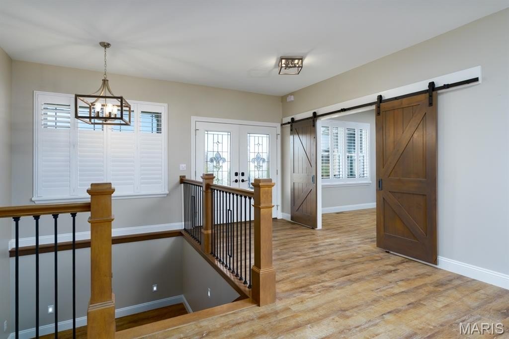 This custom-built home is situated on 20.26 acres, featuring open and wooded land. You can enjoy views of turkeys, deer, and various bird species from the back porch. The house includes a primary on the first floor and two bedrooms upstairs, each with an adjacent room that can serve as a study, storage, or additional bedroom.