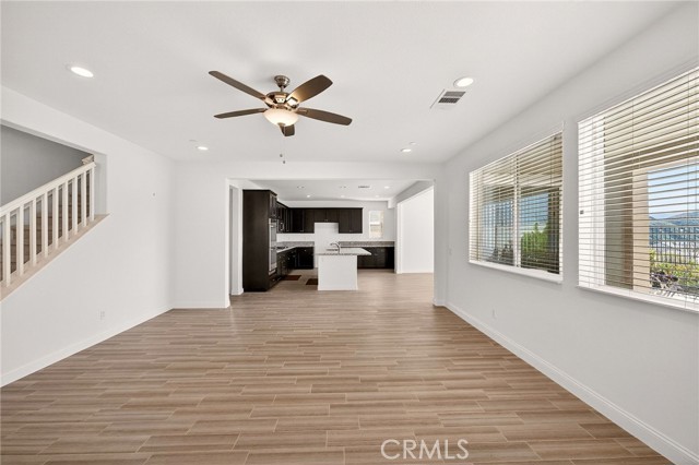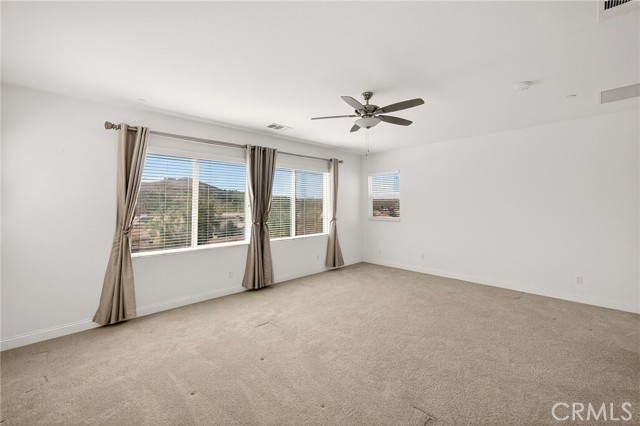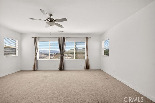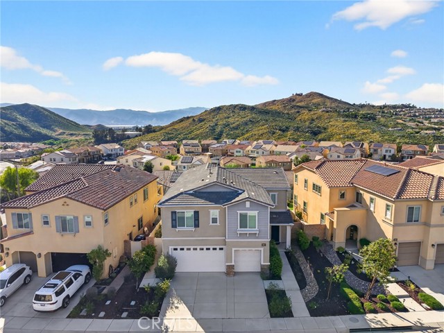 Nestled away within the exclusive, gated Canyon Hills Westridge community, this exceptional residence feels like a private slice of paradise. Perched on a premium lot, it captures breathtaking, panoramic views including Lake Elsinore and Canyon Lake—a daily backdrop that turns every sunrise and sunset into a serene escape. Impeccably maintained and styled like a model home, this 4-bedroom, 3-bath retreat welcomes you with an airy upstairs loft, perfect for relaxation or inspiration. The kitchen is a true culinary sanctuary, adorned with rich espresso cabinetry, gleaming granite countertops, and high-end GE Appliances—including a double oven and an expansive island designed for gathering, entertaining, and creating unforgettable moments. Host elegant dinners in the formal dining room, complete with a butler's pantry and abundant storage, or unwind in your luxurious primary suite—a tranquil haven where spa-like comfort meets everyday living. Soak in the tub as if on vacation, enjoy the separate shower, dual vanities, and a spacious walk-in closet designed for indulgence. Step outside to a beautifully designed, low-maintenance backyard featuring a covered patio—perfect for year-round enjoyment as you take in sweeping views. Inside, thoughtful touches like high ceilings, custom lighting and ceiling fans. Beyond your doorstep, the community invites you to live the resort lifestyle, with amenities including a scenic 2-acre park, a dedicated dog park, sparkling pool and spa, outdoor showers, BBQ areas, fire pits, and sports courts. This is more than a home—it's a destination, ready to welcome its next owners into a life of beauty, comfort, and effortless luxury.