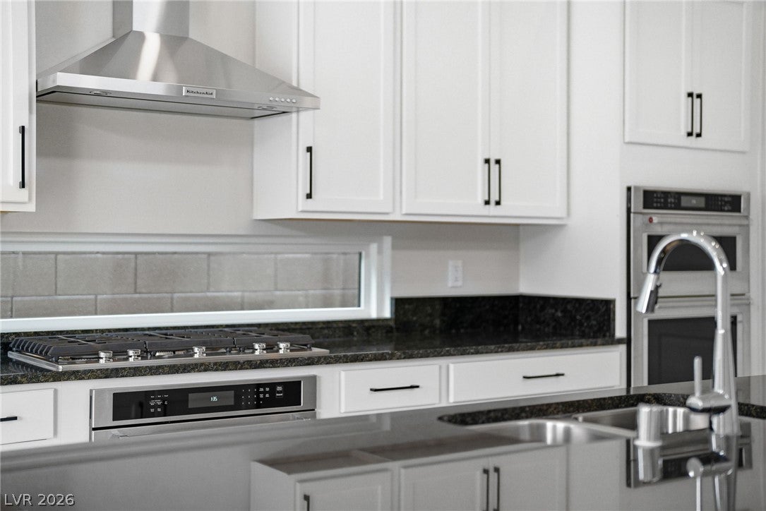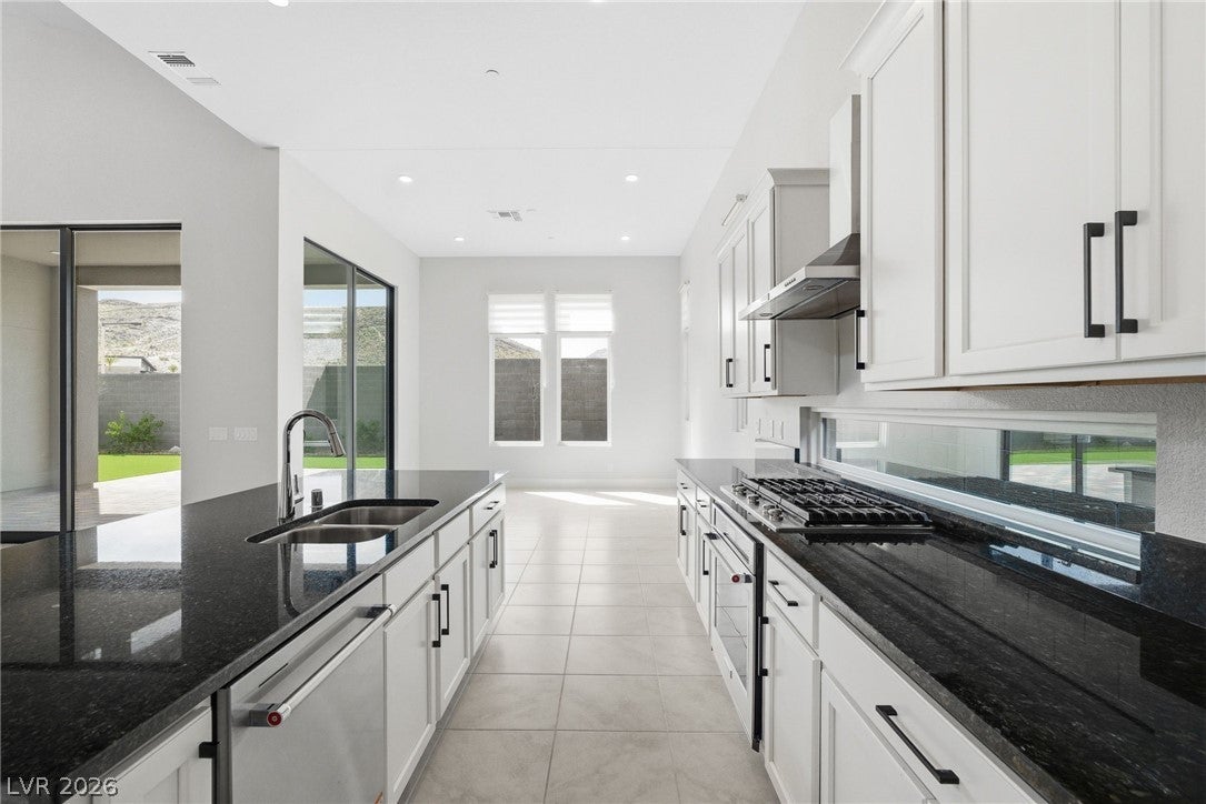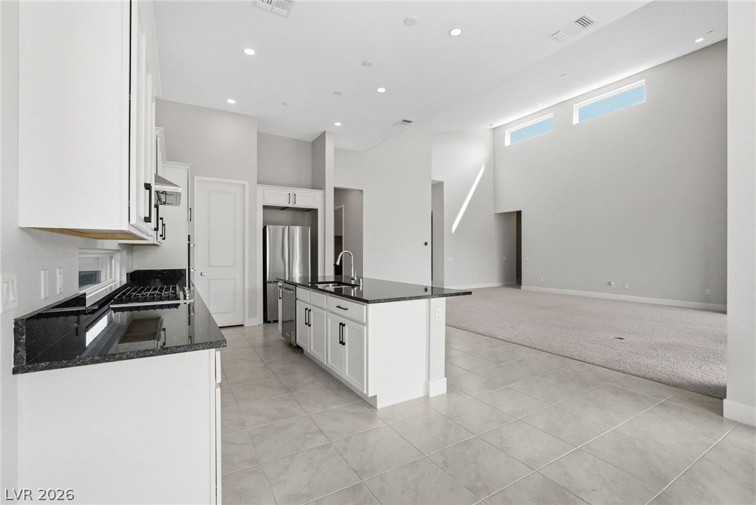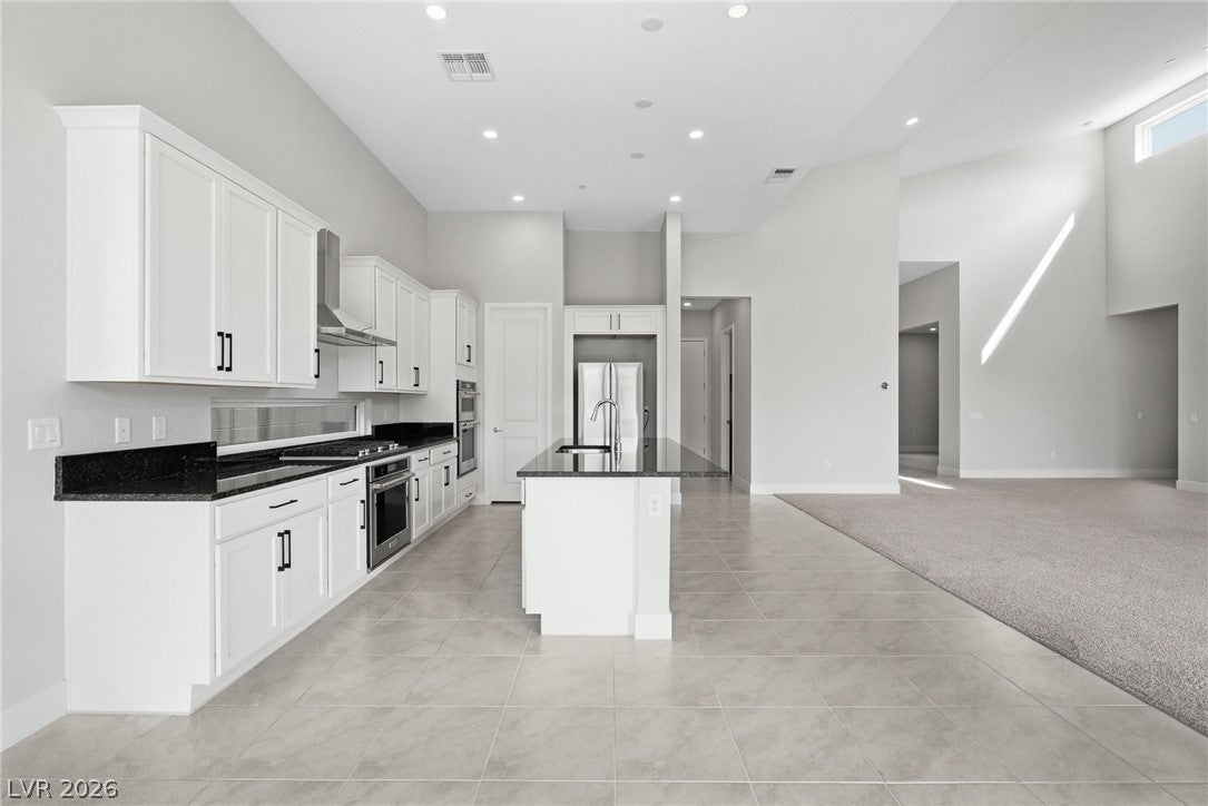 Stunning newly built single-story home in the prestigious guard-gated community of Ascension in Summerlin South. This bright open floor plan features high vaulted ceilings and a spacious great room ideal for entertaining. The kitchen offers a large island, stainless steel appliances, ceiling-height cabinetry, and a walk-in pantry.