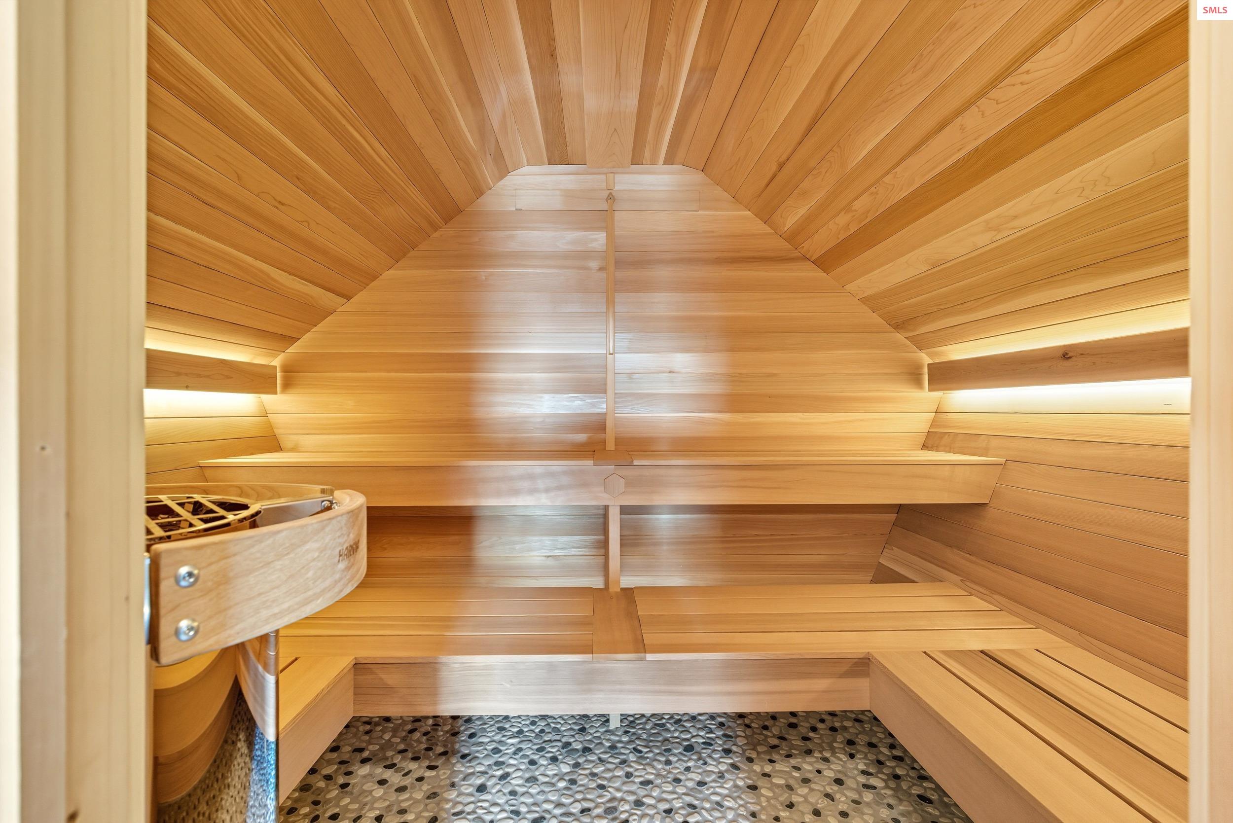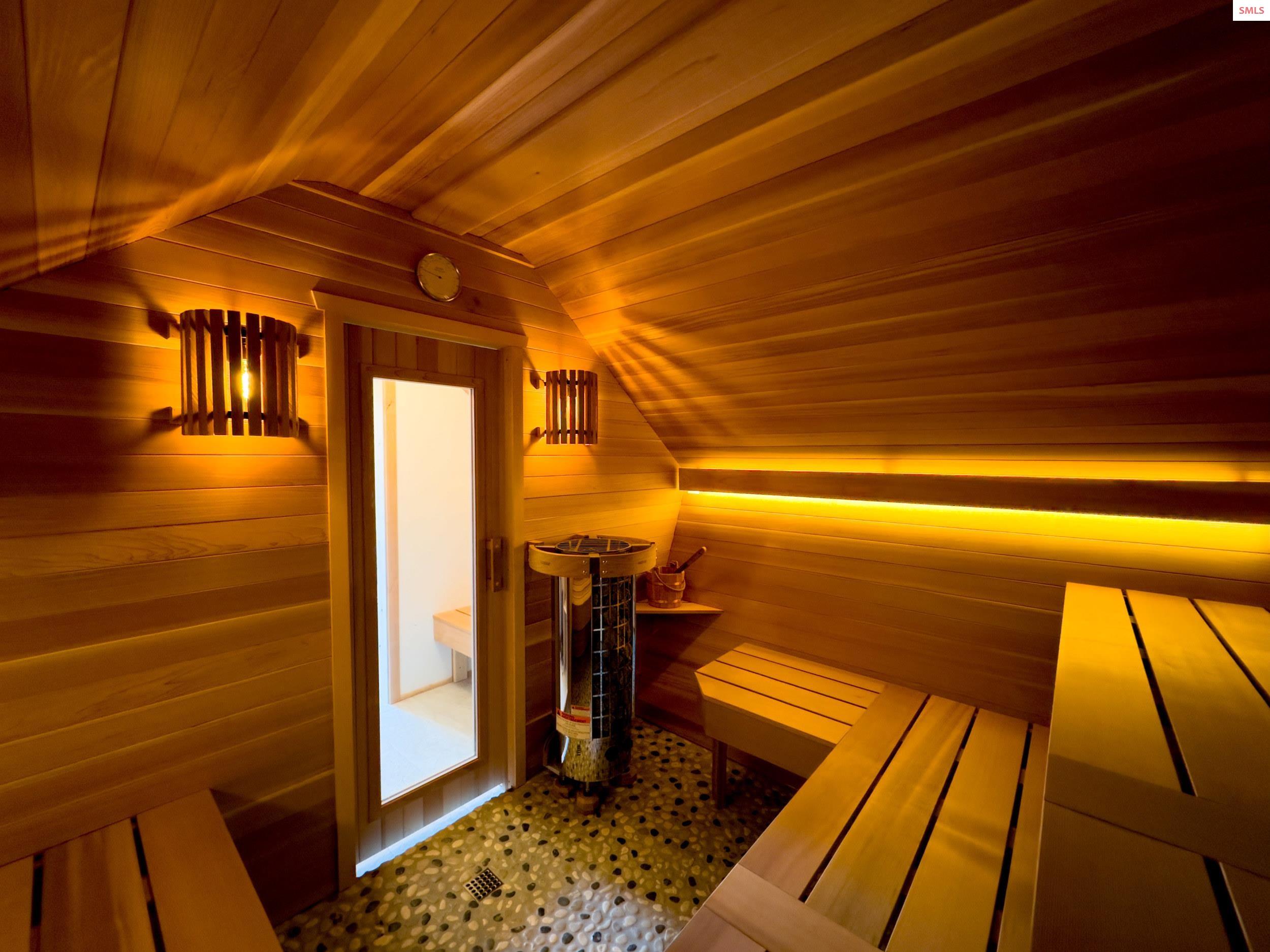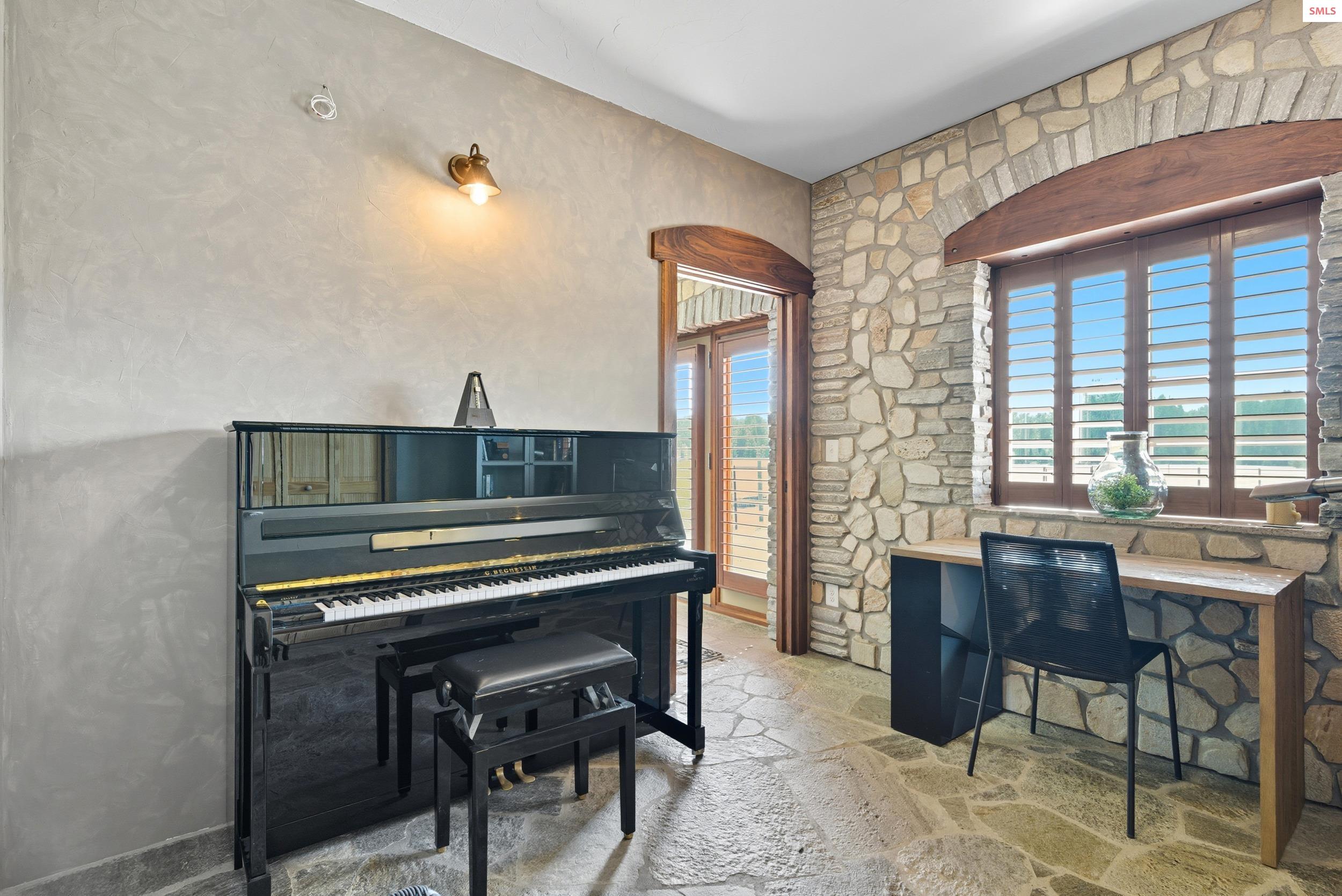 Welcome to your private storybook escape on 10 pristine acres with Grouse Creek frontage. This extraordinary stone estate, built by a renowned castle builder, blends old-world craftsmanship with modern comfort. Set at the end of a private drive in Sandpoint’s picturesque Selle Valley, the home captivates with its dramatic rooflines, hand-laid shingles, and porte cochere entry, all surrounded by fenced meadows, treed horizons, and serene creek frontage. A 40x50 gravel pad is already in place, ideal for a future barn, shop, or additional structure. A propane Generac generator, supported by two 1,000-gallon propane tanks, provides exceptional peace of mind during wind and snow storms, ensuring reliable power to the property year-round. Crafted entirely of timeless materials, the residence features double wall construction with river rock exterior, stone interior walls, solid oak and quartzite slate floors with in-floor hydronic heating, a tankless on demand gas water heater for hot water all the time and an additional 50-gallon backup hot water heater. The entire system of the home can run on a backup gas powered generator or tie into solar power for self-reliability at all times. Inside, every detail reflects artistry: custom dark walnut cabinetry, walnut-trimmed windows and porcelain countertops, Norman wood shutters, Hunter Pirouette shades, solid wood doors, and exquisite hand-carved accents including a detailed banister and arches. A Russian inspired dual-use open flame brick fireplace and woodstove adds extra warmth on those long cold winter nights emitting heat from the thermal stone mass of custom laid bricks. Imported Bertazzoni ovens from Italy enhance both the homes function and design. Adding to the magic, the gothic-inspired garage features front and back handcrafted carriage-style doors that swing open, whimsical wide-plank man doors, and an additional attached carport. Above the garage, a sunlit studio and spa retreat await. The studio showcases floor-to-ceiling picture windows, a mini woodstove, artist loft, wet bar with wine fridge, and a spa-inspired bath with soaker tub and full sauna. A hand-carved balcony overlooking the property completes this retreat, while the porte cochere with an expansive open deck seamlessly connects the studio to the main house. This is a home where castles inspire, fairy tales begin, and old-world charm awaits. A one-of-a-kind estate crafted with a level of artistry that cannot be replicated. A rare residence that evokes timeless European charm for generations to come. With its private setting and separate studio retreat, the property also offers exceptional potential as a bed and breakfast or short-term rental destination.