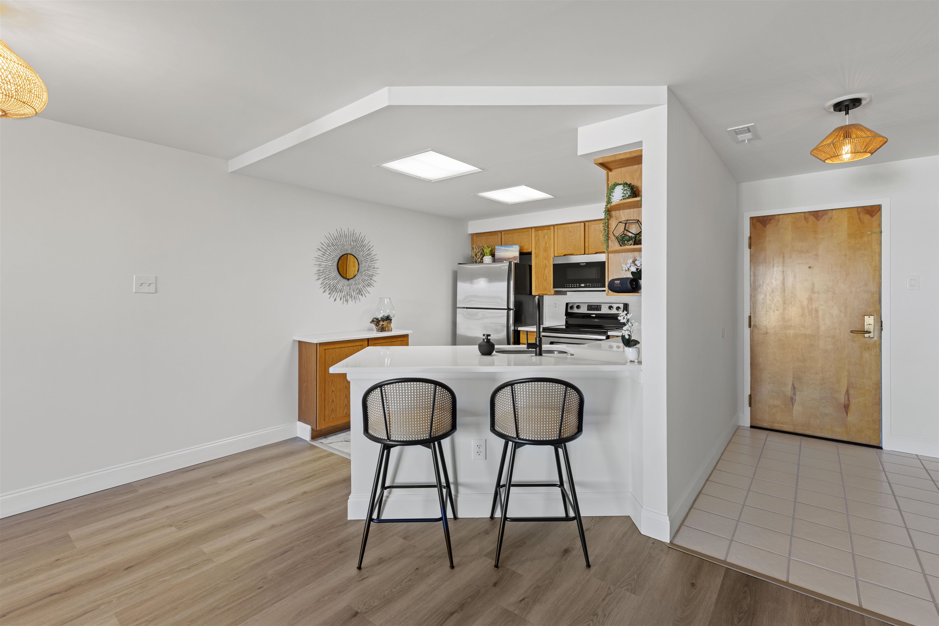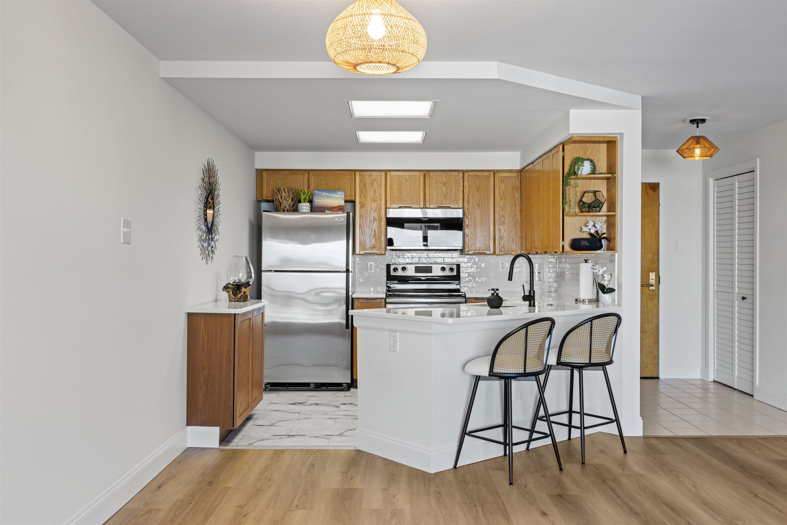 Welcome to 213 Miguel Place, a thoughtfully designed residence in the heart of the Sunny Hills Estates of Fullerton where refined craftsmanship meets timeless European influence. This 4-bedroom, 2.5-bath home is inspired by French Provincial design, shaped by the designer’s time studying in the South of France, and showcases meticulously curated materials and architectural details throughout. The kitchen features custom European marble countertops, a spacious walk-in pantry, European-styled appliances, and seamless flow into an expansive vaulted living area highlighted by a custom fireplace chimney and arched built-in cabinetry. Engineered white oak flooring, French-style windows, steel double entry and rear doors, and a charming Dutch door from the bedrooms to the backyard elevate both form and function. Thoughtful upgrades include all-new plumbing with a newly completed main drain, providing peace of mind and modern efficiency. The primary suite is a true retreat, offering a custom bathroom adorned with hand-selected Zellige tile from Morocco and a generous walk-in closet. The home is further enhanced by a brand-new roof featuring premium GAF Timberline HDZ shingles, combining durability with elevated curb appeal. Interior details continue in the custom marble checkerboard flooring found in the laundry room and half bathroom which is finished in Venetian plaster, echoed outdoors with matching custom checkerboard patio tile flooring that creates a seamless indoor-outdoor design language. Situated on a desirable corner lot, the property offers exceptional space and privacy with a large front yard, custom gravel and cement driveway, a solid oak custom garage door, a 100 year-old olive tree, lavender, mini olive trees, and a serene fountain with antique limestone details. The backyard oasis features an authentic limestone fountain, lavender, vegetable garden beds, and private expansiveness ideal for entertaining or quiet enjoyment. Ideally located within walking distance to award-winning Laguna Road Elementary and just minutes from the trail connecting directly to Laguna Lake, this home offers rare design integrity, modern infrastructure, comfort, and lifestyle in one of Fullerton’s most sought-after neighborhoods.