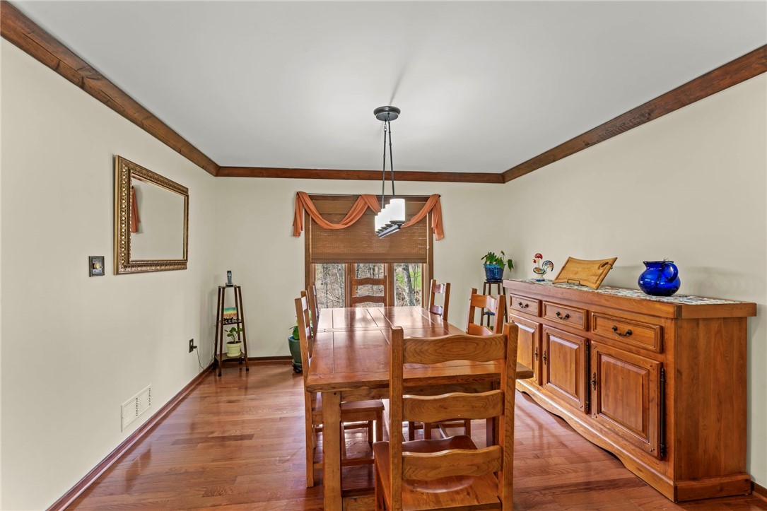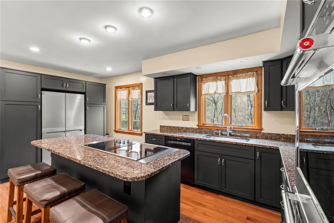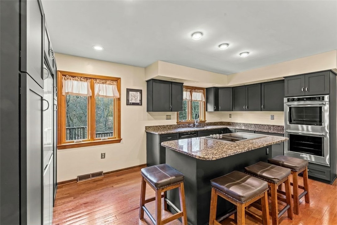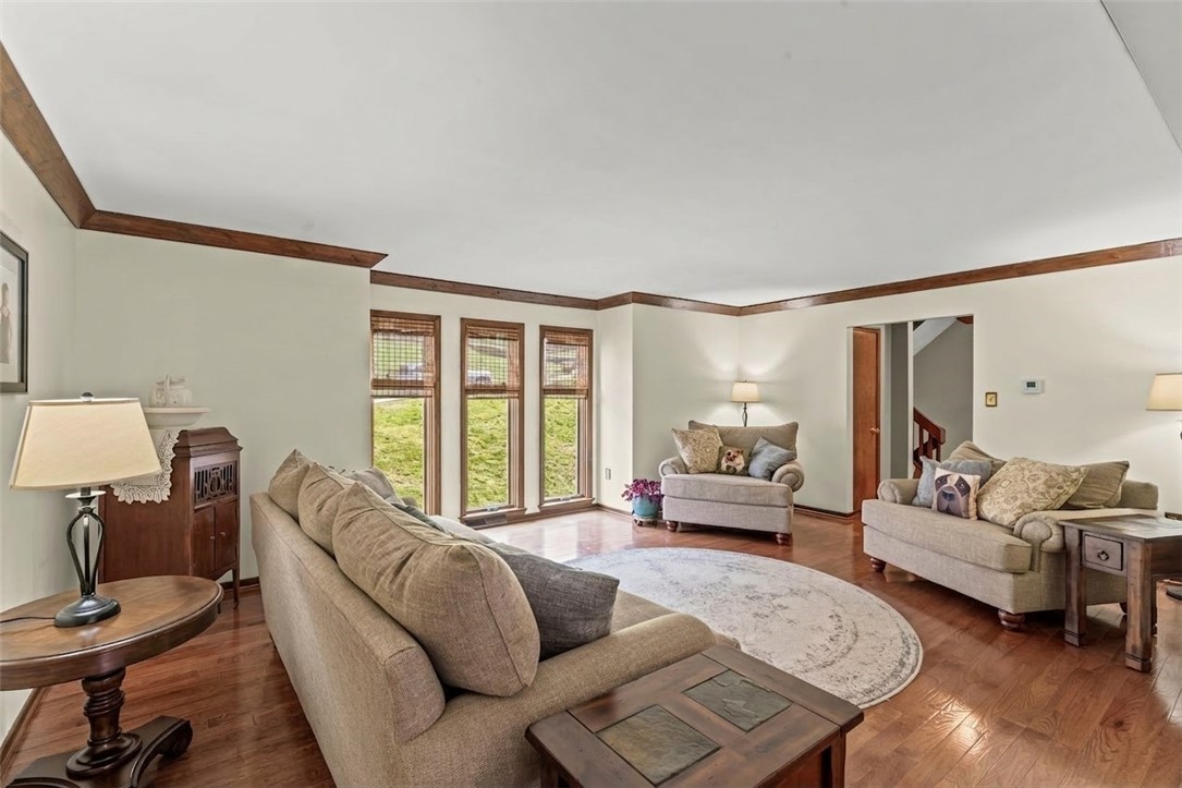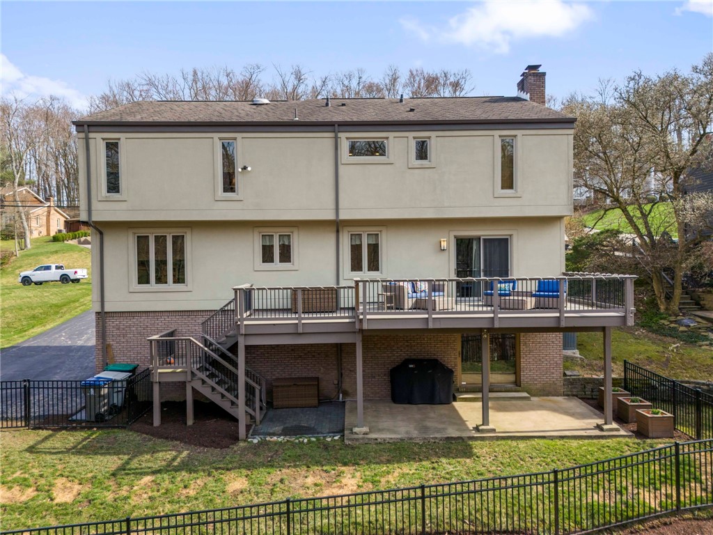 Nicely Maintained 4 Bedroom Home Situated On A Cul-De-Sac Street With Access To The Arrowhead Trail! Beautiful hardwood flooring throughout the main level, formal living room featuring crown molding & floor to ceiling windows, formal dining room opens to the updated kitchen boasting granite tops, stainless appliances, abundant cabinet space, breakfast bar & recessed lighting, cozy family room featuring a brick hearth fireplace, wood beamed ceiling, wet bar, storage closet & access to the huge rear deck, main floor powder room, the upper level offers a spacious primary suite featuring a large closet, private bath with double sink vanity, soaking tub & separate shower, 3 additional generous sized bedrooms & full hall bath complete the upper level, finished walk-out lower level game room offering a brick hearth fireplace, powder room, storage & access to the rear patio, 2 car garage, fenced-in rear yard, conveniently located to Route 19, schools, shopping, entertainment & more!