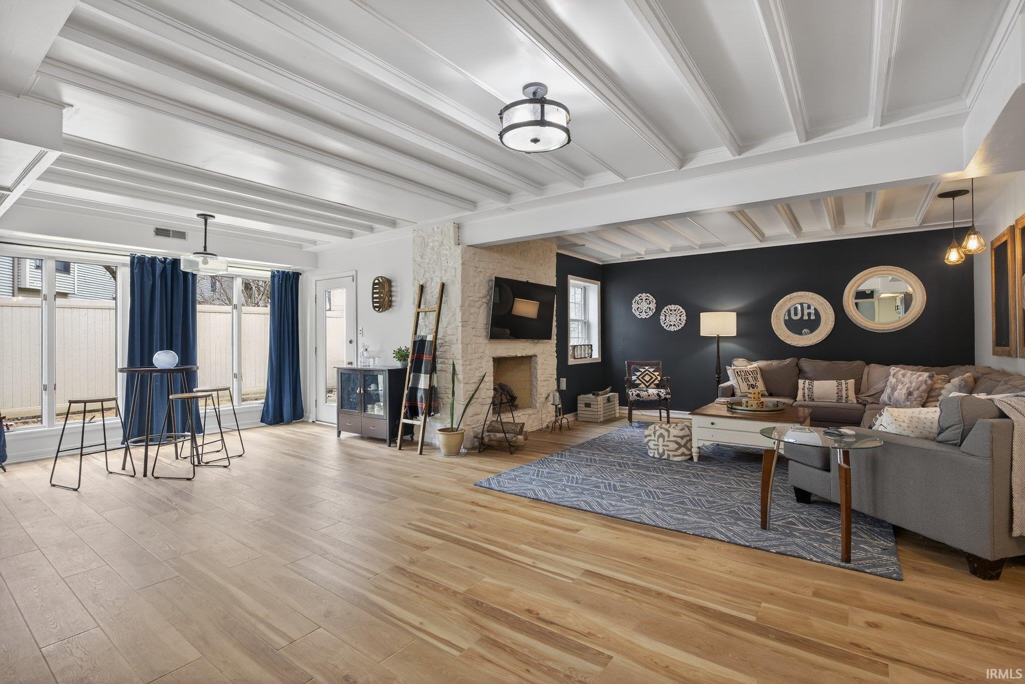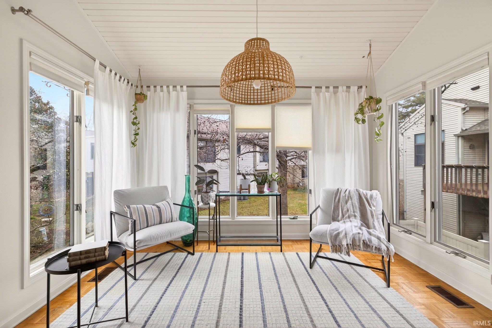 This lovely four bedroom, three full bath condo offers a ranch over walkout lower level, two primary suites, large rooms, an abundance of storage, two cozy fireplaces, a sunroom on each level, and the only stand alone condo in the Sycamore Village neighborhood. ANY UPDATES have been taken care of including: complete remodel of main level primary bath in 2025, new roof, furnace, and a/c in 2020, new luxury vinyl plank flooring in the lower level common areas, and newer kitchen appliances. Garage has tons of built in storage cabinets and a utility sin. Premium location on the Southeast side of Bloomington, with close proximity to Indiana University, IU Health hospital, the neighborhood park, Eastside shopping, restaurants, and bars. Easy to show and available for a quick closing; schedule your closing today! NOTE: A flooring allowance is being offered by the sellers to address the stained carpet in the lower level bedroom. Realtors please submit an addendum requested the allowance with your offer to purchase.