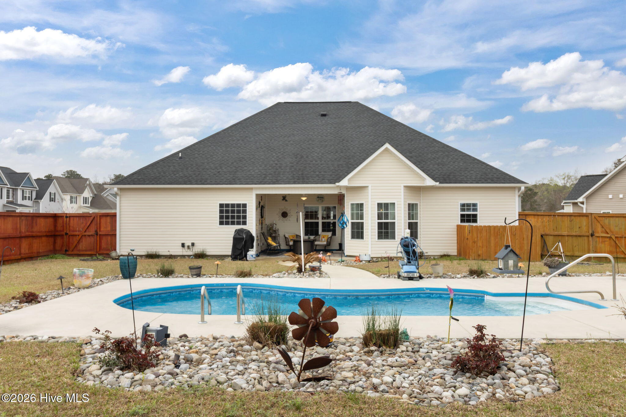 Stunning Family Oasis with Saltwater Pool in Sought-After Swansboro Schools District! Welcome to your dream home! This meticulously maintained residence is a perfect blend of elegance and comfort, offering an exceptional lifestyle in a vibrant community. The heart of this home is undoubtedly the expansive custom kitchen, featuring a striking kitchen island that invites gatherings and culinary creativity. Adorned with gleaming granite countertops, a stylish tile backsplash, and equipped with high-end stainless steel appliances, this kitchen is a true culinary haven for the aspiring chef or the casual cook alike! The living room is spacious with an electric fireplace. This thoughtfully split designed floor plan offers privacy and functionality. The large master bedroom serves as a peaceful sanctuary, complete with a ceiling fan, elegant trey ceiling, and not one, but two generous walk-in closets that cater to all your storage needs. The master bath is a spa-like escape, featuring both a separate shower and a soaking tub, providing the perfect space to relax and rejuvenate. Step outside onto the covered tile patio, where you'll enjoy serene views of the sparkling saltwater pool. This outdoor oasis is perfect for entertaining friends, hosting summer barbecues, or simply unwinding with a glass of wine after a long day. The wood privacy fence and professionally landscaped yard create a secluded retreat that feels like a vacation in your own backyard! The other two 1st floor bedrooms each have walk-in closets. The fourth bedroom is located on the second floor to provide total privacy. the current home Choice Warranty will be transferred to new owners. Located in the highly sought-after Swansboro Schools district. Enjoy the convenience of nearby parks, shopping, dining, and nearby beaches all while living in a tranquil environment that promotes a peaceful lifestyle. Don't miss this rare opportunity to own a stunning home that perfectly combines luxury and livability. Schedule your private showing today and take the first step toward making this exquisite residence your new home! For information about our preferred lender and the incentives you may qualify for, please ask to review agent comments for additional details.