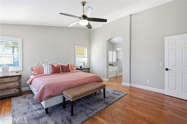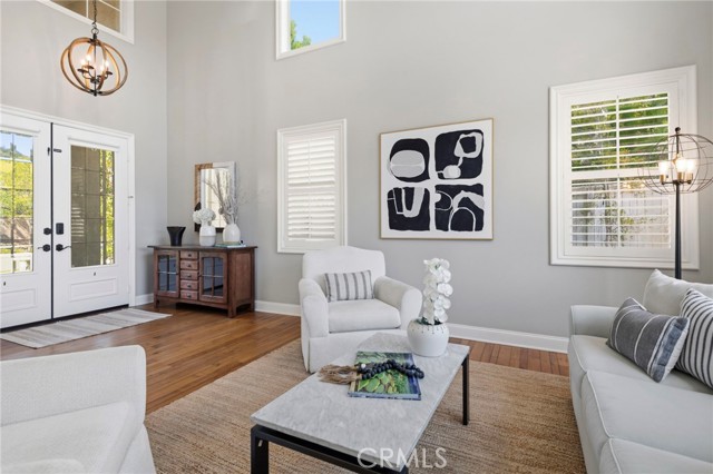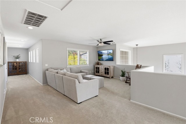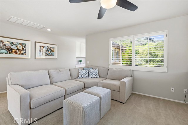 The curb appeal is undeniable as you arrive at this stunning home located in the highly sought-after gated community of Stonecliffe. Surrounded by gorgeous & serene views, close to amazing hiking and biking trails, near highly rated schools, and a low tax rate with no Mello-Roos.Enter through custom double doors into soaring ceilings with natural light-filled rooms, picturesque windows, and beautiful real hardwood floors. This spacious 2,670 sq ft floor plan offers 4 bedrooms (with the 4th currently configured as an oversized loft), 2.5 baths & a 3-car garage with cabinets & additional shelving.The heart of the home is the expansive family room, highlighted by views, a beautiful electric remote-controlled fireplace & custom built-in cabinetry, opening seamlessly to the large kitchen-perfect for entertaining & everyday living. The kitchen features a large island, a double oven, abundant cabinetry & a convenient butler's pantry that provides additional storage & serving space.Thoughtful upgrades throughout the home include plantation shutters, ceiling fans, a new water heater, magnetic door stoppers, a linen closet, and additional storage utilized beneath the staircase. The entire home has been repiped, features new plumbing fixtures throughout, and includes 2 new AC systems for comfort & peace of mind. Upstairs, the spacious primary suite is a true retreat, featuring French doors that open onto the balcony and offer beautiful views. The primary suite also includes 2 walk-in closets and plenty of space to relax & unwind. Secondary bedrooms are generously sized, & the large loft offers flexibility as a 4th bedroom, home office, or bonus room.Step outside to the ideal-sized backyard designed for both relaxation & entertaining. Enjoy easy maintenance landscaping, vinyl fencing & a beautiful spool with a tranquil waterfall. The outdoor space also features a built-in BBQ with bar seating, ideal for enjoying Southern California living while watching a big screen TV.Additional highlights include PPA solar with no monthly lease payment, helping provide energy efficiency & huge cost savings.This pristine home offers the perfect blend of elegance, comfort, and functionality in one of the area's most desirable gated communities.