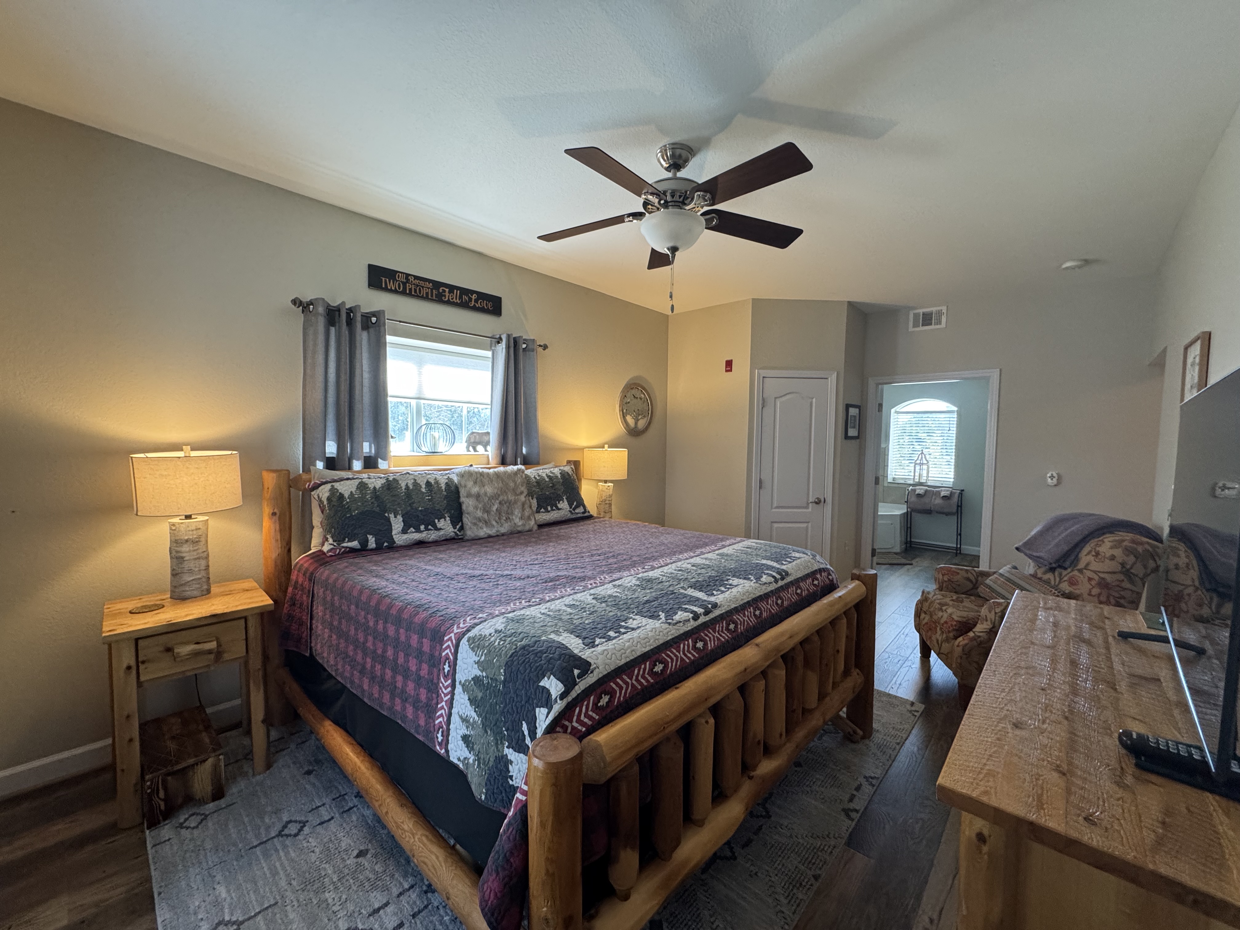 Welcome to 1277 Timberlane Dr. in the beautiful Hill Country in Canyon Lake, located in the Canyon Lake Hills subdivision within Comal ISD. This Mid-Century modern home, built in 2023, blends contemporary architecture with a serene Hill Country setting located walking distance to the lake. 1,800 sqf of living space. Featuring 3 bedrooms and 3 baths. The flexible floor plan includes two bedrooms and two baths on the main level, with a private upstairs suite ideal for guests, multigenerational living, or maximazing a short-term rental potential. 10 ft ceilings through out the house. Open concept, spacious dinning room that oversees a contemporary kitchen with custom cabinetry as well as quartz countertops, Moen fixtures. Spa-inspired bathrooms feature designer tile work and modern backlit LED mirrors. Expansive windows and sliding tinted glass doors, flood the home with natural light and open to a spacious wood deck surrounding by mature trees, creating a peaceful private space. This can be an excellent investment opportunity or a luxury getaway! HOT TUB, WASHER, DRYER, FRIDGE DO NOT CONVEY
