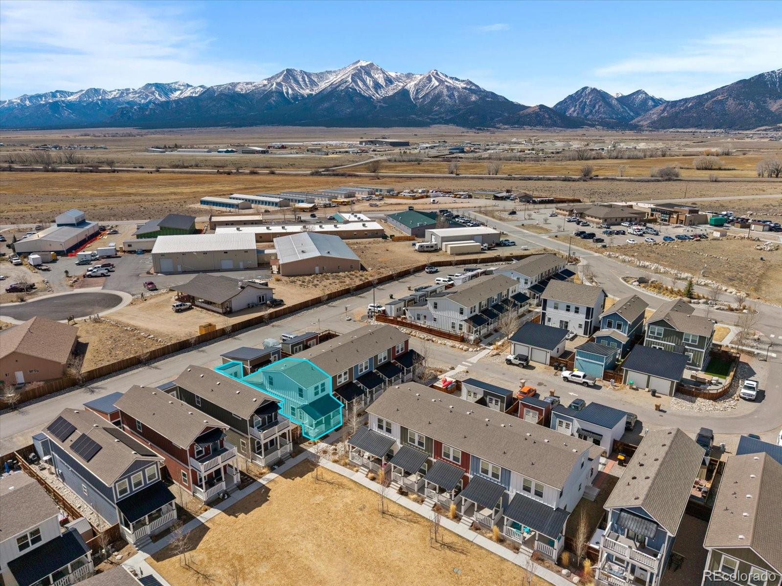 Light, bright, and beautifully appointed, this white wood–sided end-unit townhome is located in The Farm, a thoughtfully planned community offering maintenance-free living at its best. Abundant windows flood the home with natural light, while high ceilings and an open floor plan create an airy, welcoming feel. Enjoy morning coffee on the covered front porch, perfectly positioned across from open space and the neighborhood park. The charming kitchen features upgraded cabinetry, modern pulls, white appliances, a stainless steel farmhouse sink, an extra lighting package, and all available upgrades, ideal for both everyday living and entertaining. The main-level primary bedroom offers comfort and privacy, with the primary bath situated on the back side of the townhome and highlighted by large windows, a walk-in shower, and a rain-head shower fixture. Upstairs, you’ll find two generously sized bedrooms, a full bathroom with a rain-head shower, and mountain views. The fully fenced back and side yard provide space to relax or play, while a large shed with double doors on a cement foundation offers ample room for tools and toys. The Farm community features several shared green spaces, a large pavilion, community grills, and a spacious gas fireplace, perfect for gathering with friends and neighbors. Conveniently located near the shops and restaurants of Buena Vista and close to access to the Arkansas River, this townhome offers the ideal blend of comfort, community, and Colorado lifestyle. Schedule your showing today!
