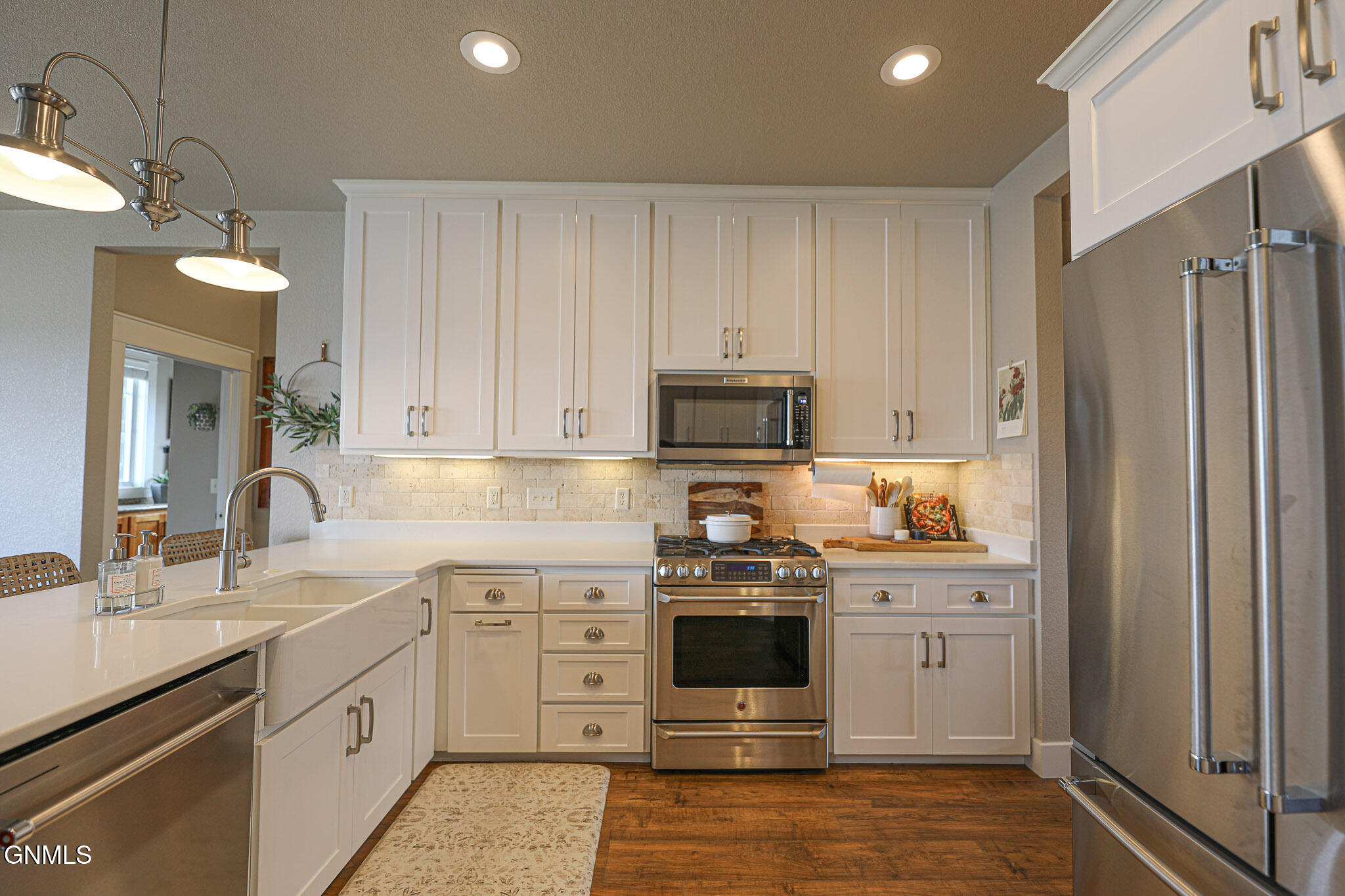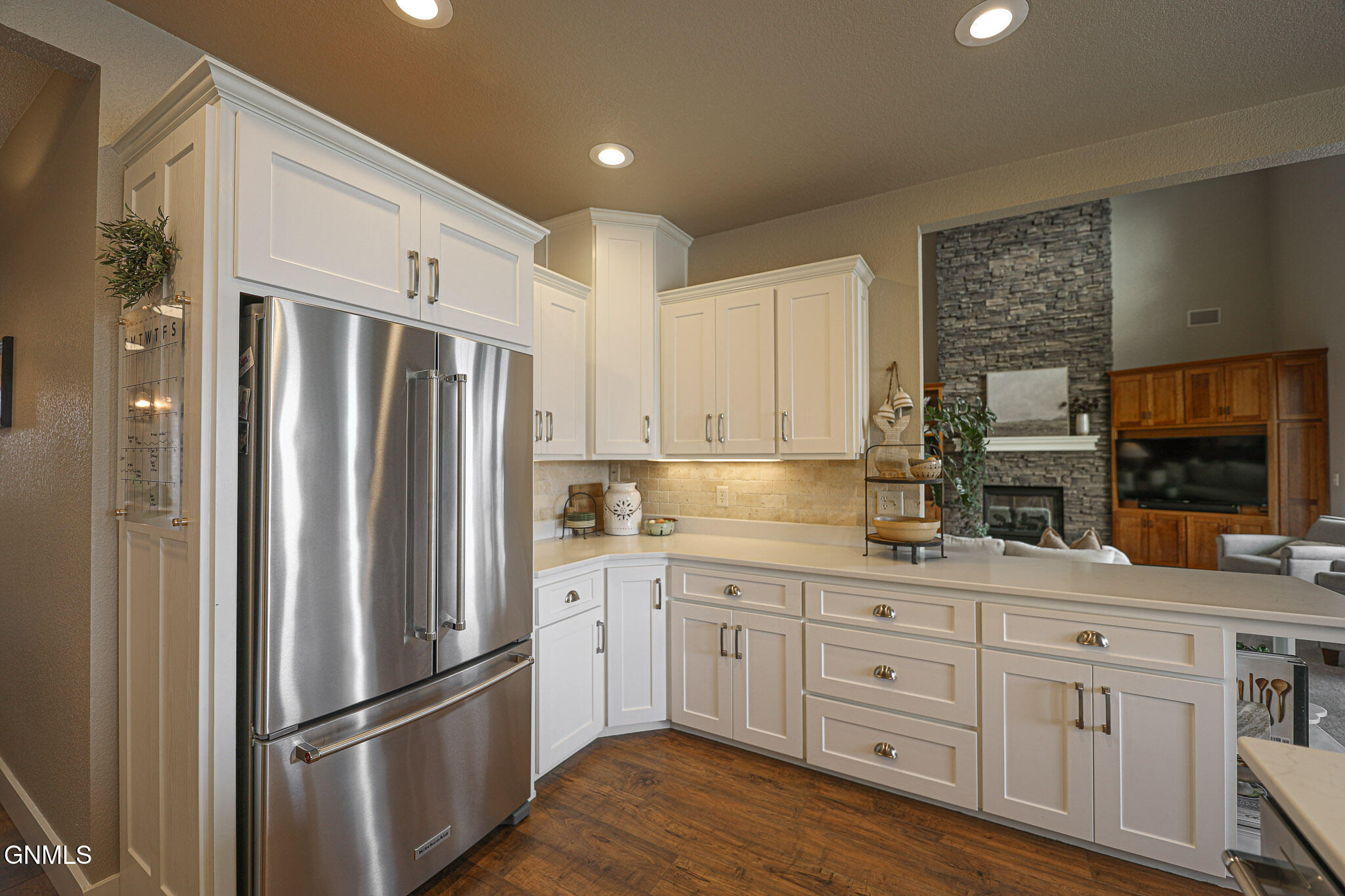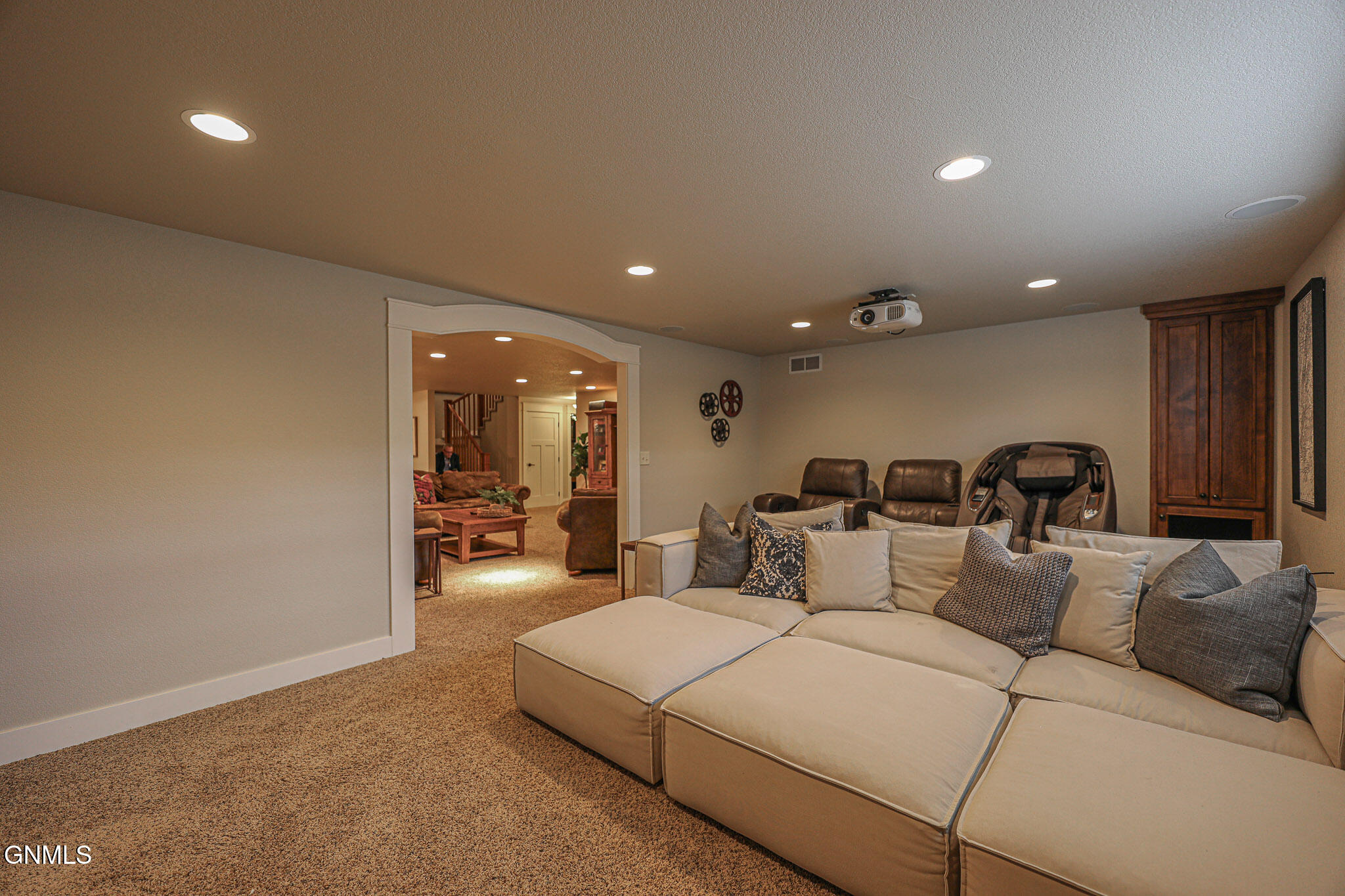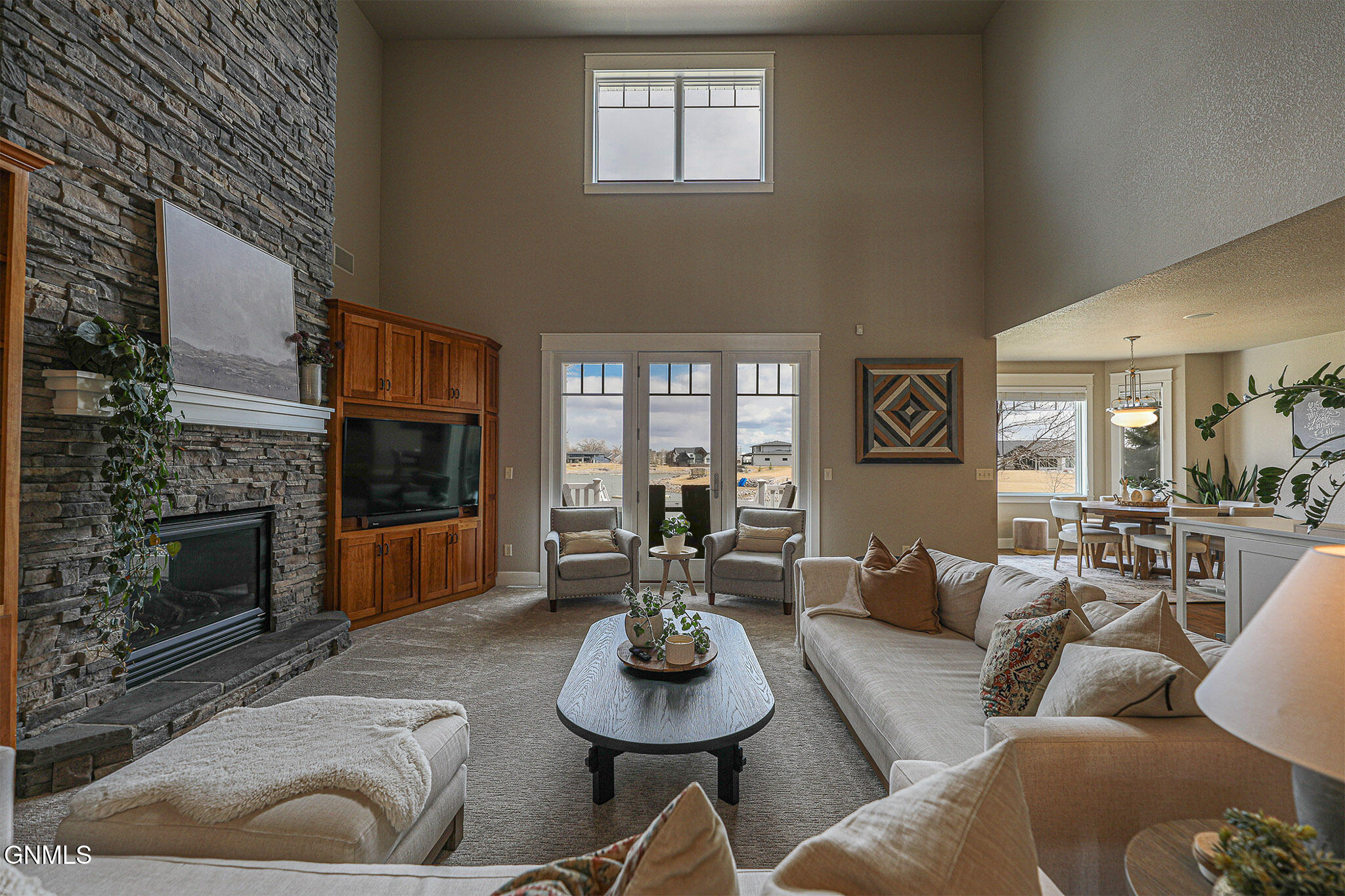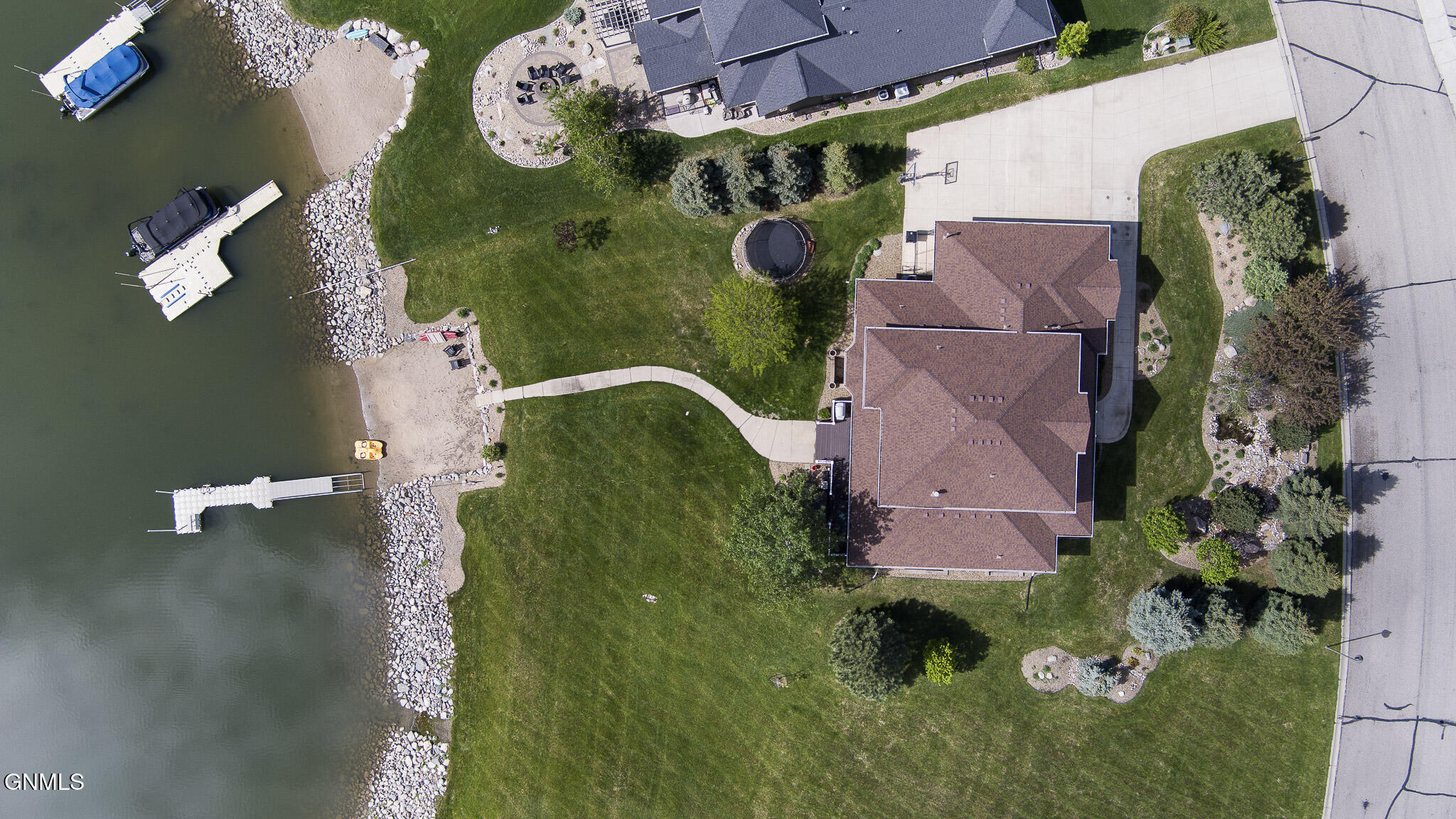 Welcome to 6501 Misty Waters Drive - where luxury meets the rhythm of everyday life. Tucked within one of Bismarck's premier neighborhoods, this stunning residence sits on just under a half-acre and offers 6 bedrooms, 6 bathrooms, and 5,734 square feet of curated comfort with direct access to the Missouri River via the Misty Waters bay. A charming front porch sets the tone for a thoughtfully crafted interior that's both inviting and effortlessly elegant. Step inside to a spacious entryway that flows effortlessly into the main living area—where large windows frame breathtaking bay views and a statement brick fireplace anchors the space with organic texture. Built-in cabinetry adds both function and elegance, while neutral tones and natural finishes create a calming, polished aesthetic throughout.The kitchen is both refined and functional, featuring quartz countertops, a gas stove, stainless steel appliances, a porcelain farmhouse sink, and under-cabinet lighting. Just beyond, a beautifully designed butler's pantry connects to the formal dining room, complete with additional cabinetry, a prep sink, and the ideal spot for a coffee bar or hidden appliances—seamlessly supporting everyday living and effortless entertaining. Adjacent to the kitchen, the everyday dining space is bathed in natural light and captures panoramic views of the backyard and bay—turning even casual meals into something special. Both the living room and dining area offer access to the expansive, maintenance-free deck overlooking the private beach, lush landscaping, and included boat dock.The primary suite is a retreat of its own—tucked off the main living space for added privacy. It features a cozy brick fireplace, generous windows with serene views, dual closets, a spa-inspired tiled shower, soaking tub, separate water closet, and dual vanities. For added pleasure, the suite also offers direct access to the maintenance-free deck—perfect for stepping outside to enjoy quiet mornings or beautiful evening views.A versatile main-level room, currently used as a music room, includes a closet and functions beautifully as a home office, library, or playroom. A full bathroom is conveniently located just off this space. On the opposite end of the main floor, a separate hallway leads to the mudroom, laundry room with scenic views, and an additional spacious ¾ bathroom situated near the garage entrance.Upstairs, three bedrooms and two full baths provide ample space and flexibility. One bedroom features a private en suite and walk-in closet, while the other two share a Jack and Jill bathroom with a beautifully tiled shower/tub surround. A timeless built-in display adds charm to the upstairs landing. Brand new carpet (2025) has been installed throughout the main and upper levels.Downstairs, the lower level is designed for both comfort and entertaining. The cozy family room includes a wet bar. A stunning 800-bottle climate-controlled wine cellar, a fully equipped theater room, and a mirrored home gym take functionality to the next level. Two additional bedrooms, a large full bathroom, and furnace/storage space complete the basement layout.The three-stall heated garage spans 982 square feet and features an epoxy floor, utility sink, and direct access to the backyard. Out back, the yard unfolds like a resort—complete with professional landscaping, mature trees, a peaceful water feature, front and rear sprinklers, and a sidewalk leading down to your own sandy beach shoreline and included private boat dock. It's a space designed for quiet mornings, sunset gatherings, and everything in between. With direct access to the Missouri River, this property offers not just a home, but a lifestyle—where every day feels like a retreat.