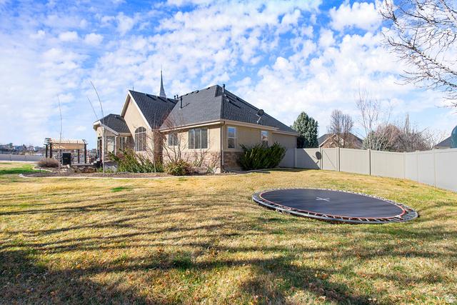 What does the perfect location in Lindon look like? This magnificent custom built home is welcoming from the moment you enter the front door. No expense was spared in workmanship from a private office and magical music room to a large family sized kitchen with double ovens and walk-in pantry plus a great room for large or small gatherings. Also, notice the large ,beautiful painting on the wall in the entry! For a great offer - the sellers are willing to leave this dynamic piece of art for your first piece! Now on with my story...Ready for the privacy of your primary ensuite to unwind from the day with Egyptian limestone shower, Brazilian granite counters and tub surround. And that is just the beginning - upstairs find 2 additional large bedrooms plus a gaming (or homework?) area for the kids. Downstairs its time to get cozy with your private theater room and a second kitchen that compliments any home. Landscaping has been professionally sculpted to enjoy time on the patio with a beautiful mountain backdrop - and a quick game of basketball or just enjoy the outdoors under the lights of the gazebo. Also dont miss the large heated 3 car garage plus beautiful built in storage cabinets and room for all your toys. Close to the Murdock Canal running & biking trail, just a mile away from Dry Canyon for hiking. What a location! Buyer to verify all.